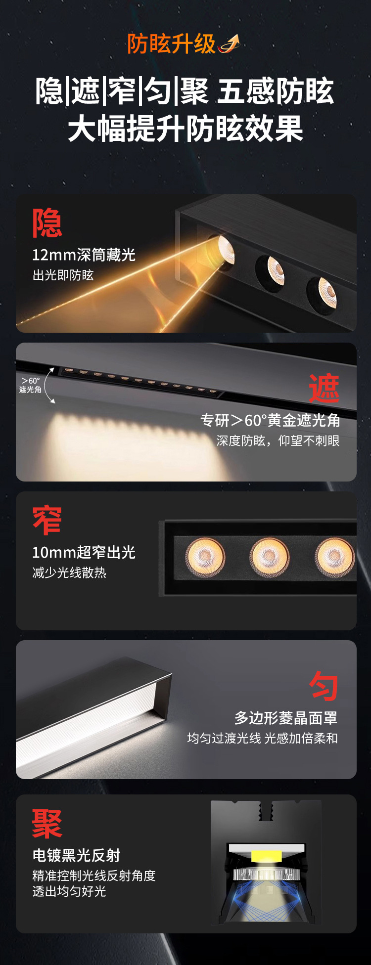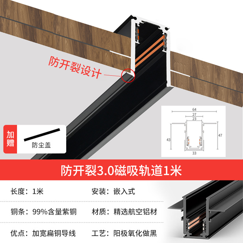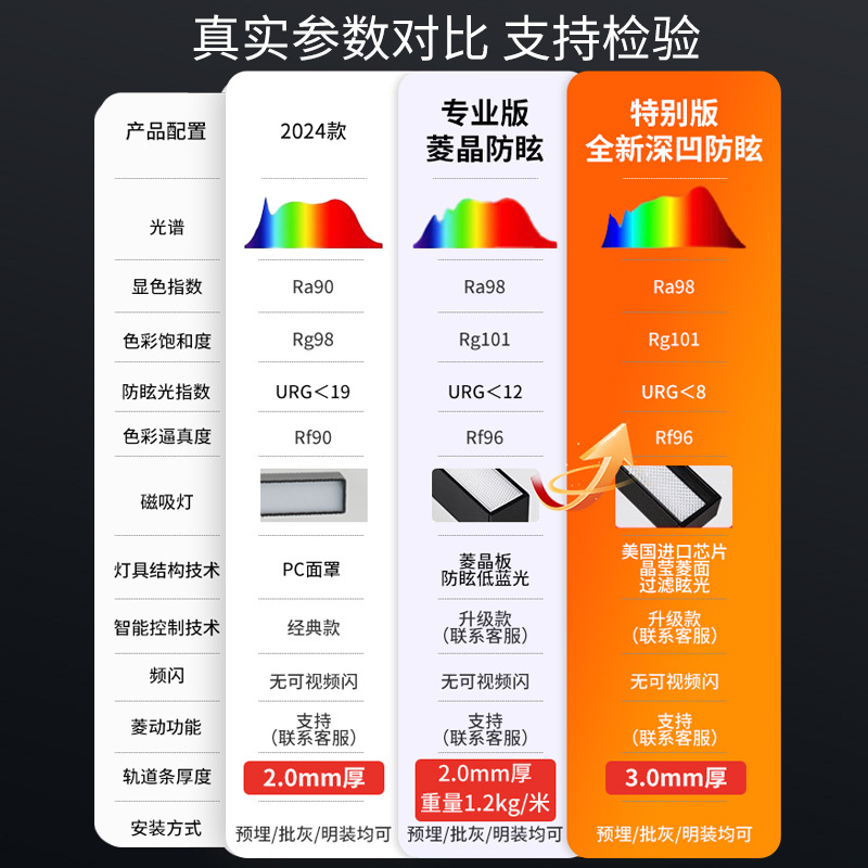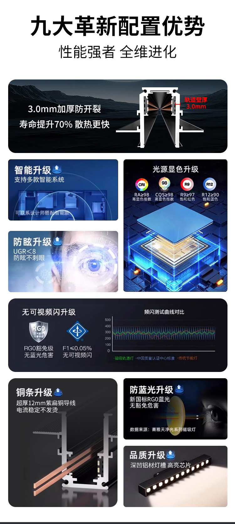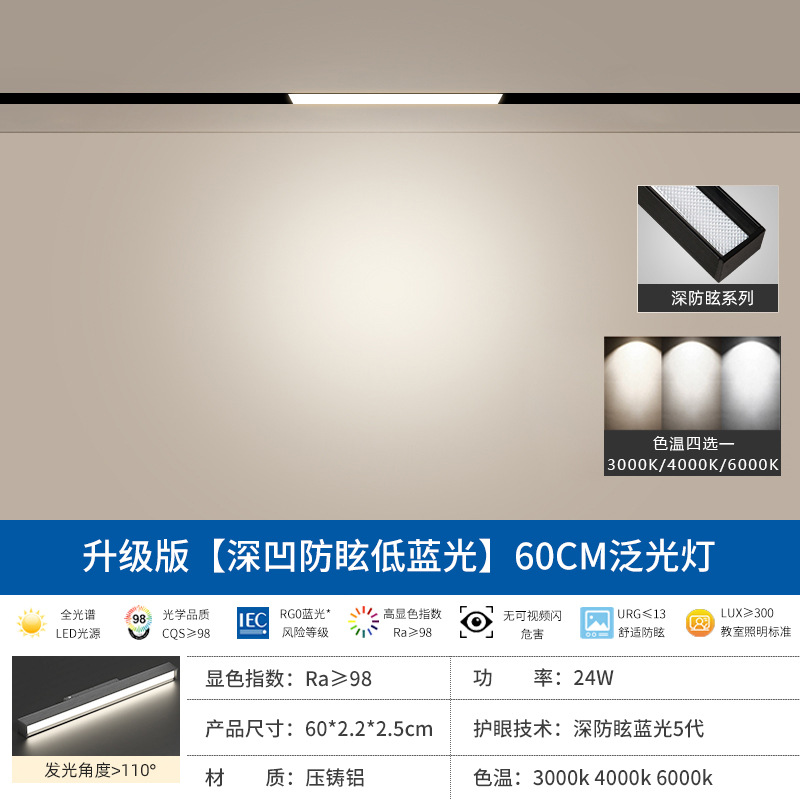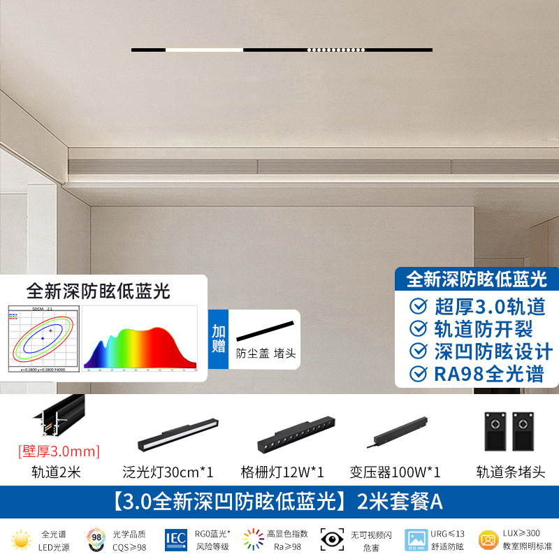3.0 Интеллектуальный магнитный трековый светильник против растрескивания Встроенный высокий цвет и глубокий антибликовый полный спектр светодиодный свет без основного освещения