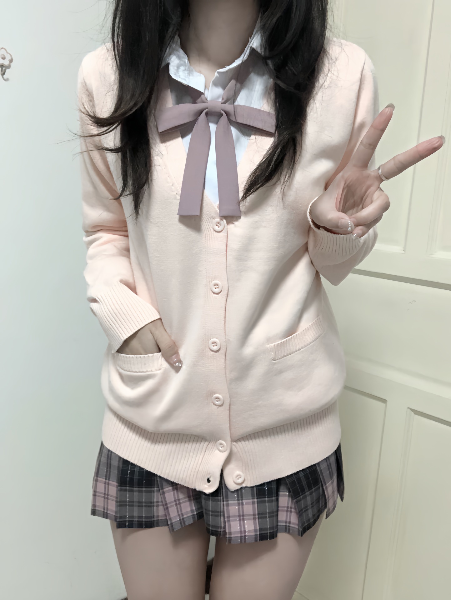 Оригинальный базовый однотонный кардиган jk, трикотаж, униформа в японском стиле, свободная универсальная трикотажная куртка с длинными рукавами