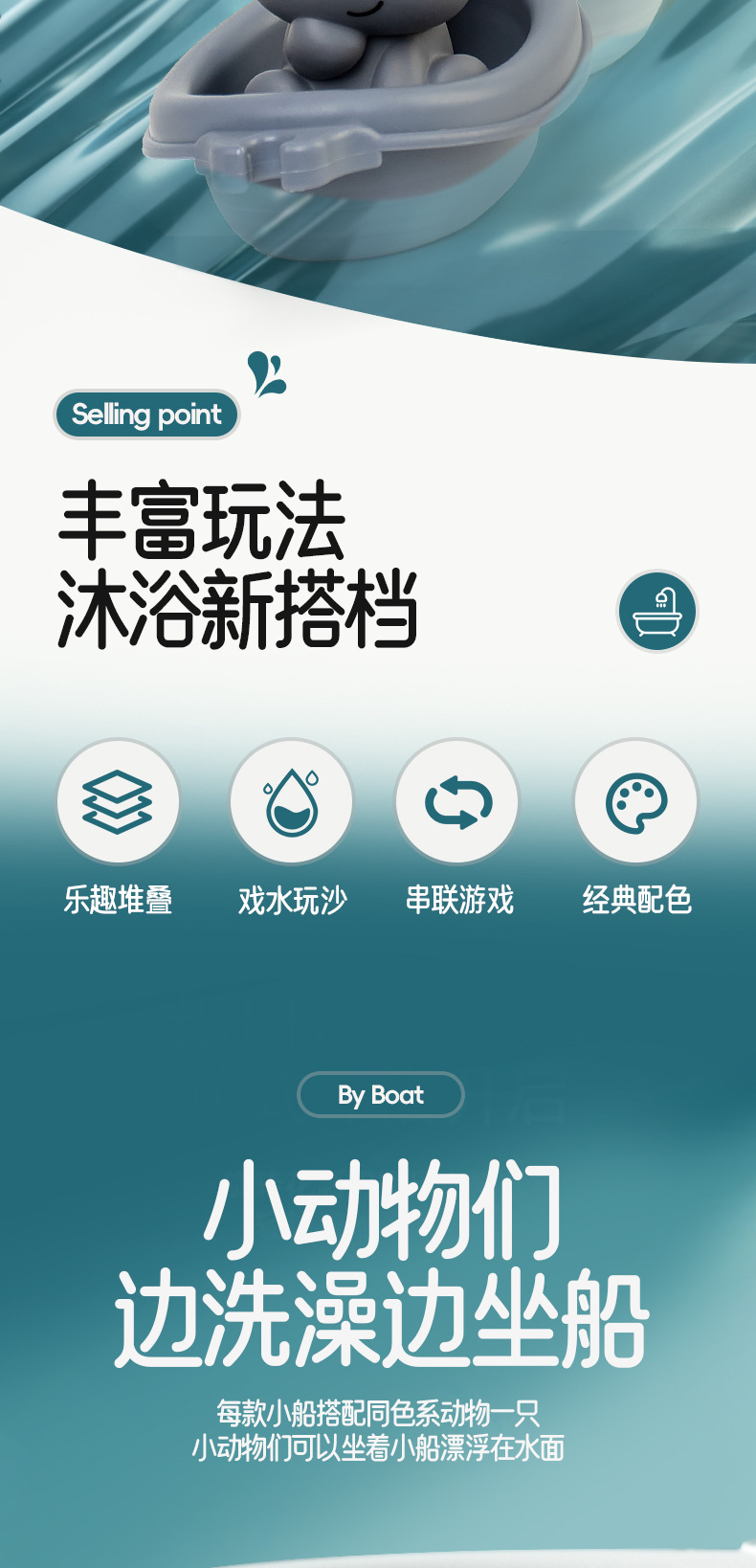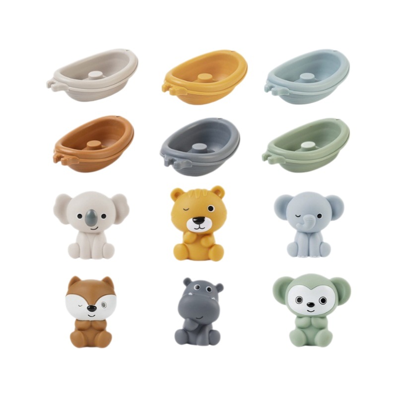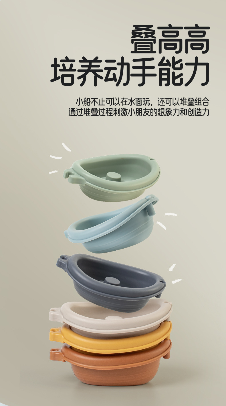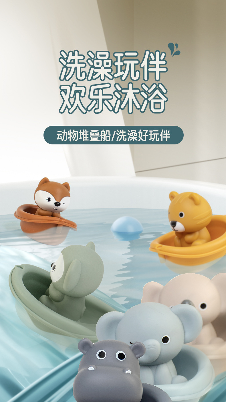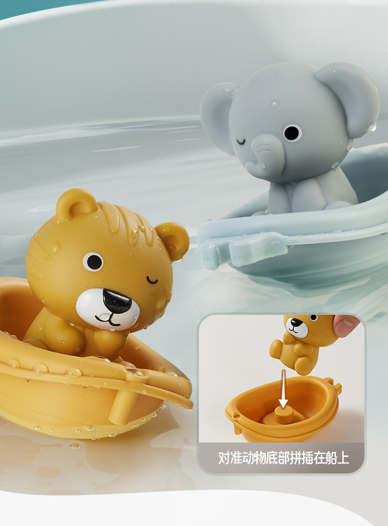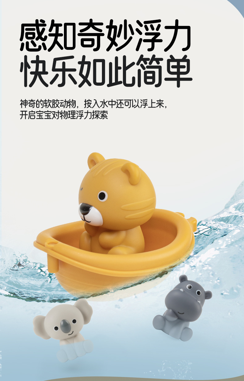 Новые игрушки для детской ванной сложены на плавучей лодке