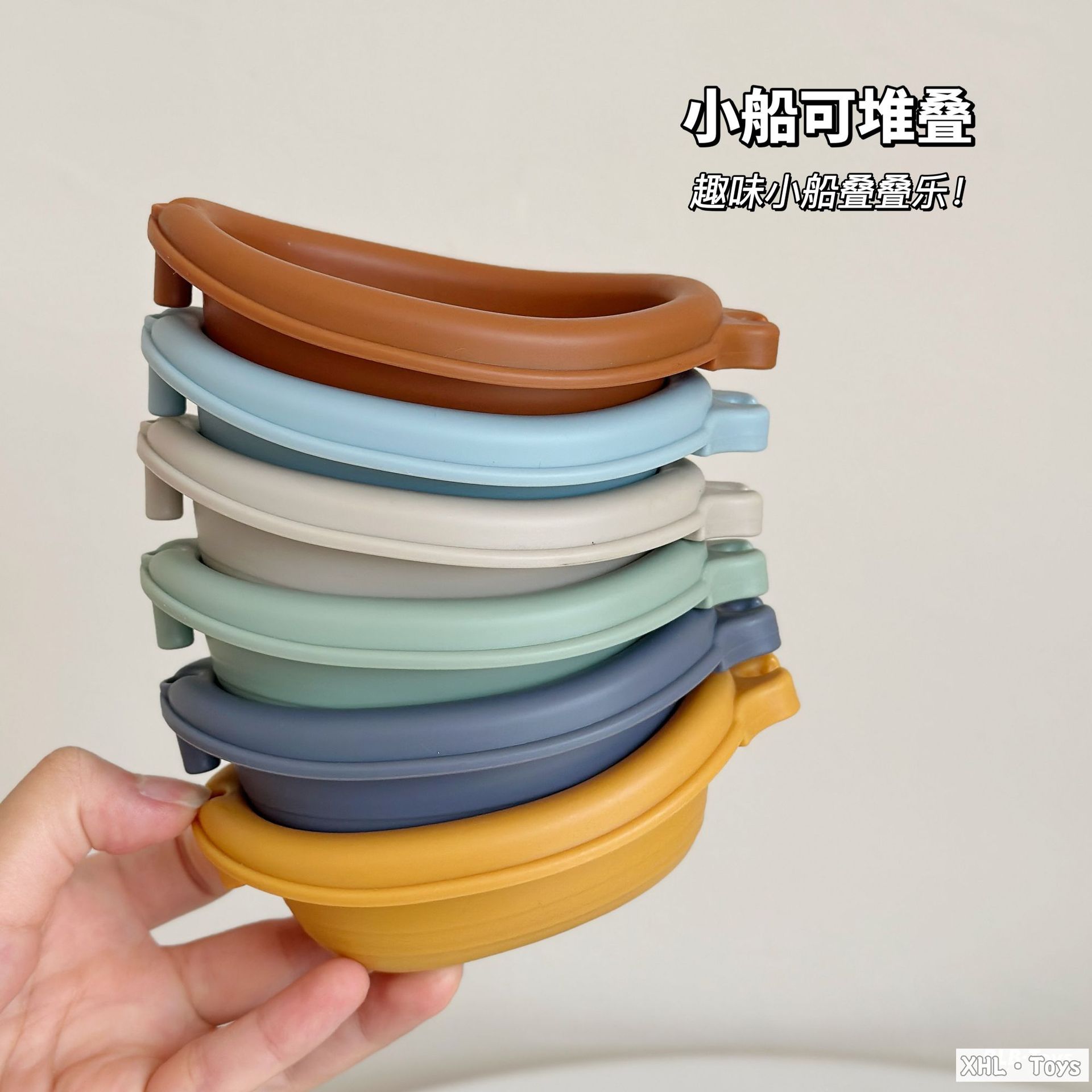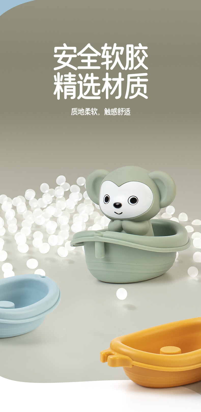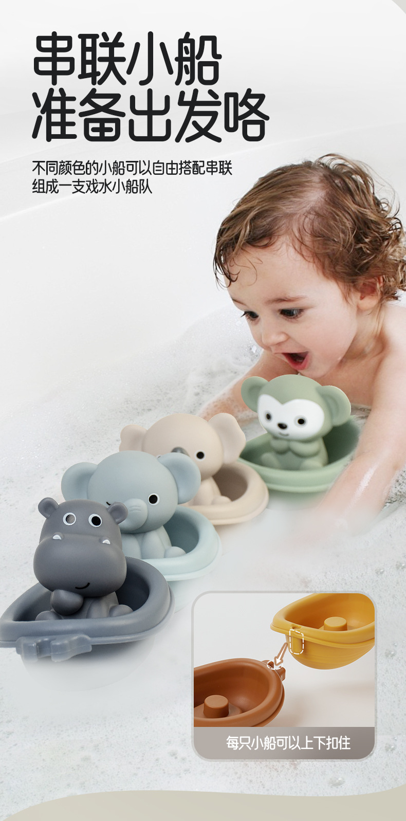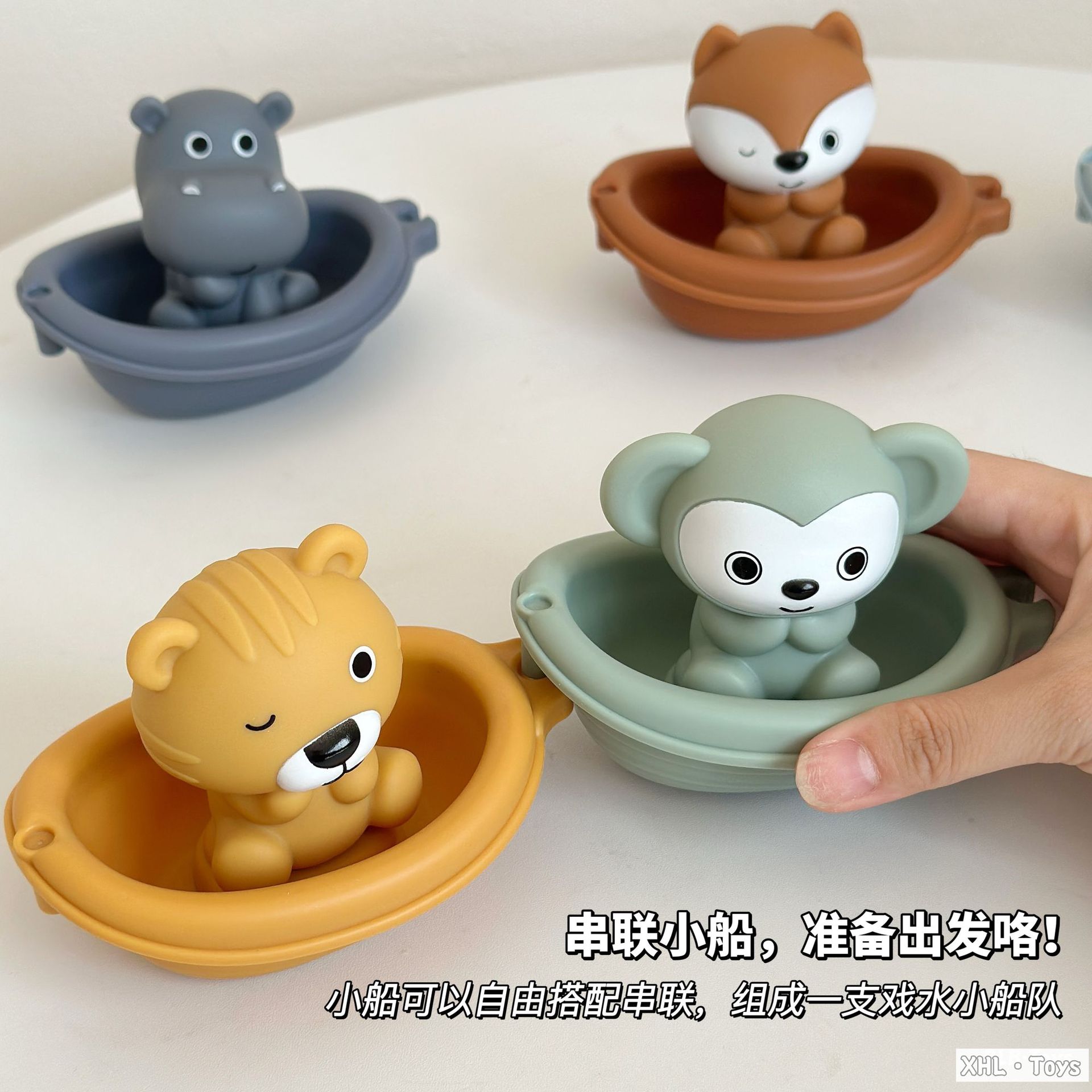 Новые игрушки для детской ванной сложены на плавучей лодке