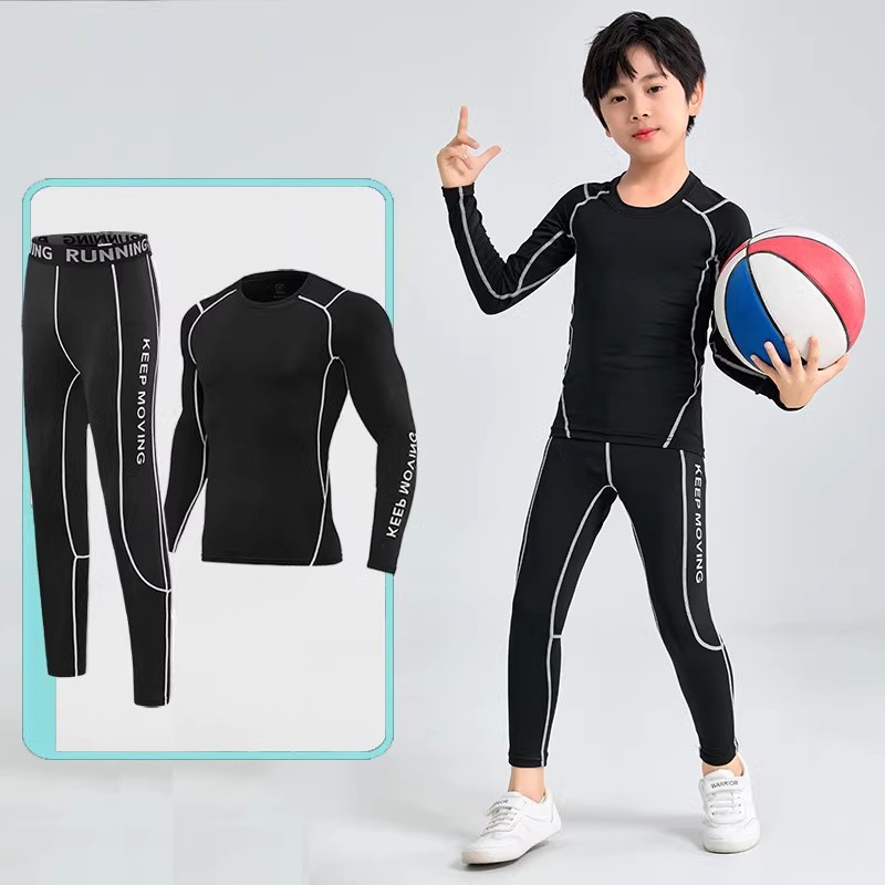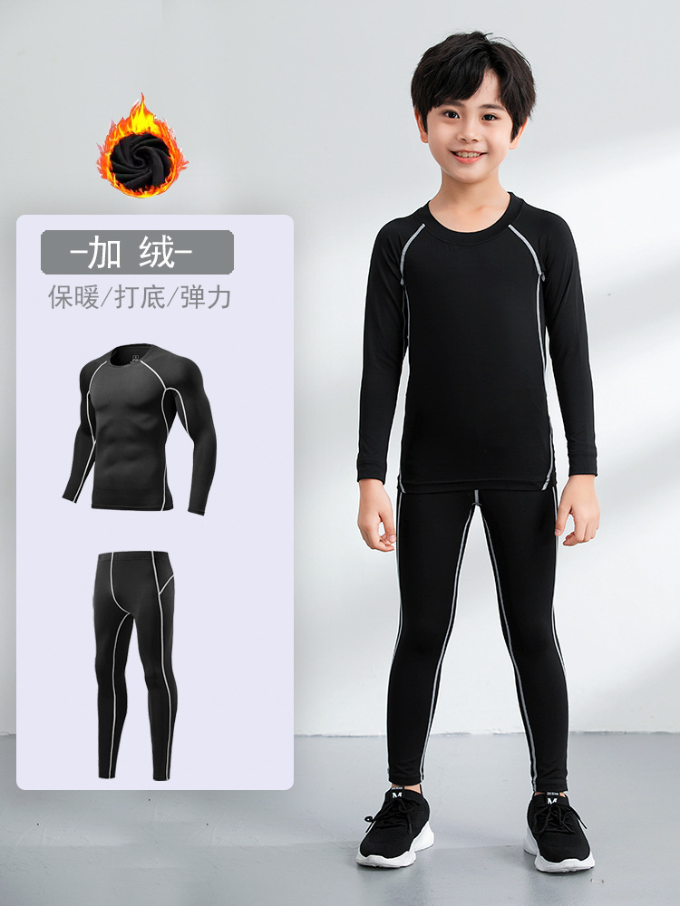 Детский облегающий спортивный костюм с флисовой подкладкой для бега, фитнеса, баскетбола, футбола, быстросохнущая одежда с длинными рукавами, 2024