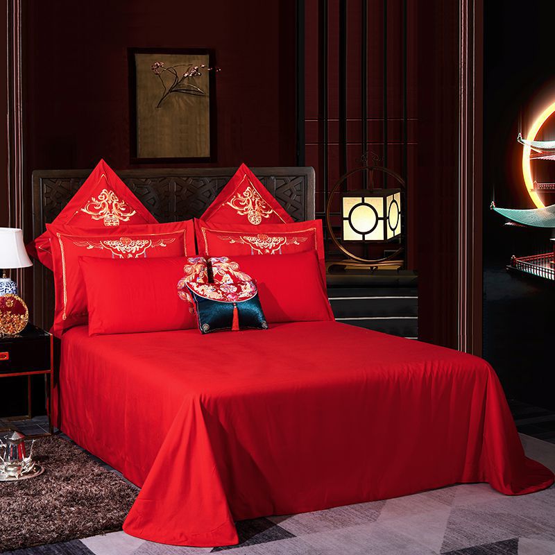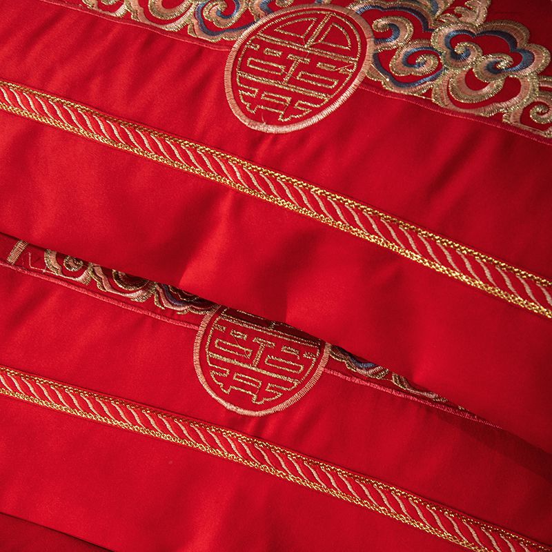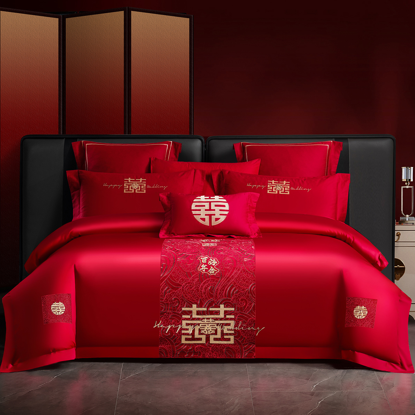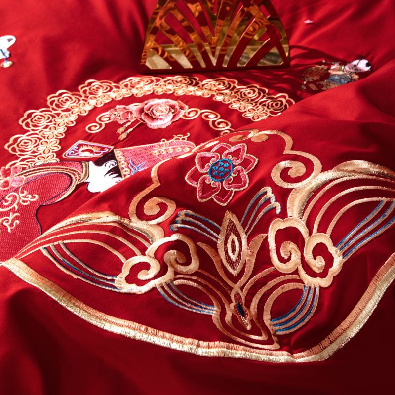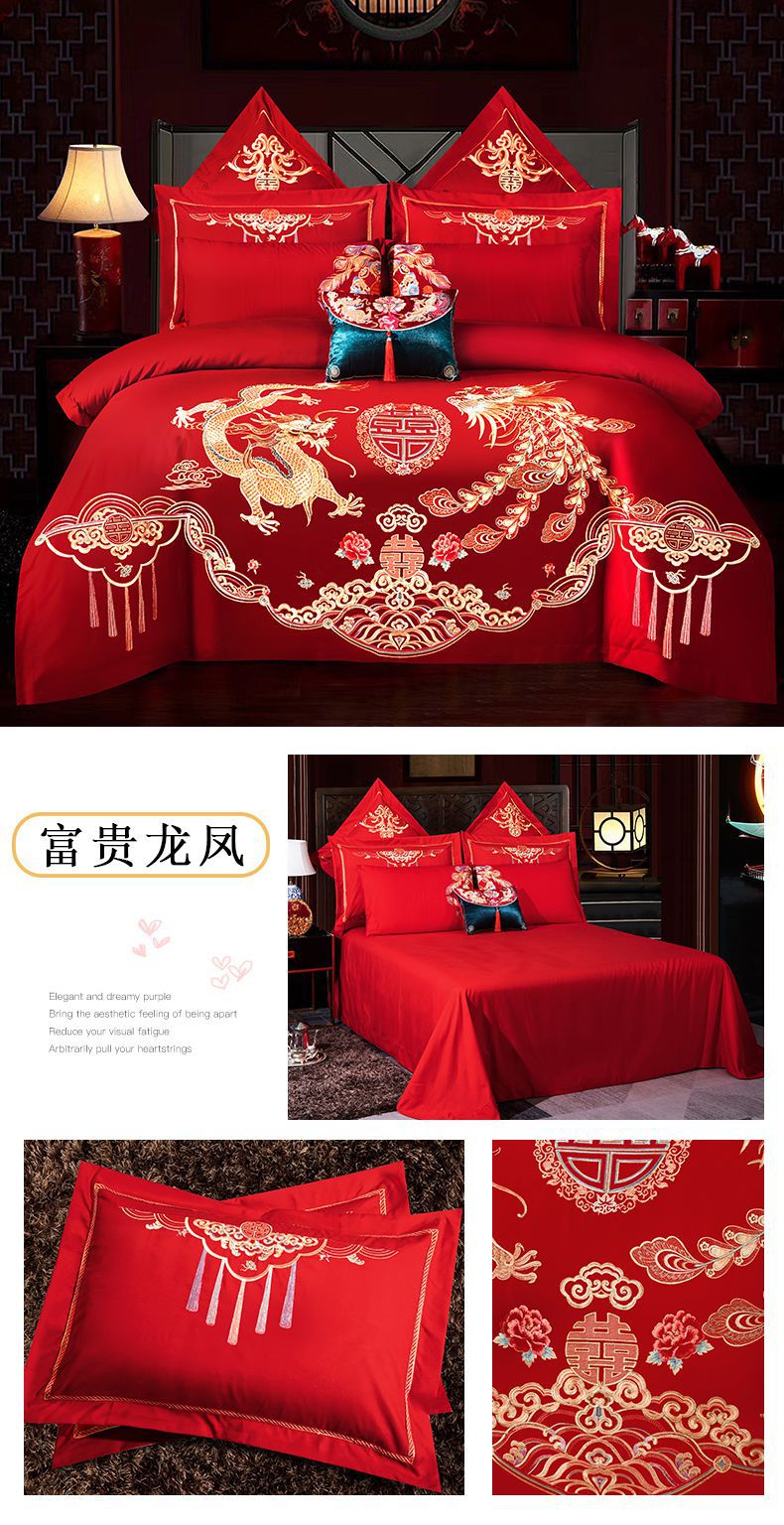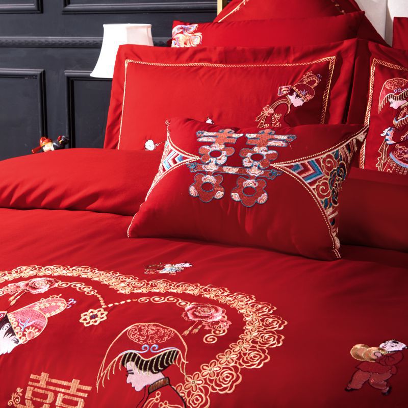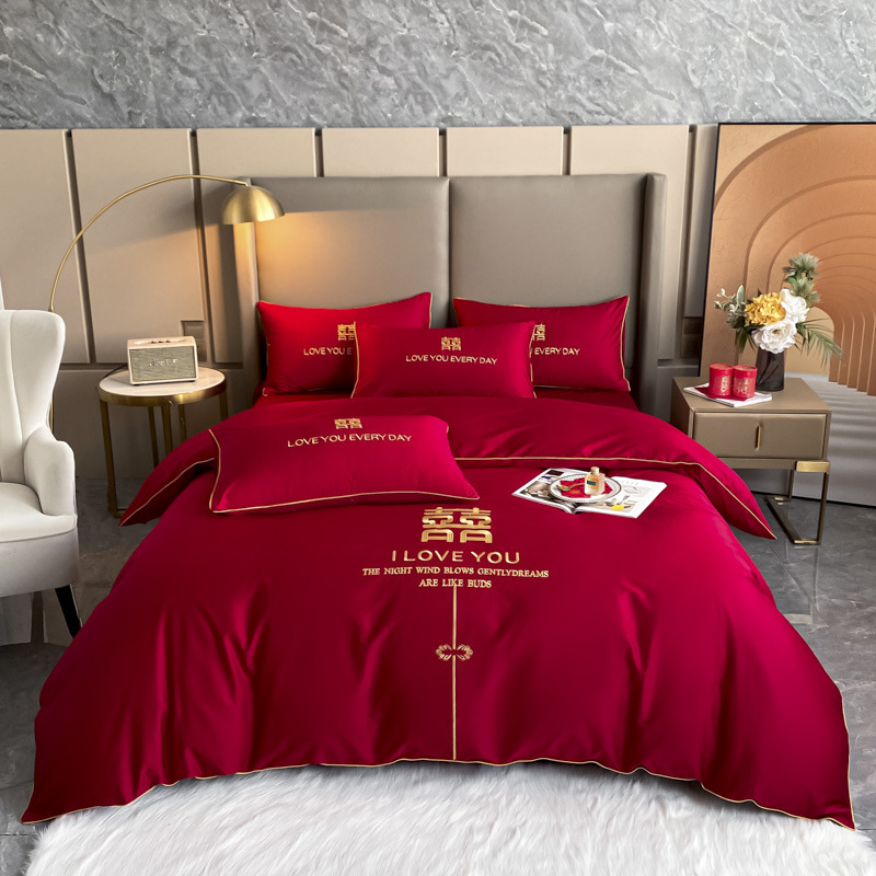Китайский свадебный комплект из четырех предметов, красное вышитое свадебное одеяло для спальни, вышитый свадебный пододеяльник, комплект постельного белья из шести предметов