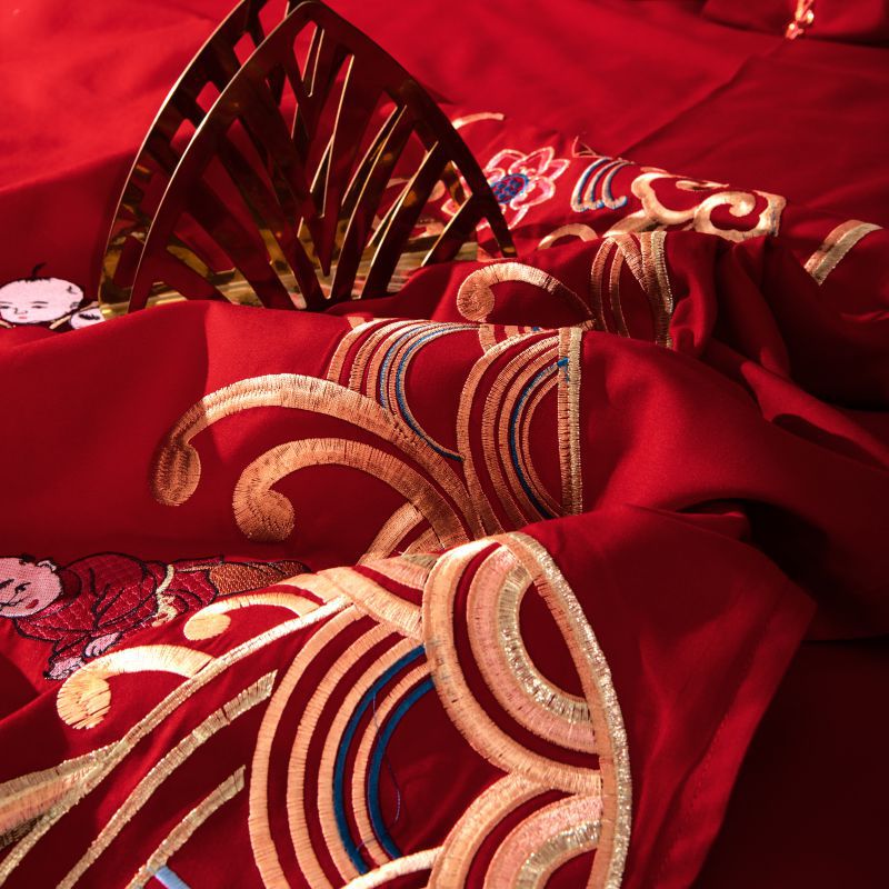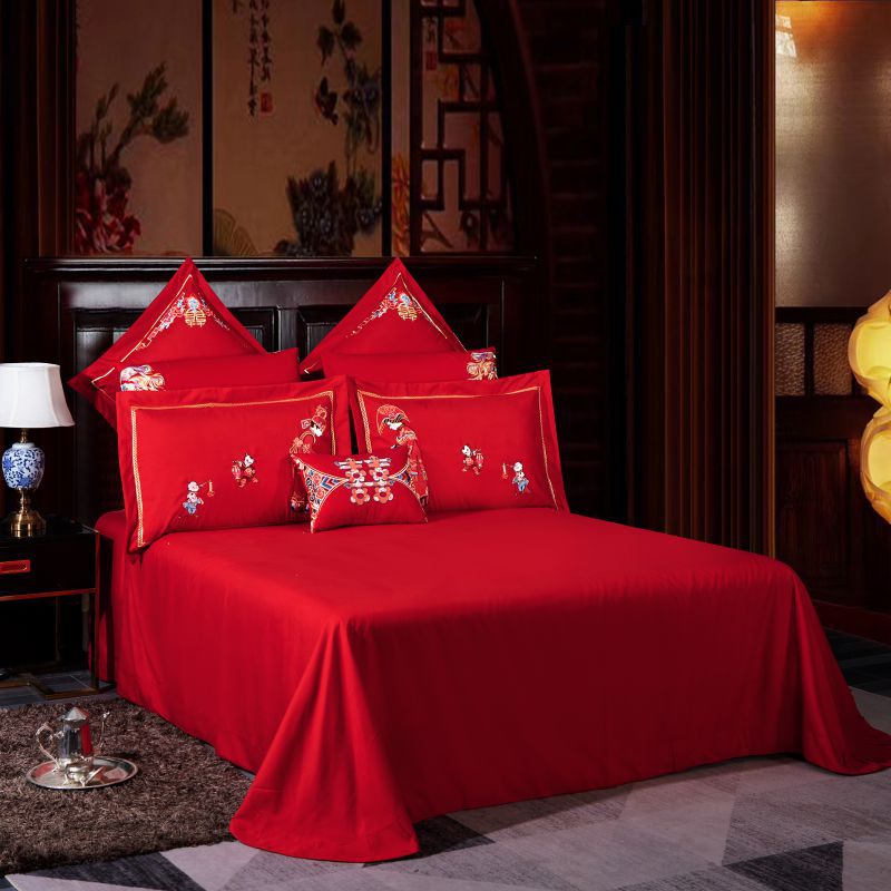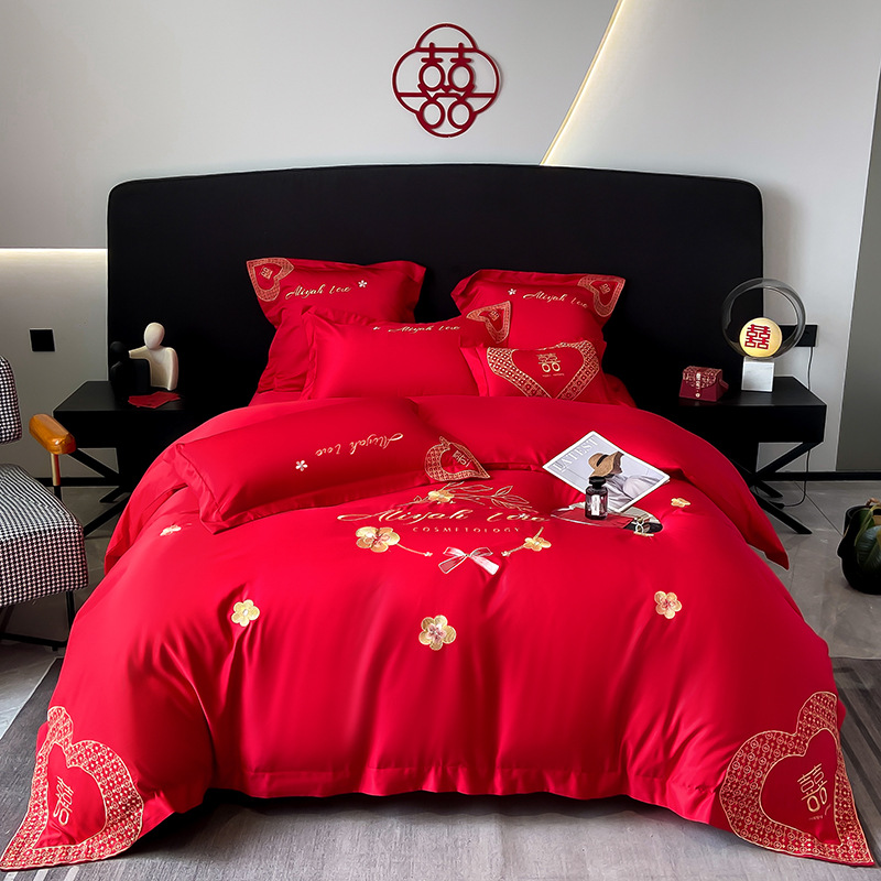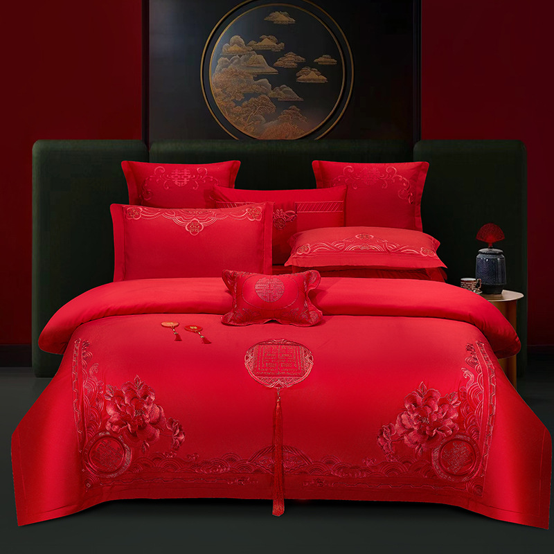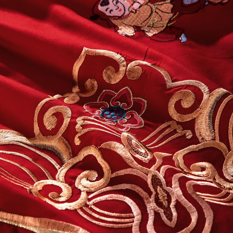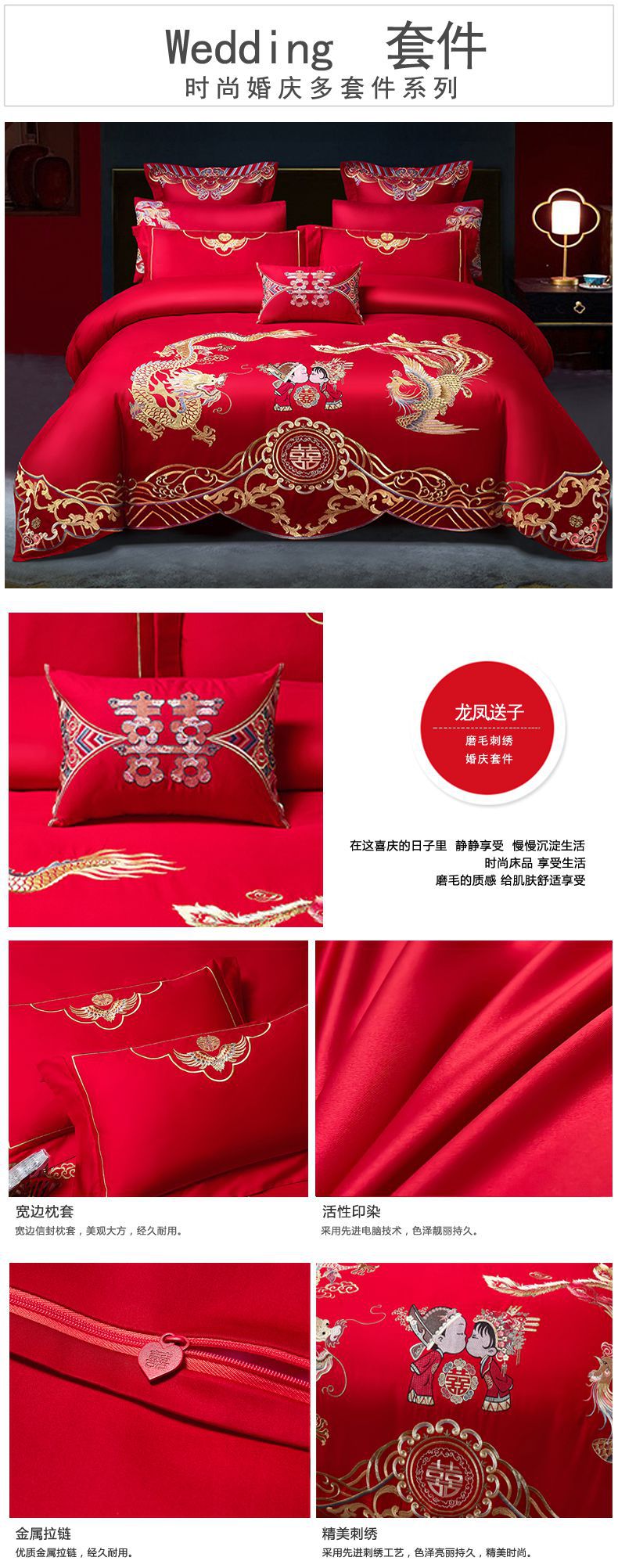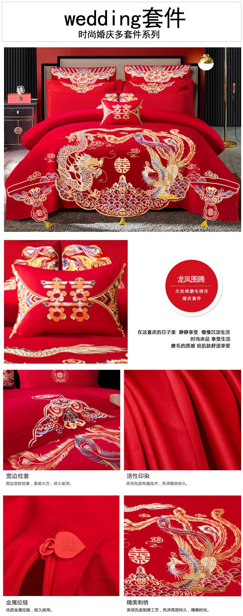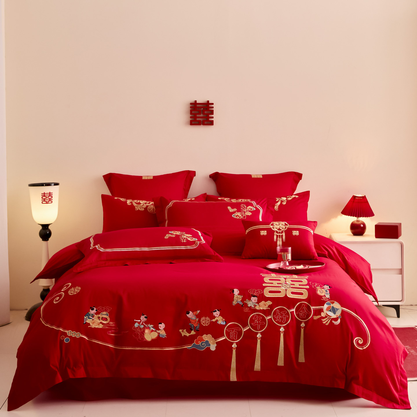Китайский свадебный комплект из четырех предметов, красное вышитое свадебное одеяло для спальни, вышитый свадебный пододеяльник, комплект постельного белья из шести предметов