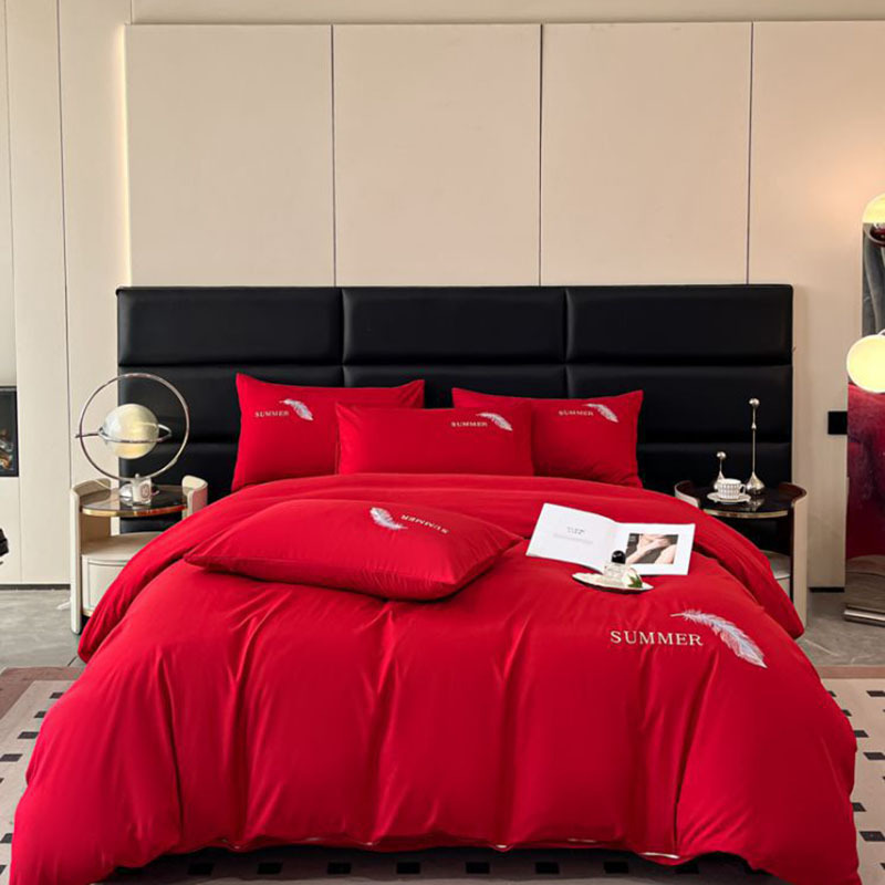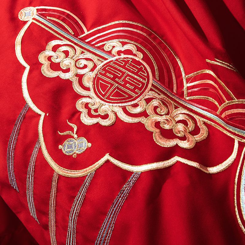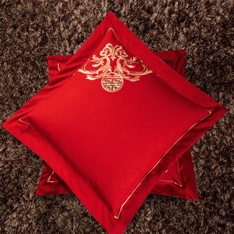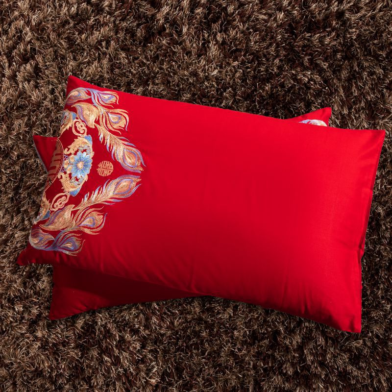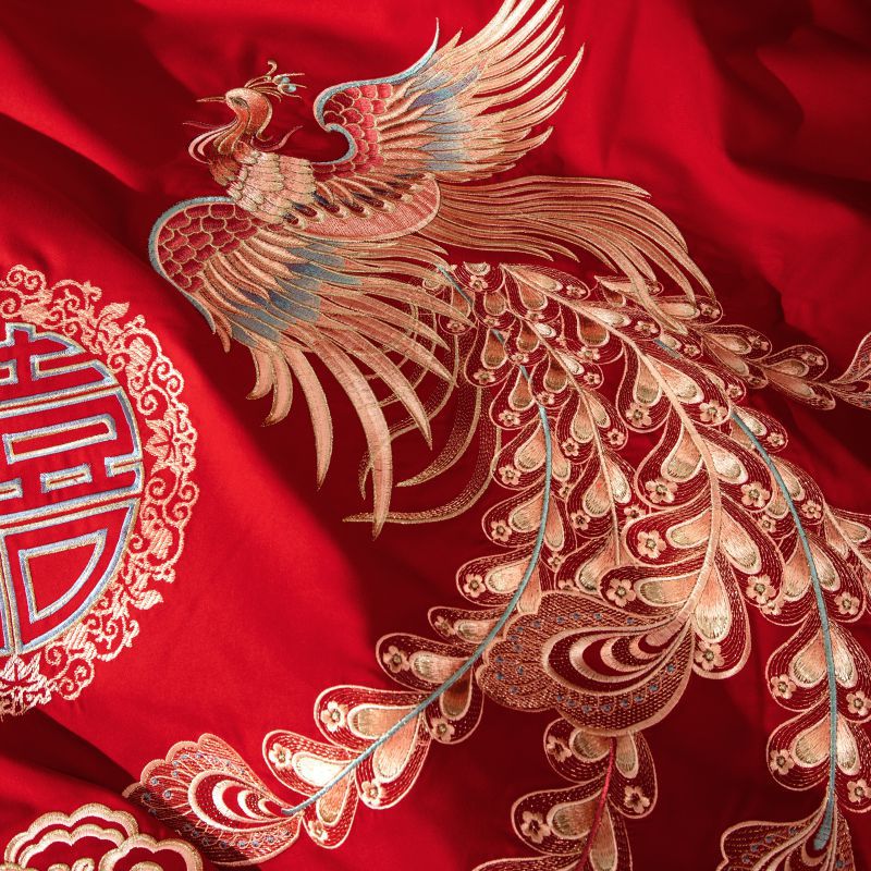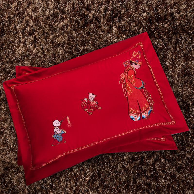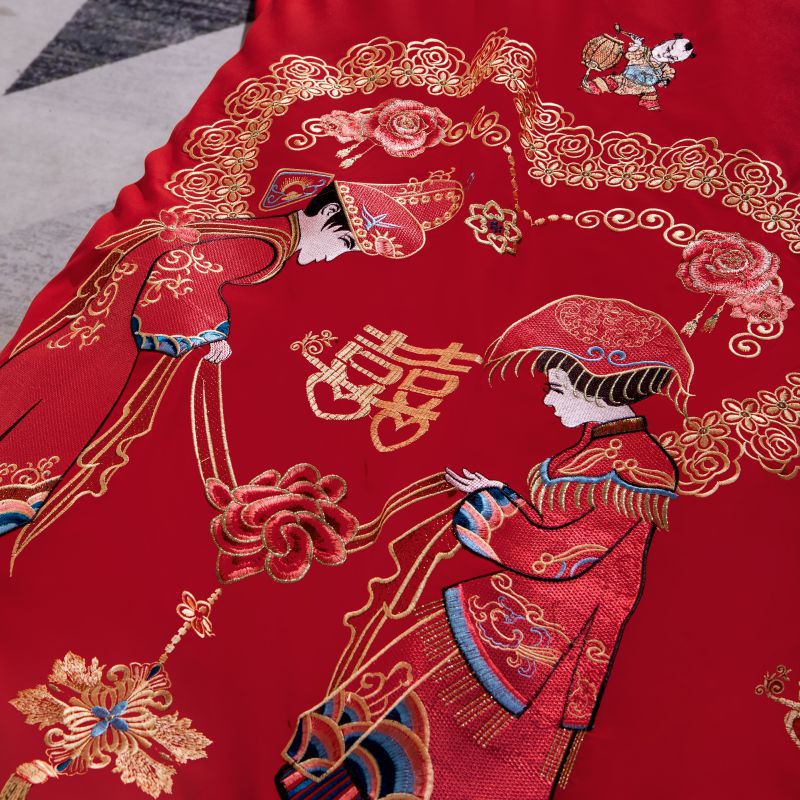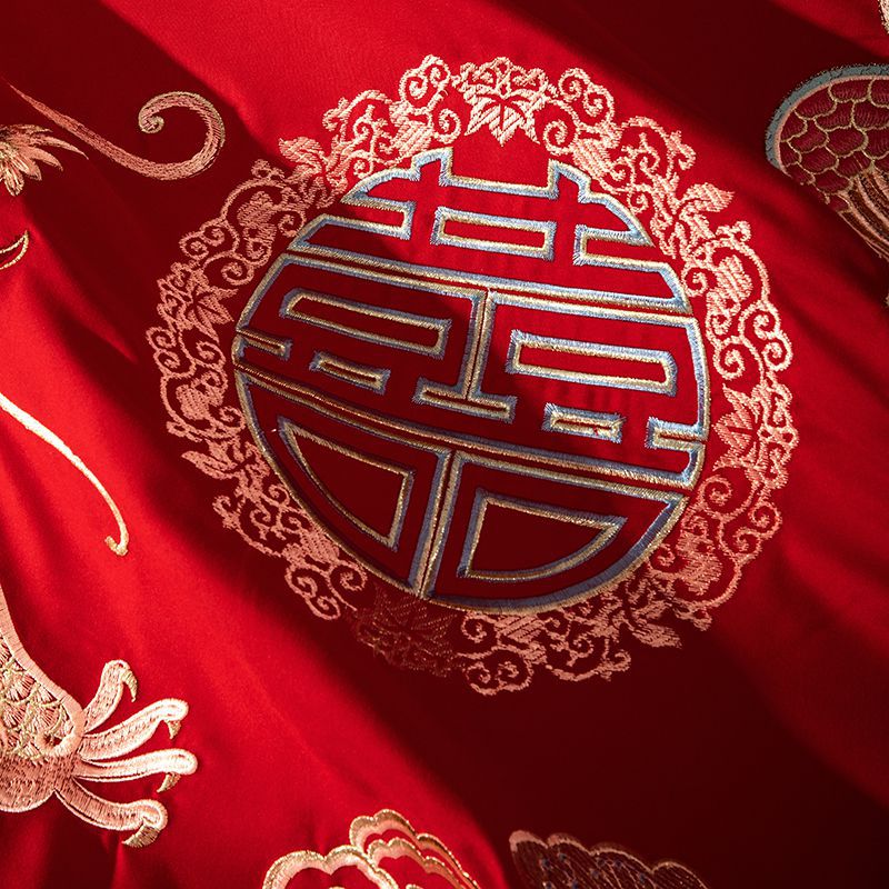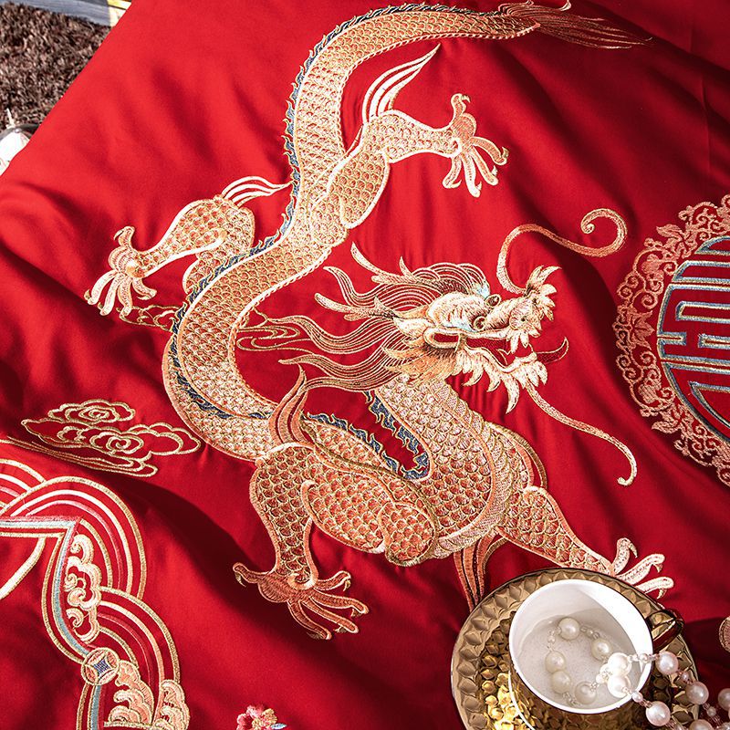 Китайский свадебный комплект из четырех предметов, красное вышитое свадебное одеяло для спальни, вышитый свадебный пододеяльник, комплект постельного белья из шести предметов