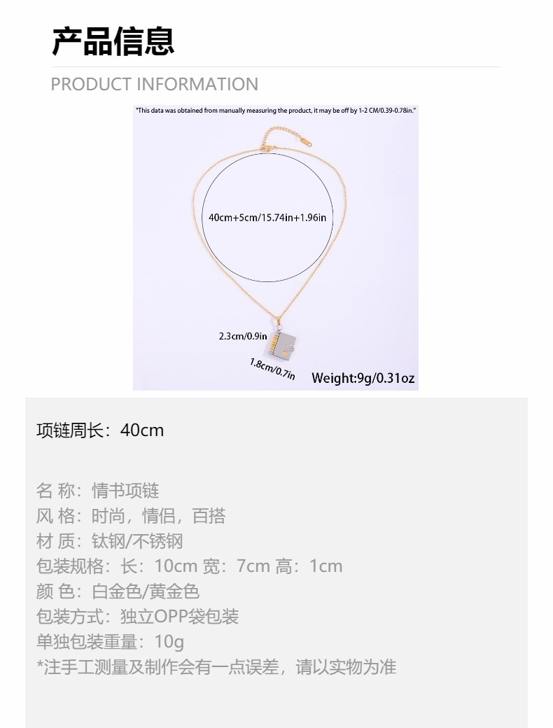 Ожерелье из титановой стали, трансграничное ожерелье с любовным письмом для девочек, открывающийся кулон для пары, новый стиль, индивидуальное ожерелье, цепочка на ключицу
