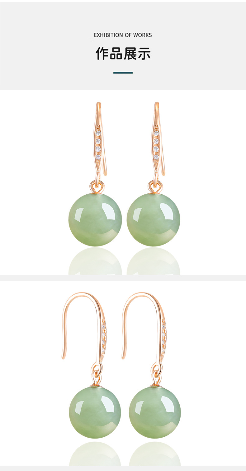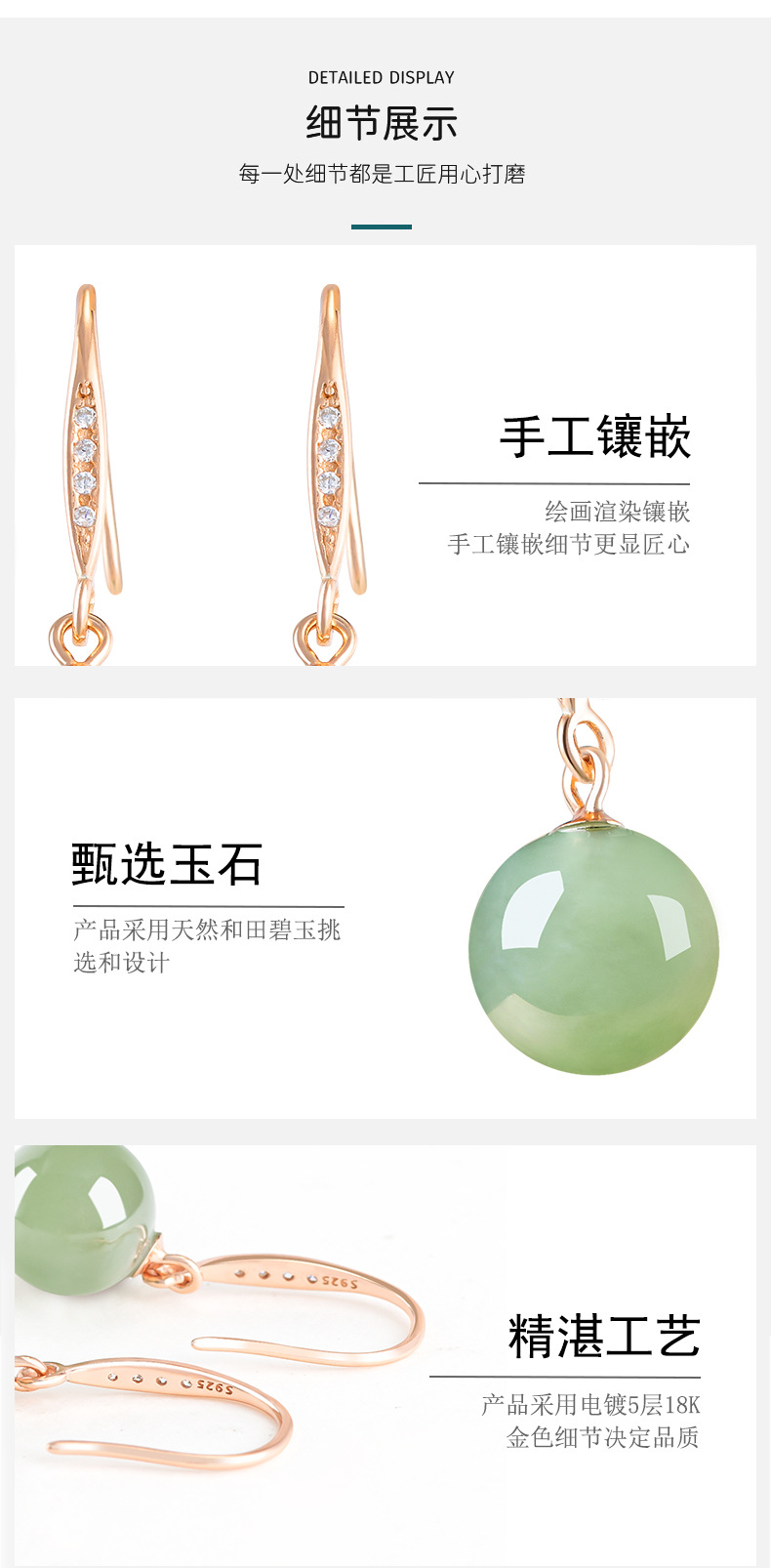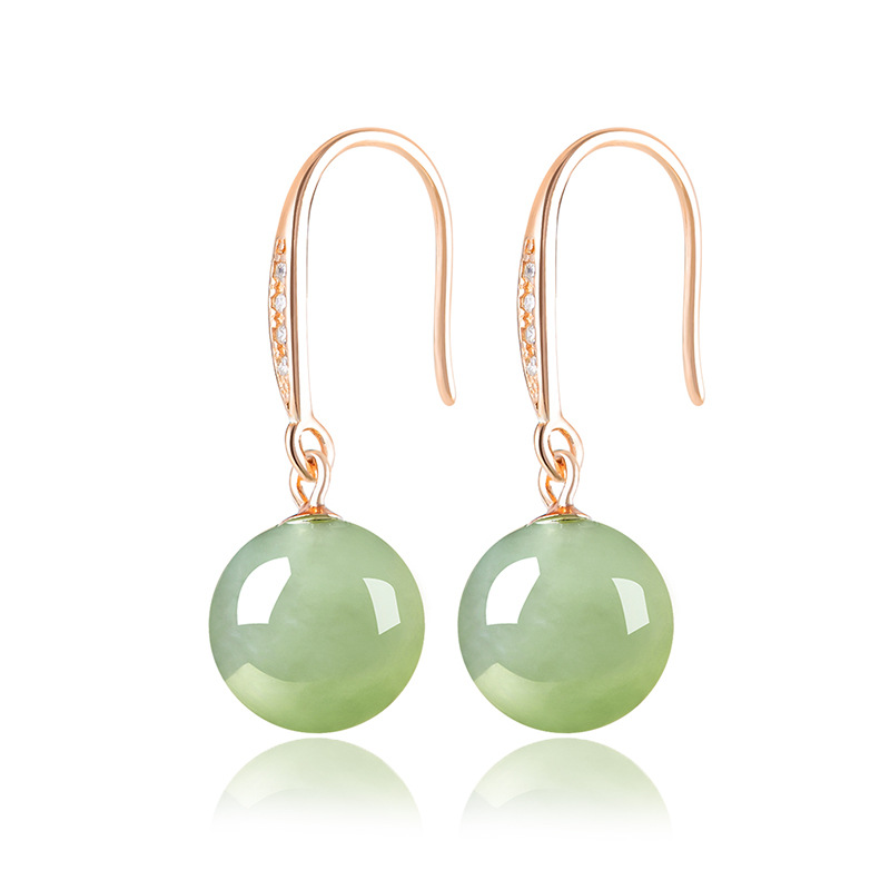 Подлинный S925 Серебряный инкрустированный натуральный Hutian Jade круглые бусины нефритовые серьги модные минималистские женские серьги-серьги