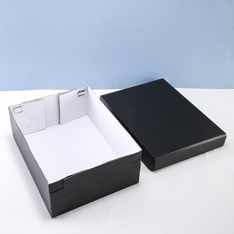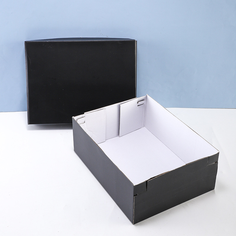 Коробка для обуви оптом от производителя: утолщенная и усиленная подарочная коробка из крафт-бумаги с крышкой и основанием, черная картонная упаковка