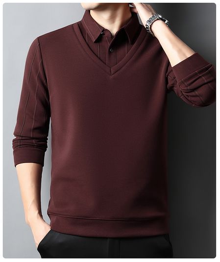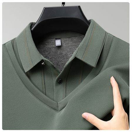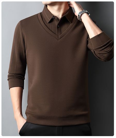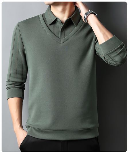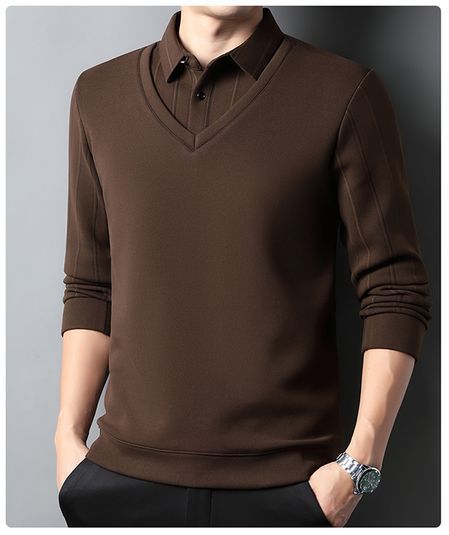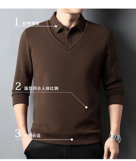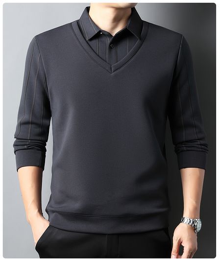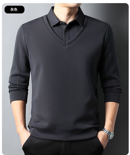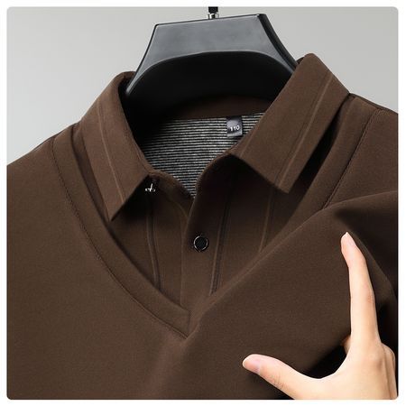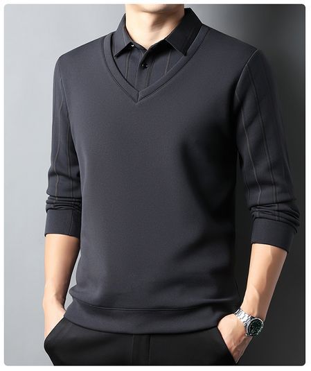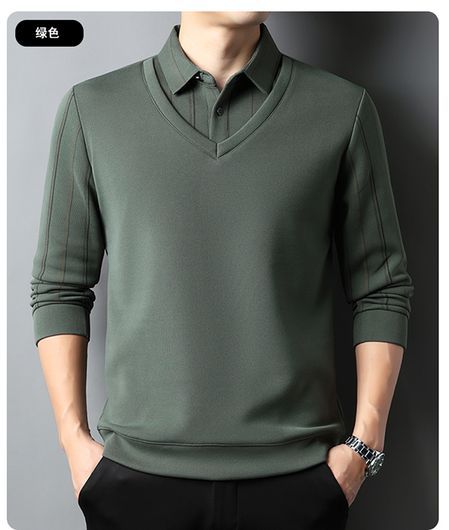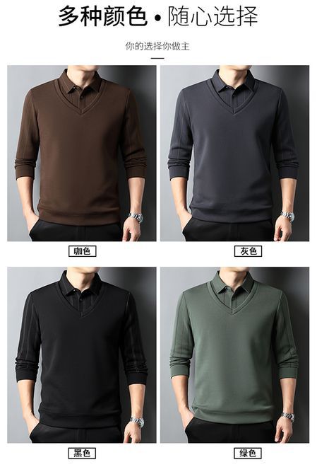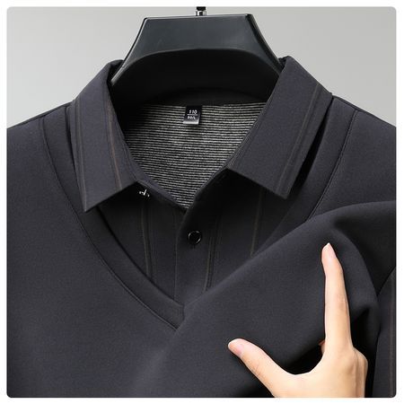 Мужская футболка-поло с длинным рукавом на весну и осень, имитация двухслойной конструкции, с отложным воротником, повседневная, с флисовой подкладкой.