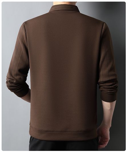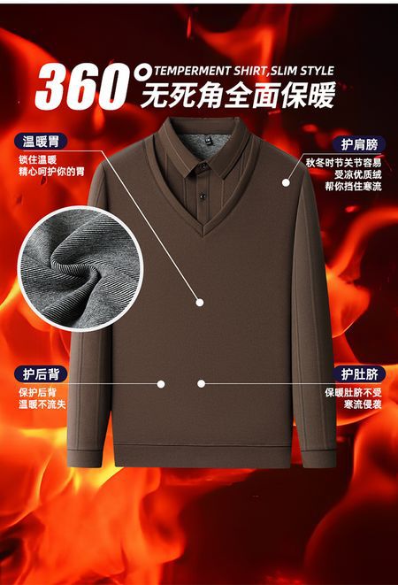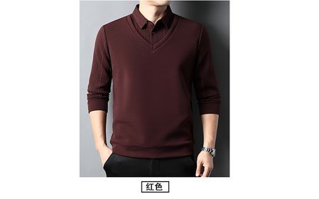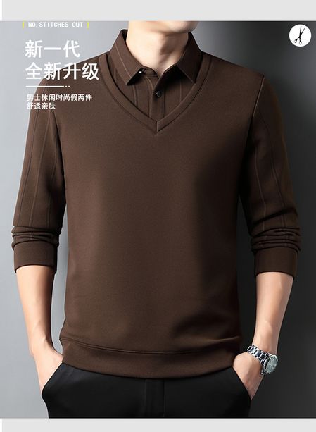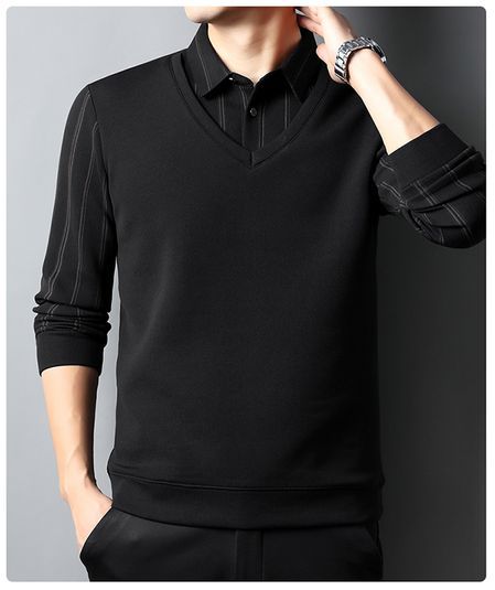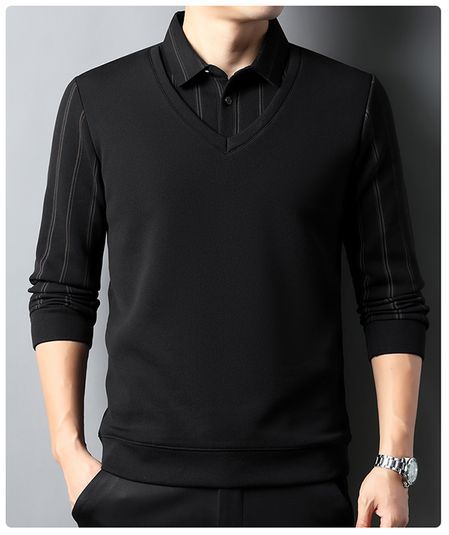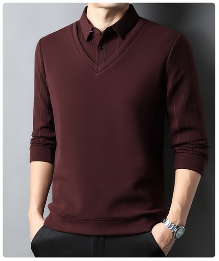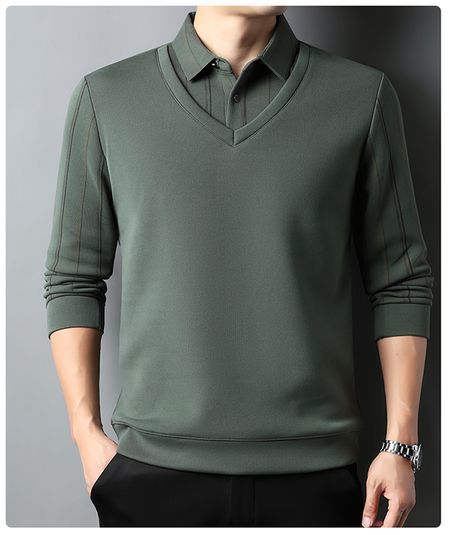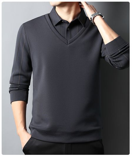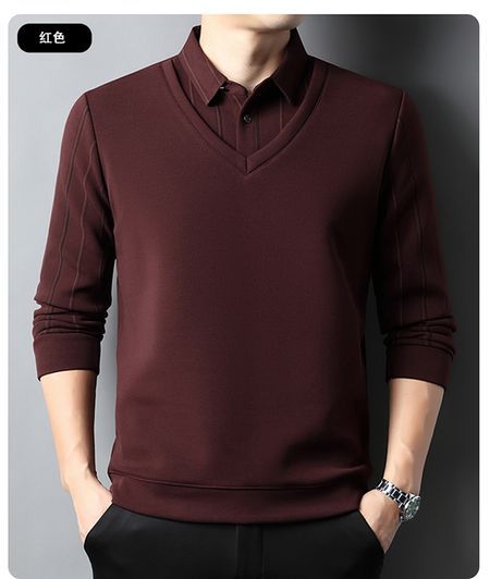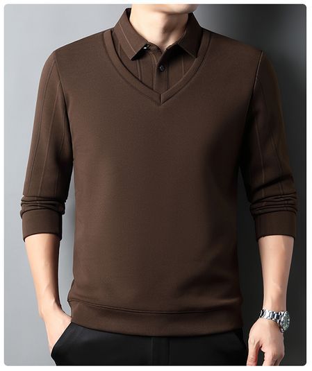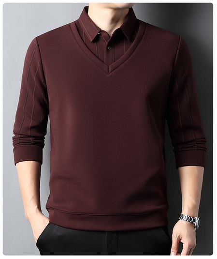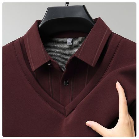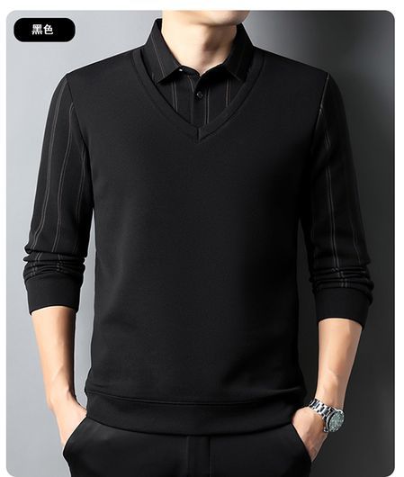 Мужская футболка-поло с длинным рукавом на весну и осень, имитация двухслойной конструкции, с отложным воротником, повседневная, с флисовой подкладкой.