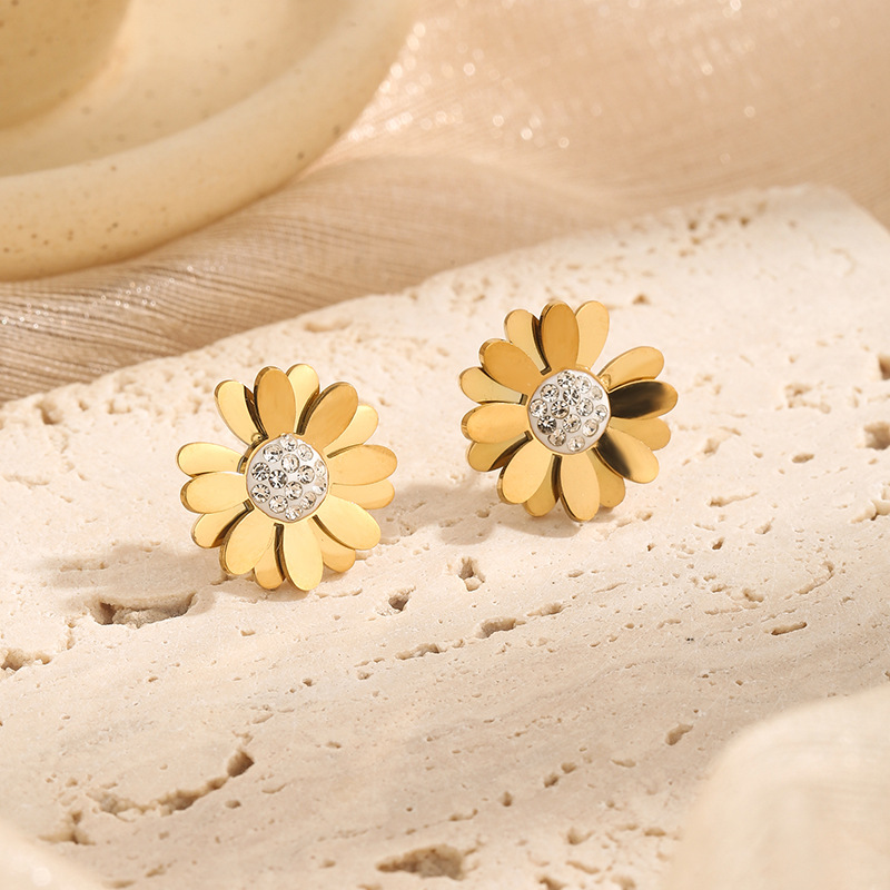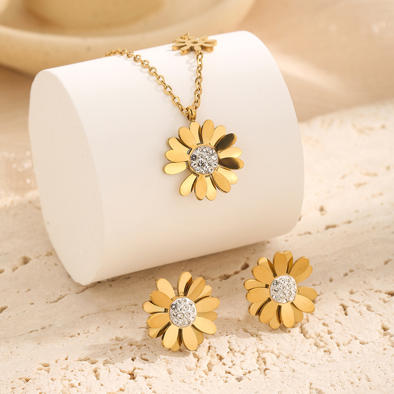 X660 Ожерелье с ромашками Золото; Серьги-ромашки E123 золото