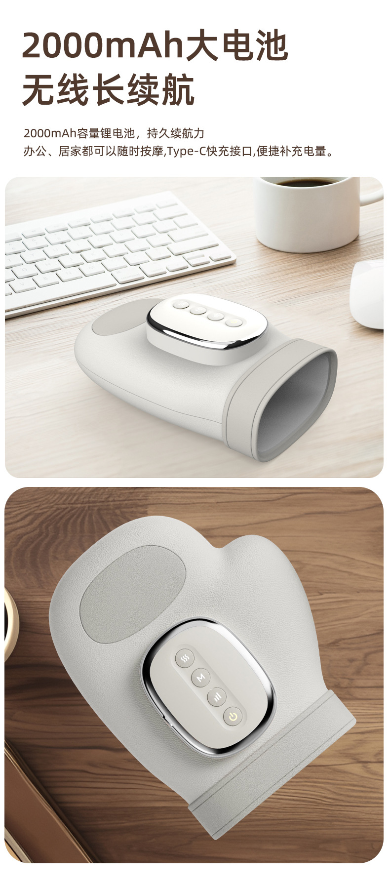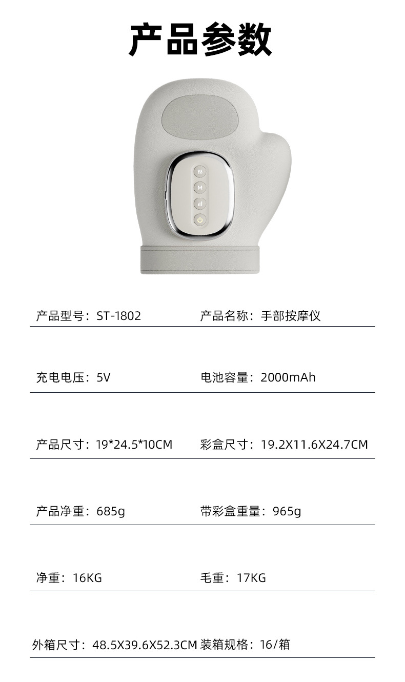 Несколько режимов; Беспроводной и портативный; Множественный точечный массаж; Имитация замешивания человеческой руки; Многоуровневый горячий компресс