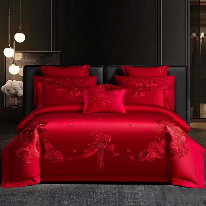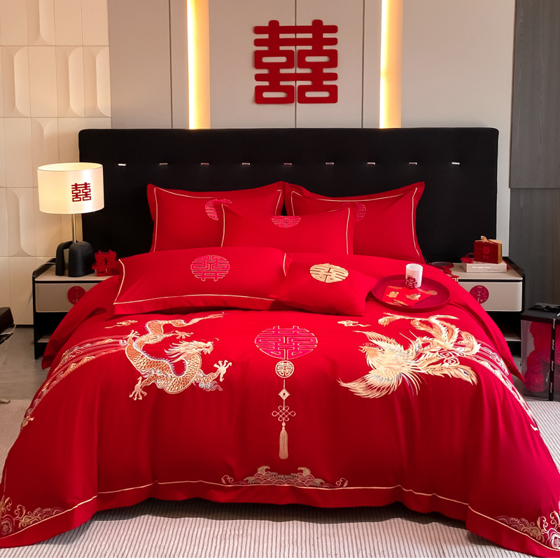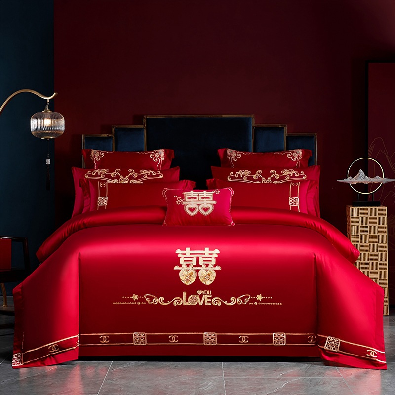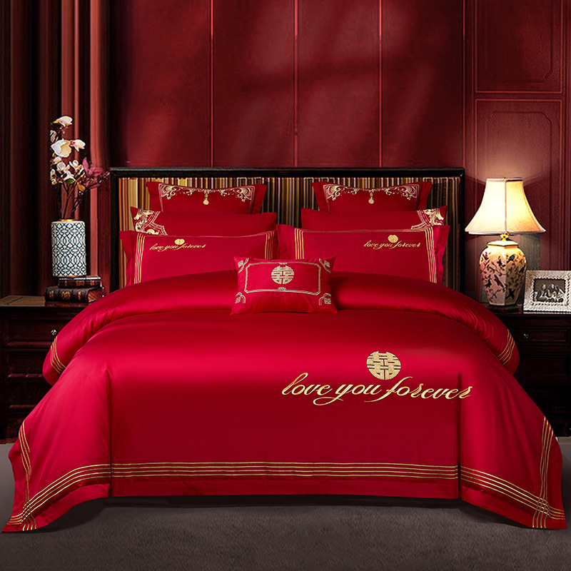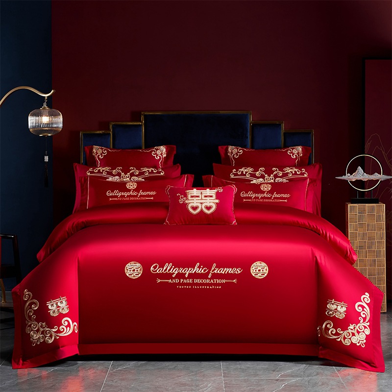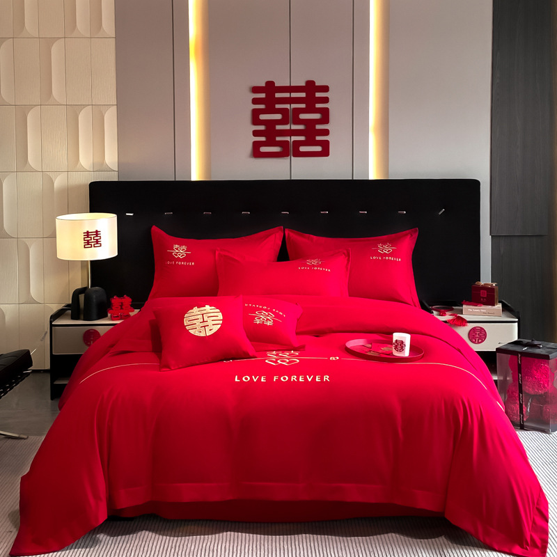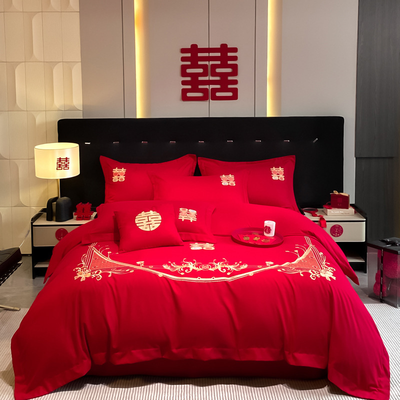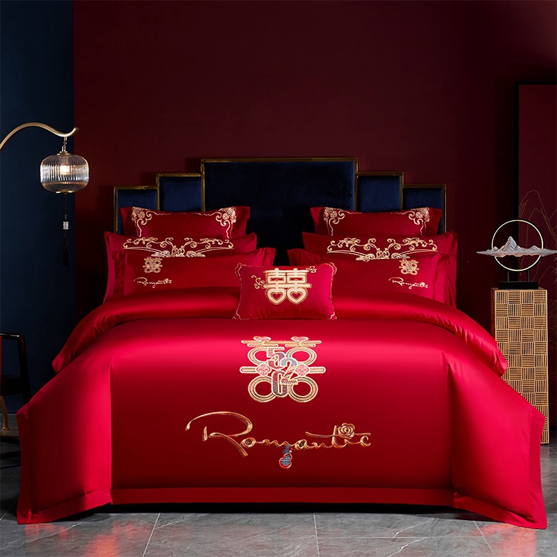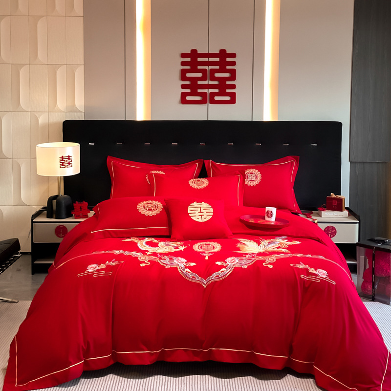 Свадебный комплект из четырех предметов из чистого хлопка, ярко-красное свадебное постельное белье, постельное белье для молодоженов, покрывало для свадебной комнаты, оптовая продажа свадебных покрывал