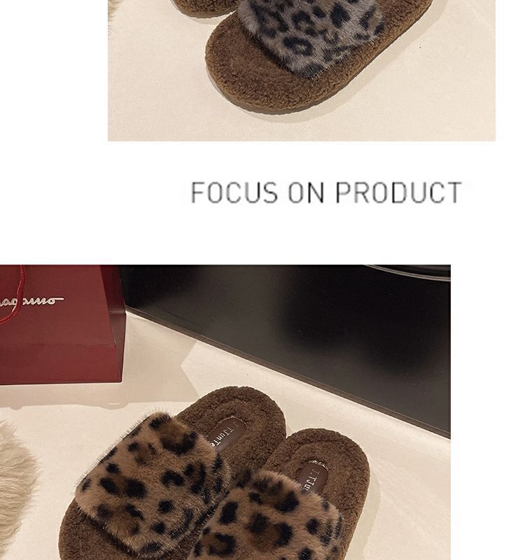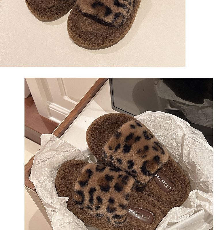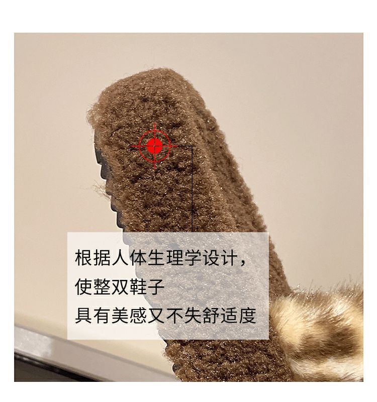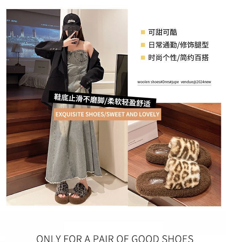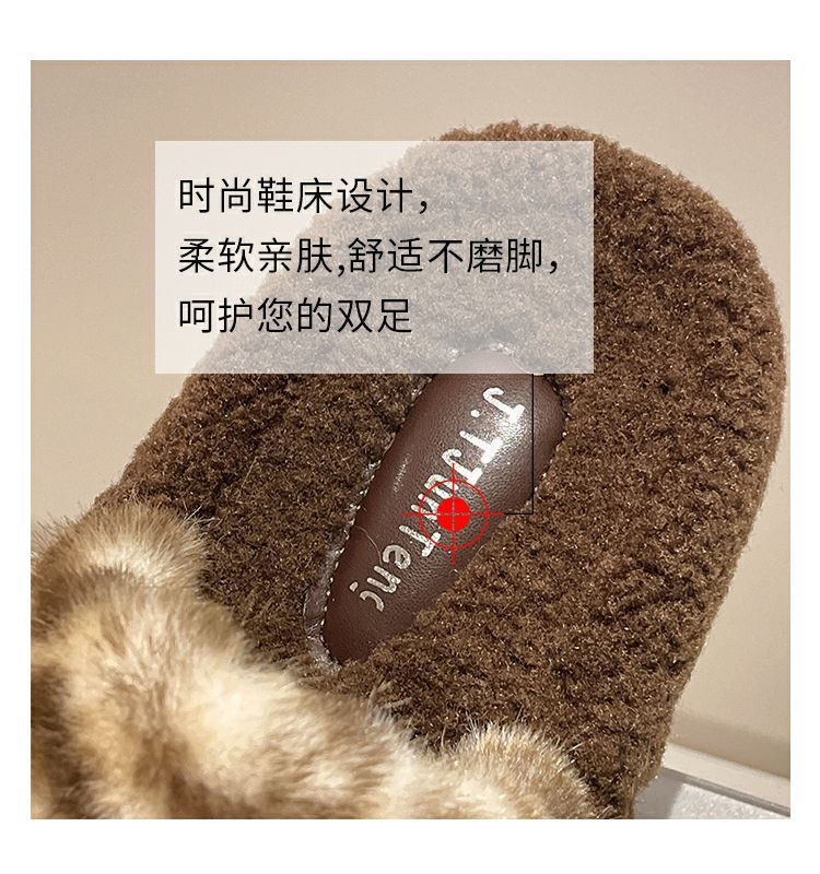 Толстая подошва шерстяные шлепанцы женские снаружи носят 2024 осень и зима новая овечья шерсть пушистая сетка красная домашняя слово хлопчатобумажные тапочки