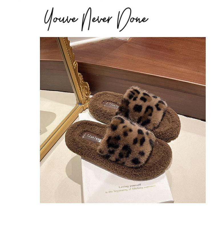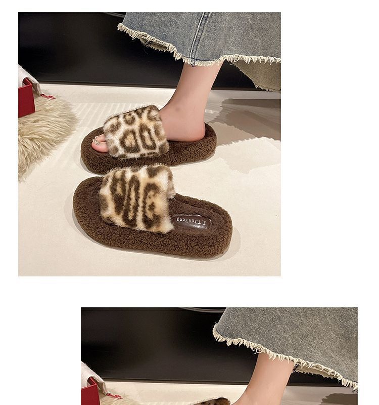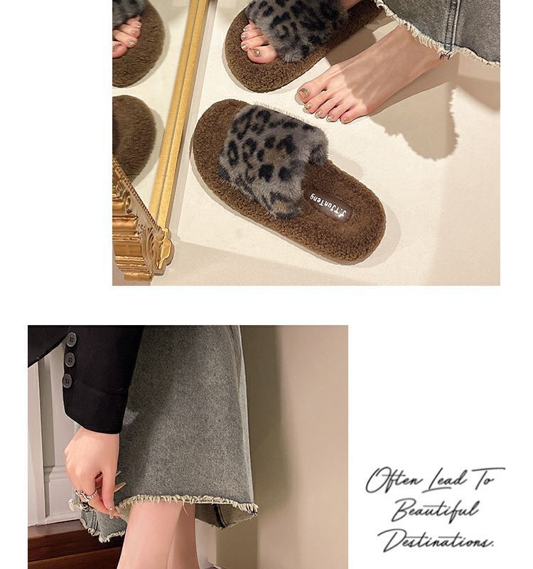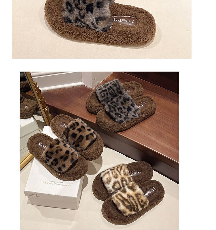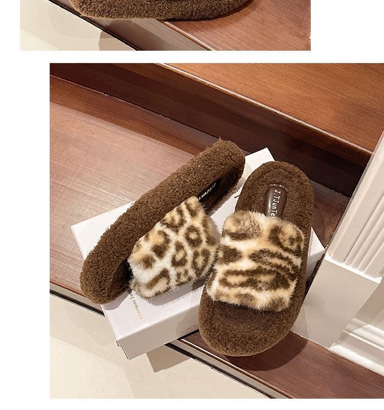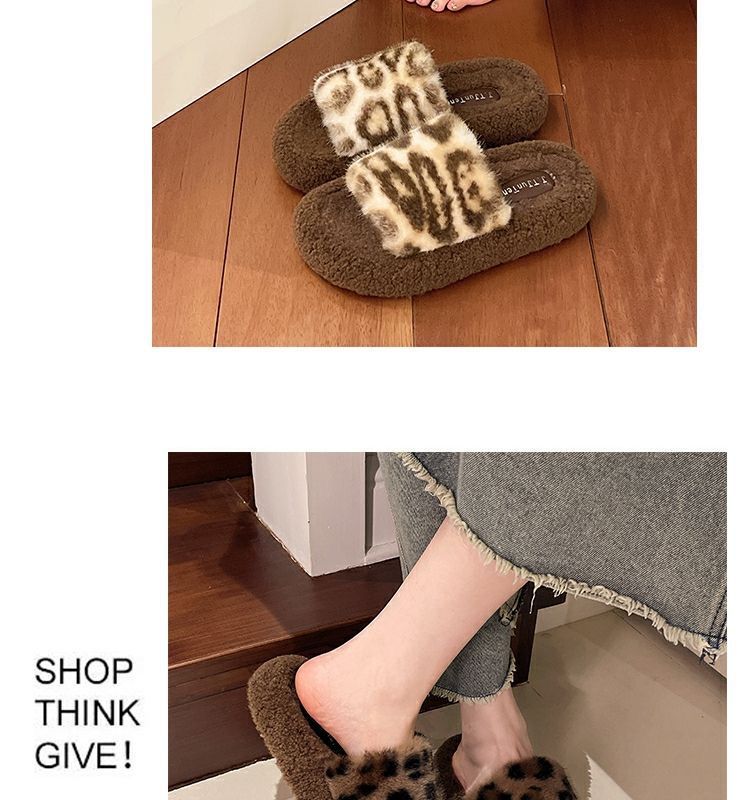 Толстая подошва шерстяные шлепанцы женские снаружи носят 2024 осень и зима новая овечья шерсть пушистая сетка красная домашняя слово хлопчатобумажные тапочки