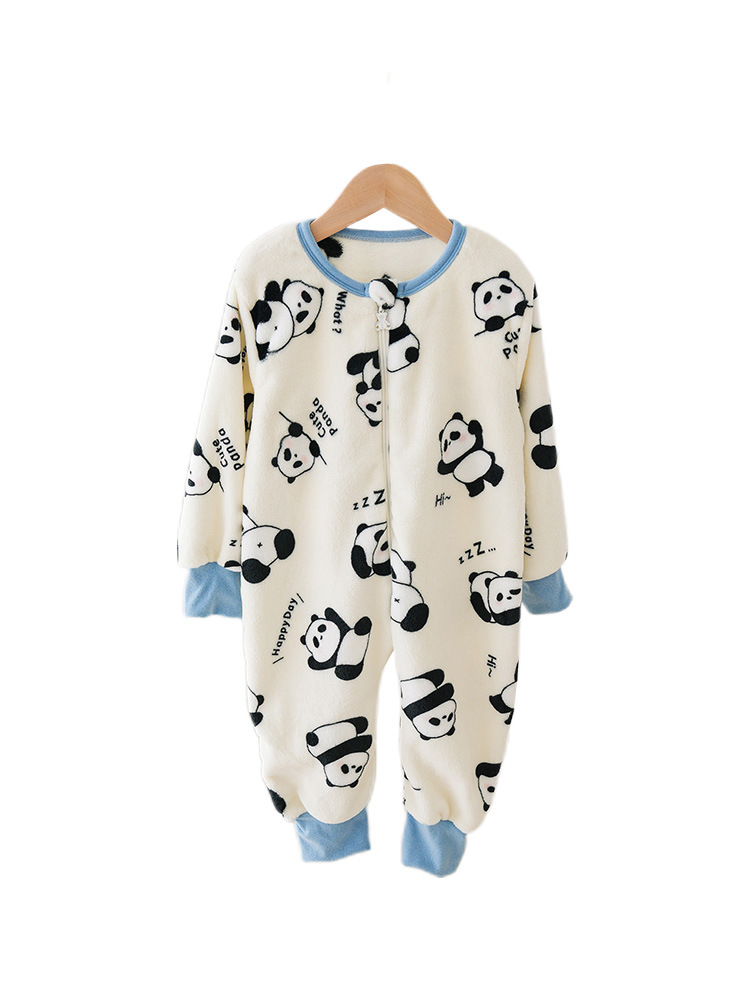 25 зимних детских фланелевых теплых спальных мешков для детей постарше, утолщенные пижамы с защитой живота, цельные костюмы, домашняя одежда, пижамы