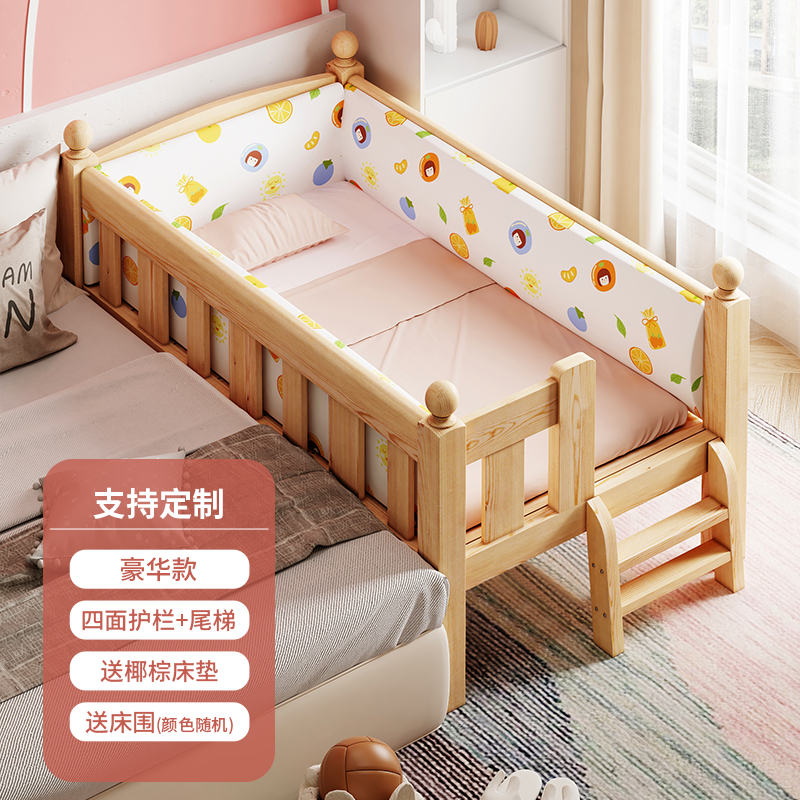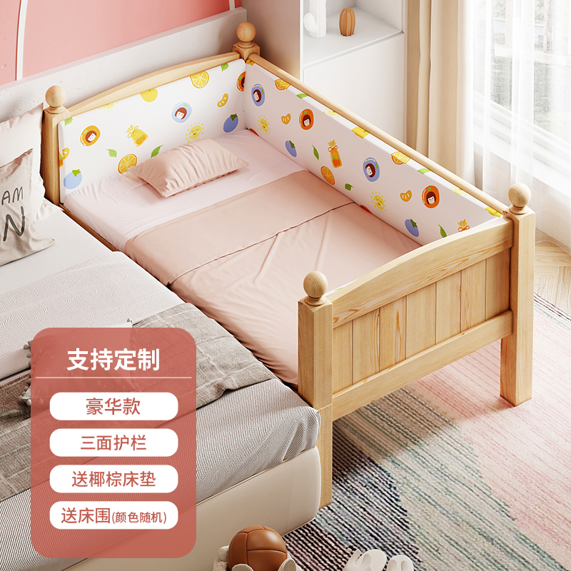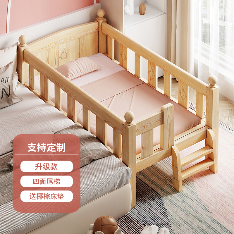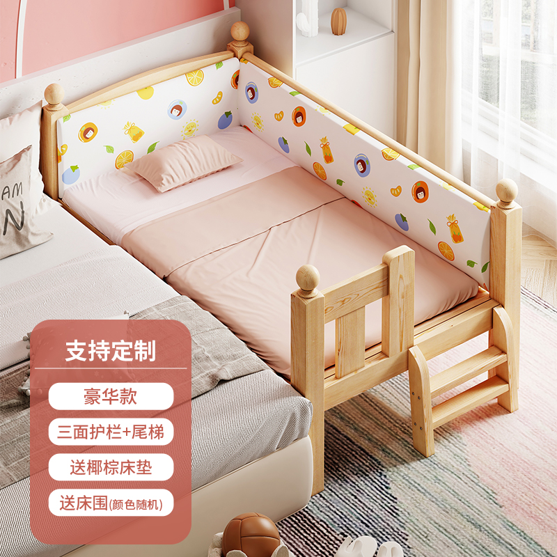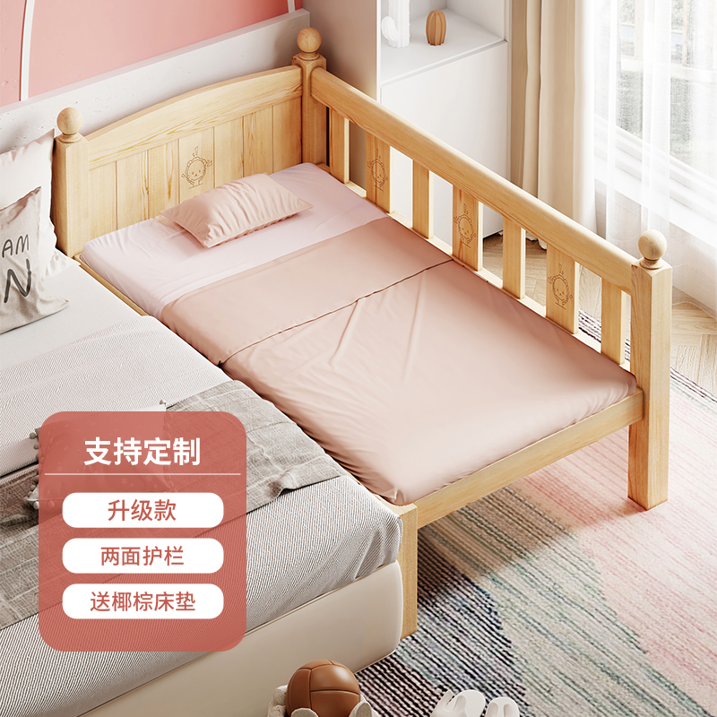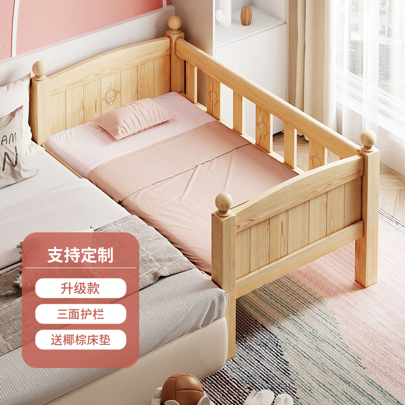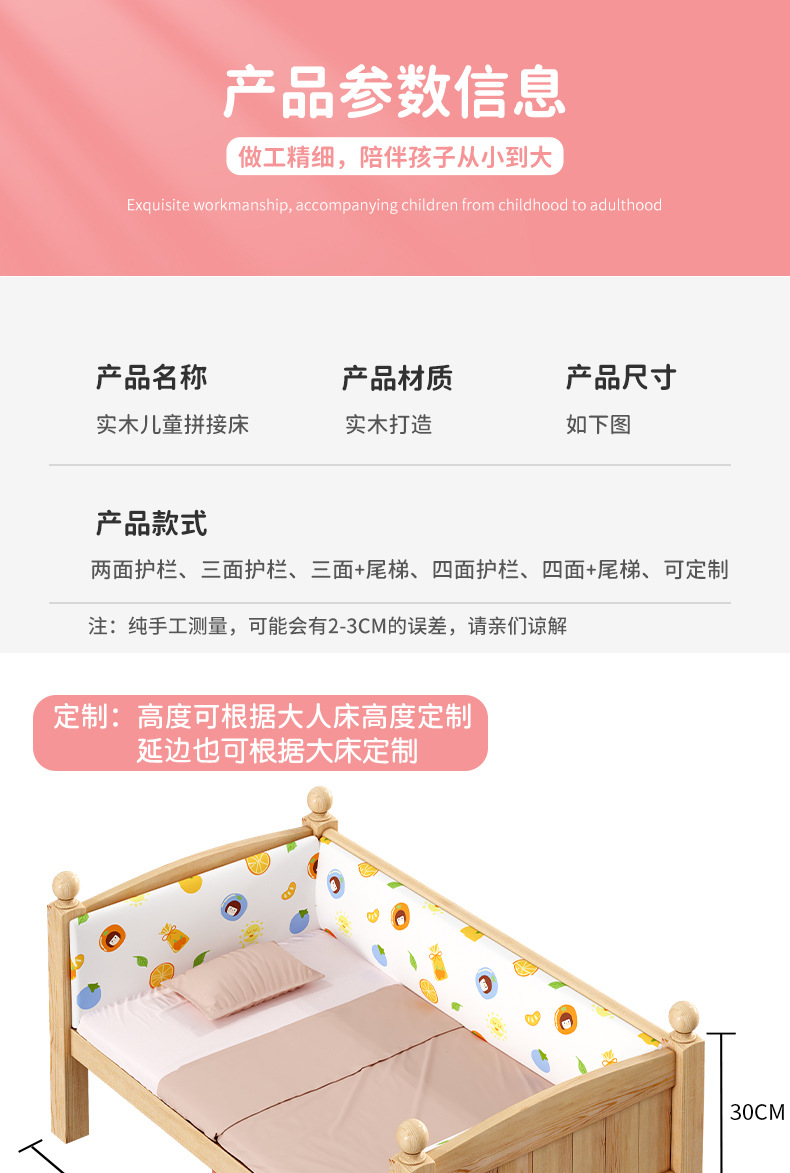 Детская кровать из массива дерева Детская односпальная кровать для мальчиков Детское сращивание двуспальная кровать боковой кровати Дополнительная широкая маленькая кровать с ограждением для девочек кровати принцессы