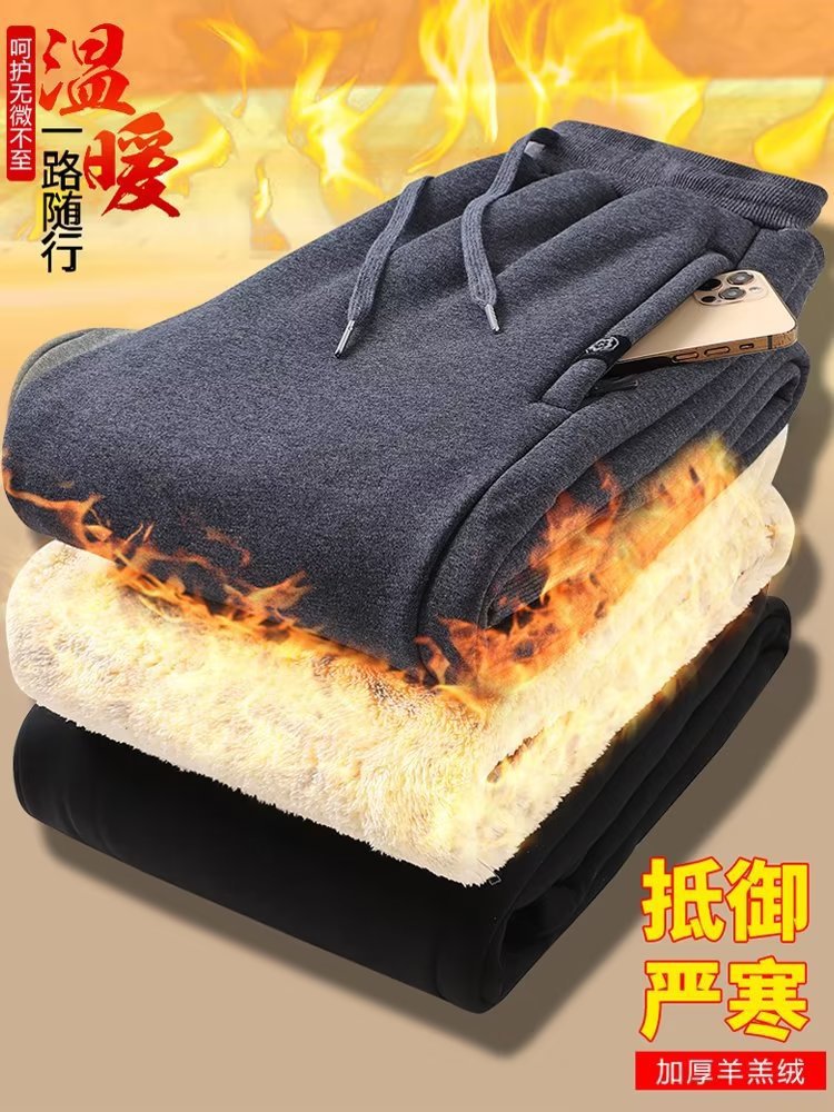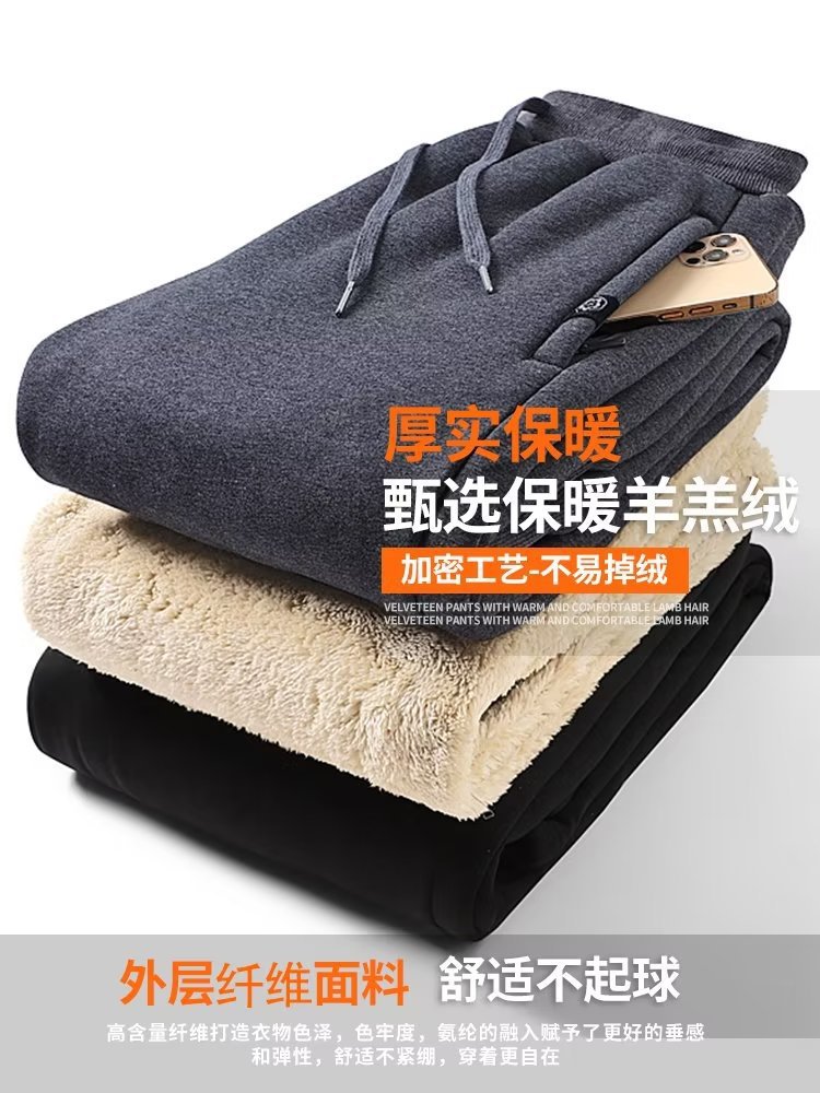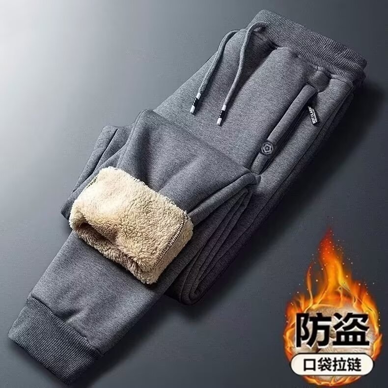 Осенние и зимние кашемировые повседневные брюки из баранины мужские плюшевые толстые карманы на молнии