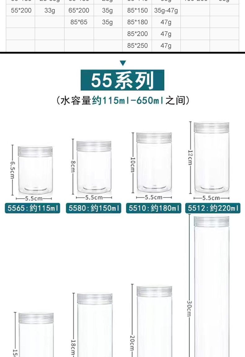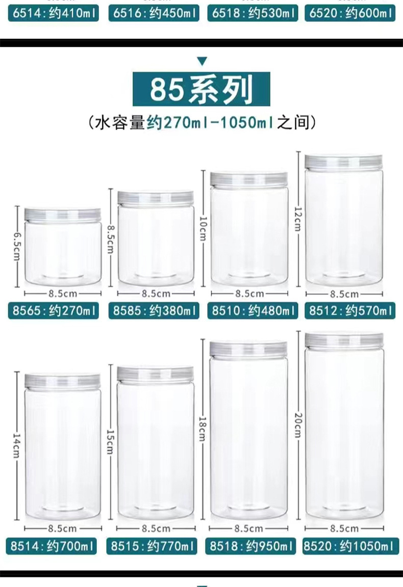 55, 65, 85, 100 рта, прозрачная пластиковая банка, герметичная упаковка для домашних животных, широкий рот, тонкий рот, круглая бутылка, оптовая продажа, банка