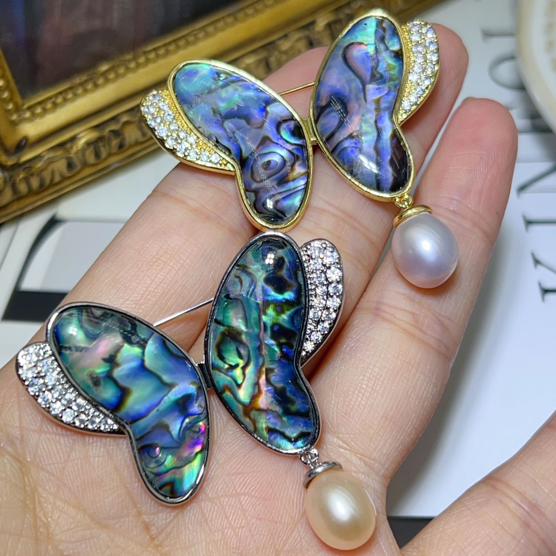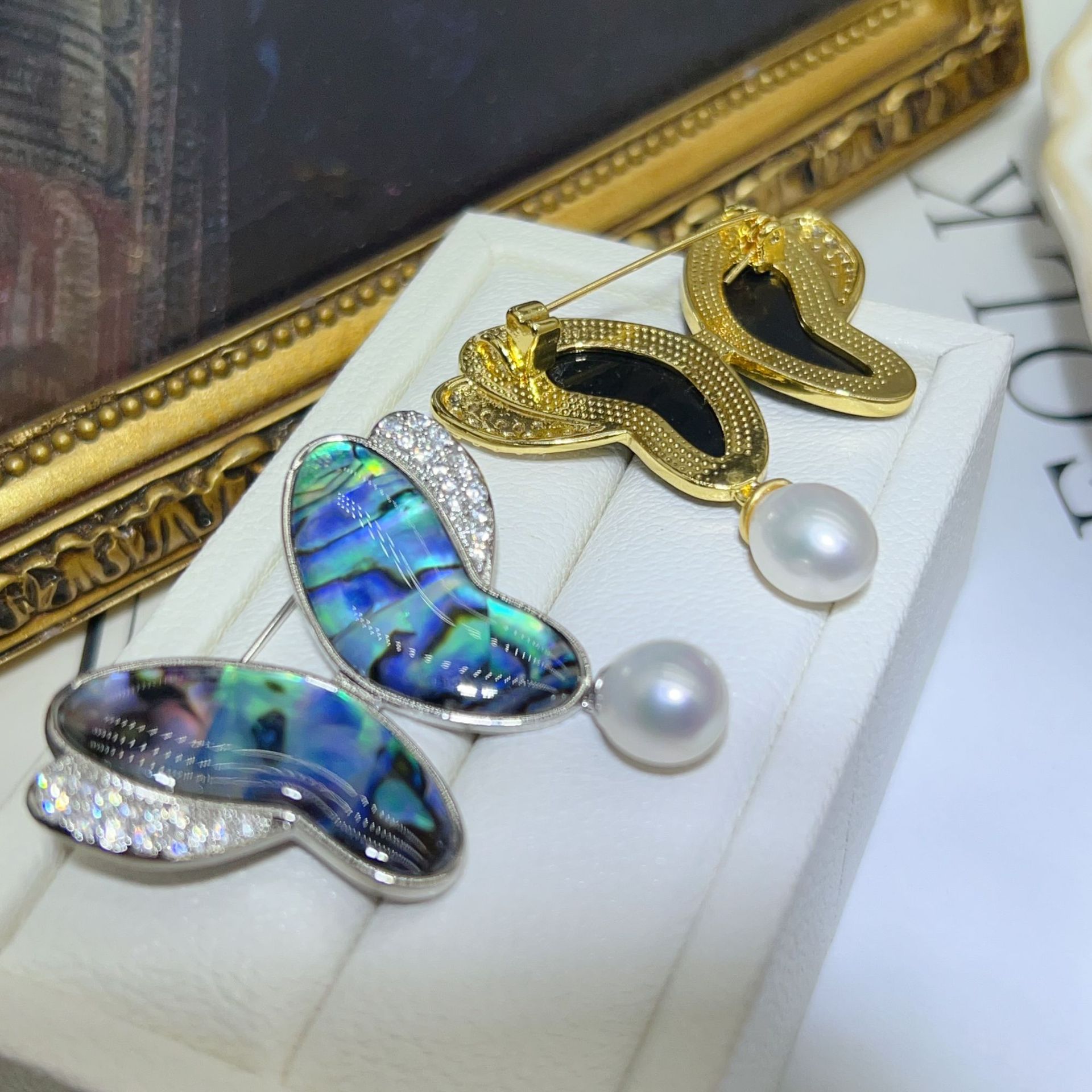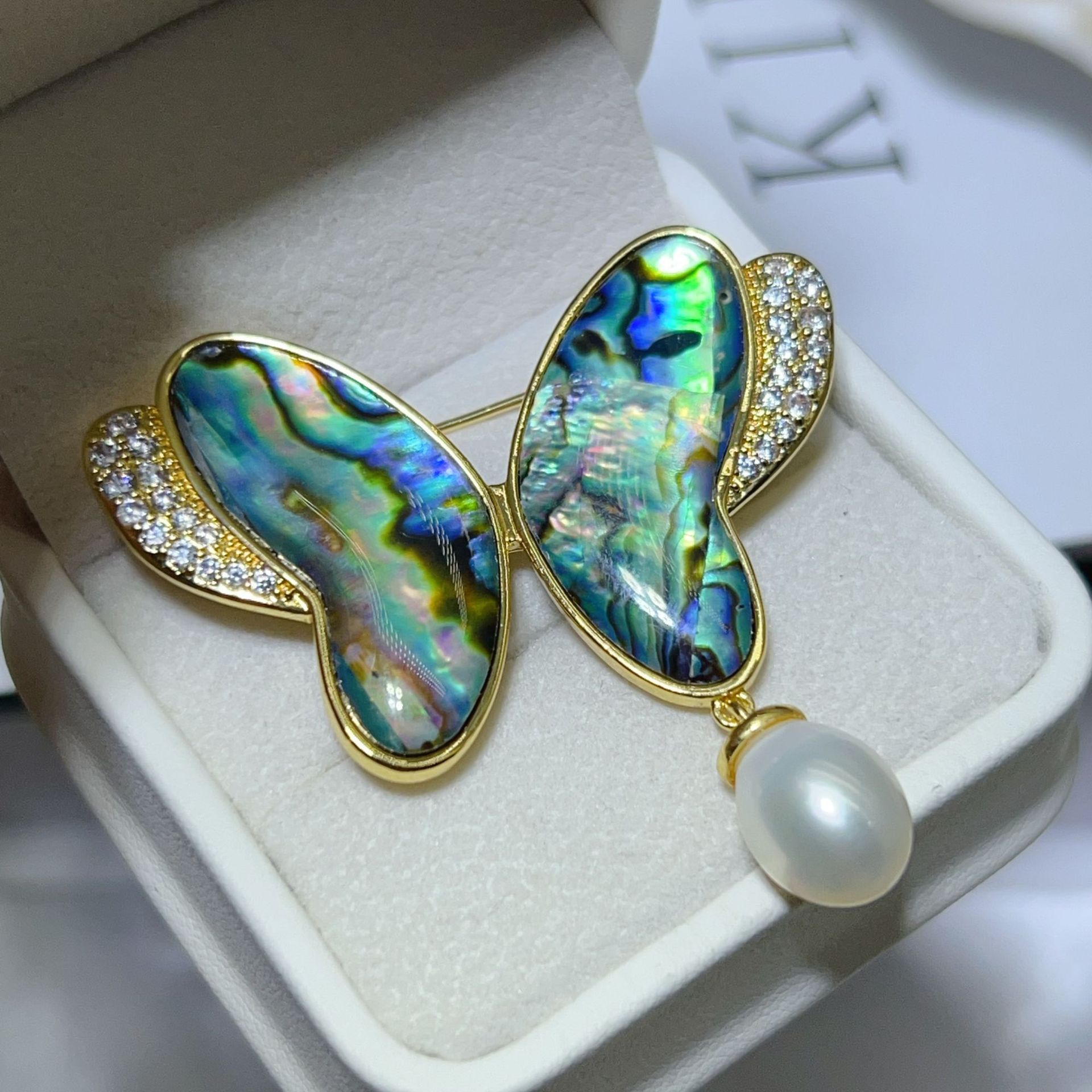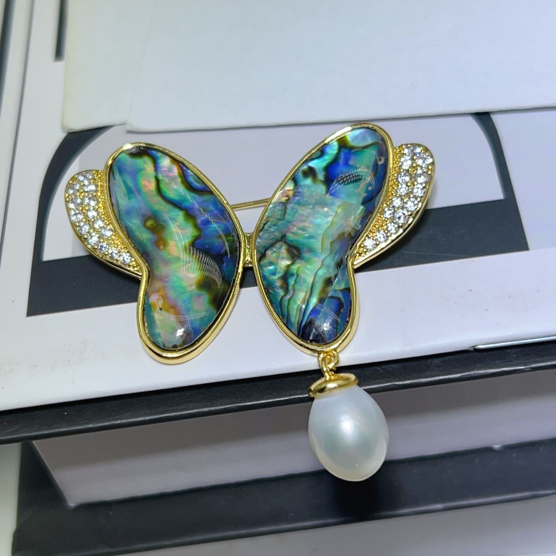 Zhuji пресноводные жемчужные корсамы натуральные рисовые зерна жемчужные броши 18-каратного золота инкрустированные натуральные раковины бабочки булавки