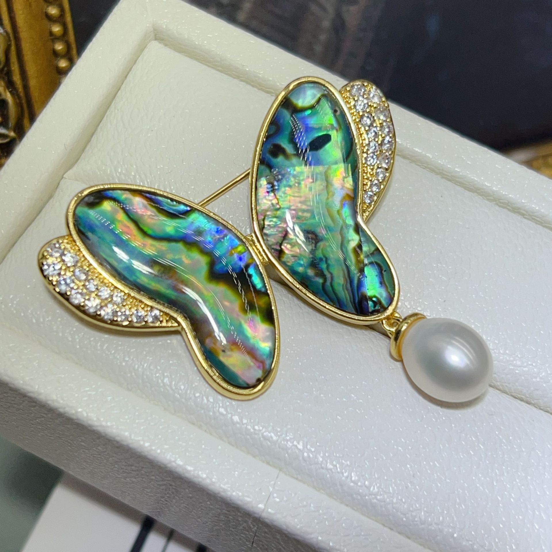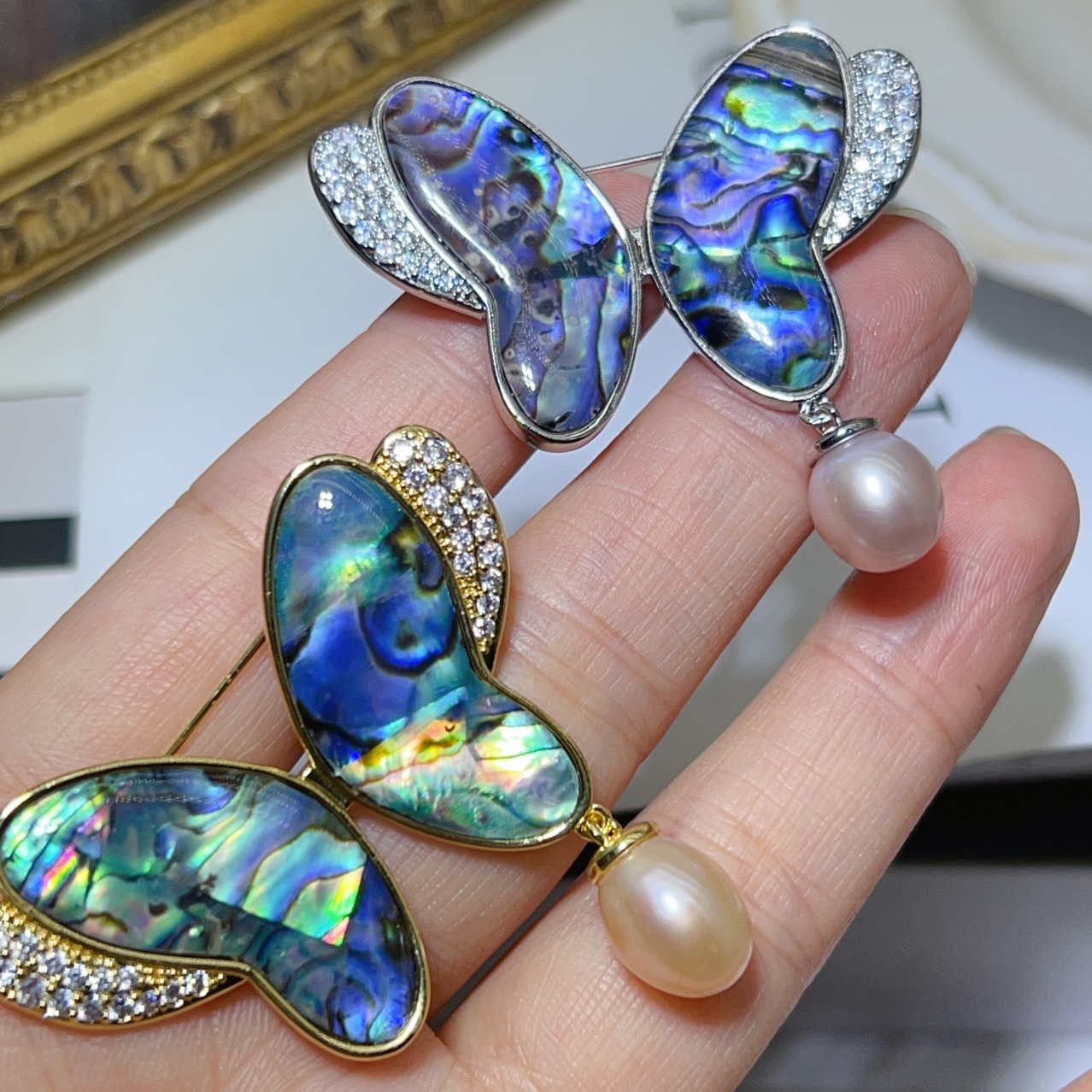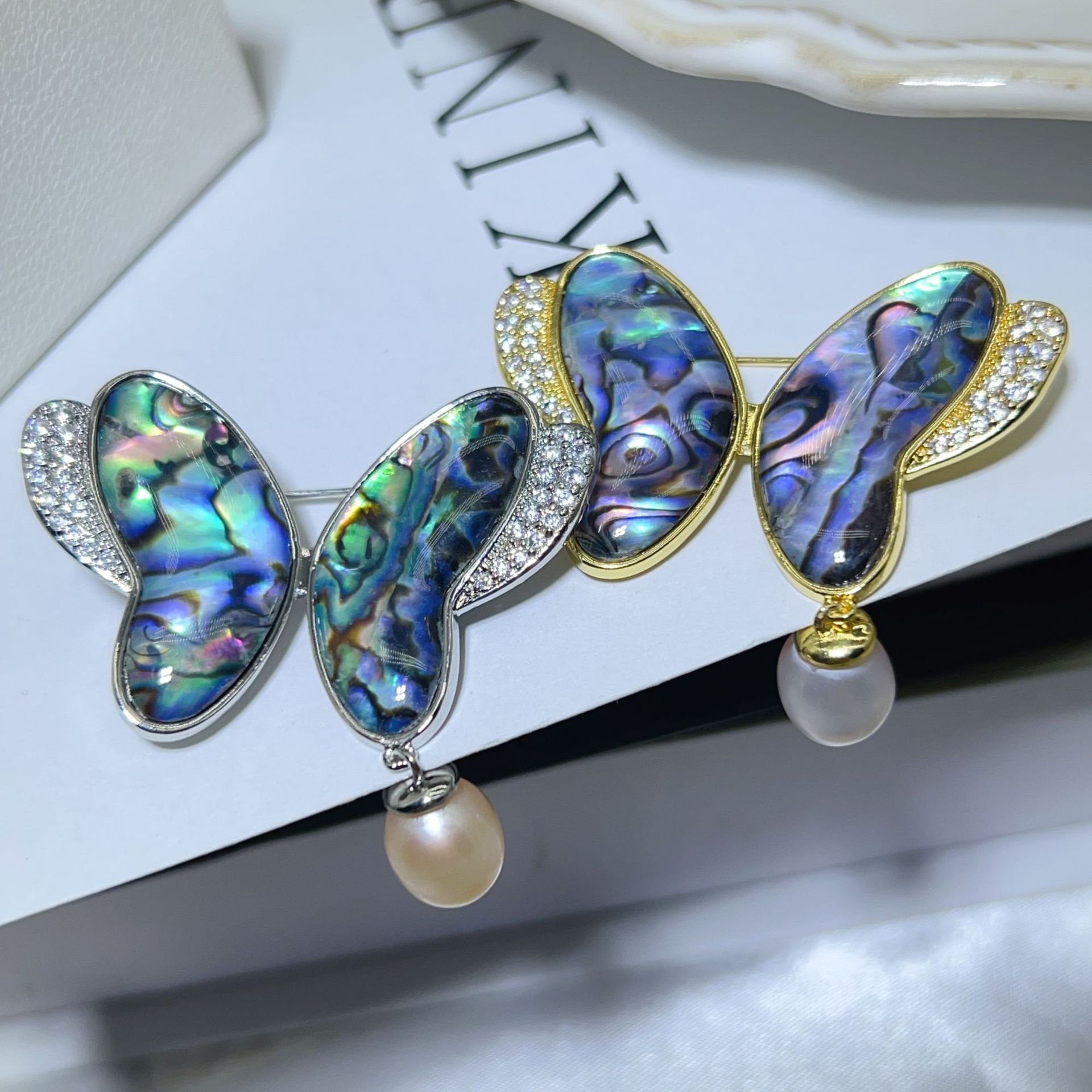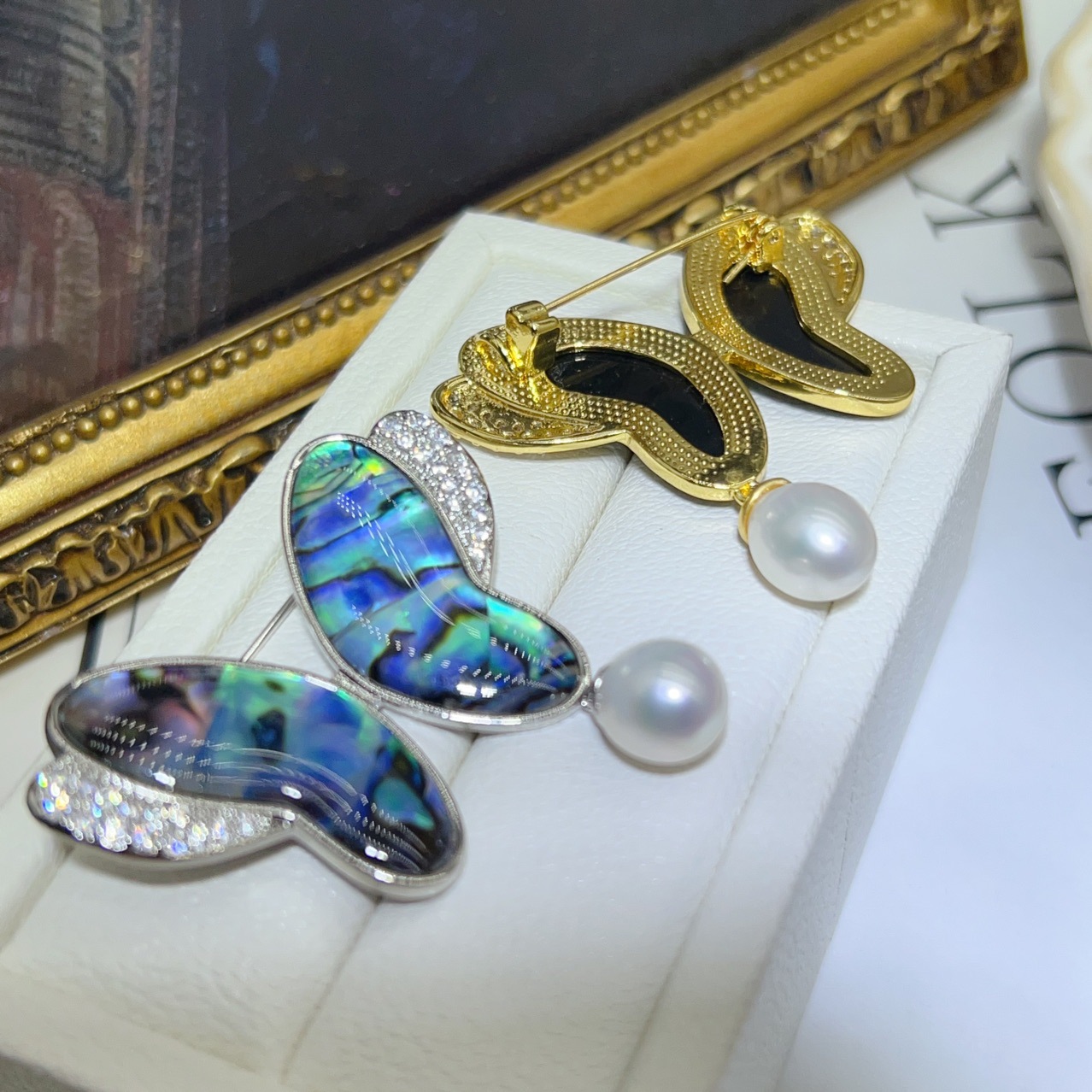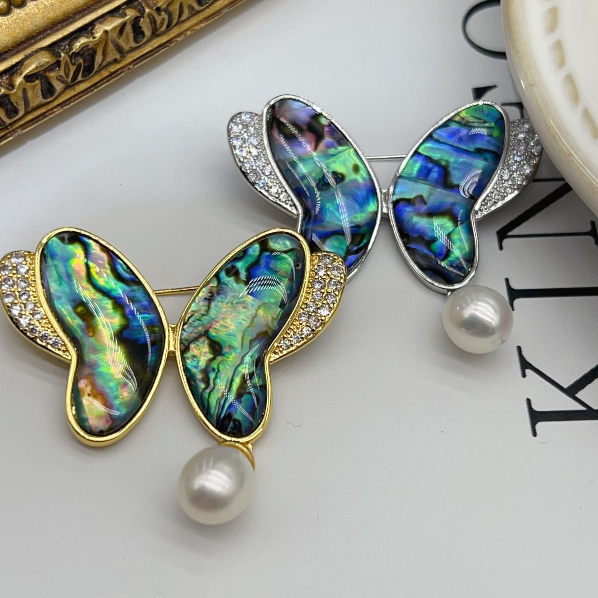 Zhuji пресноводные жемчужные корсамы натуральные рисовые зерна жемчужные броши 18-каратного золота инкрустированные натуральные раковины бабочки булавки