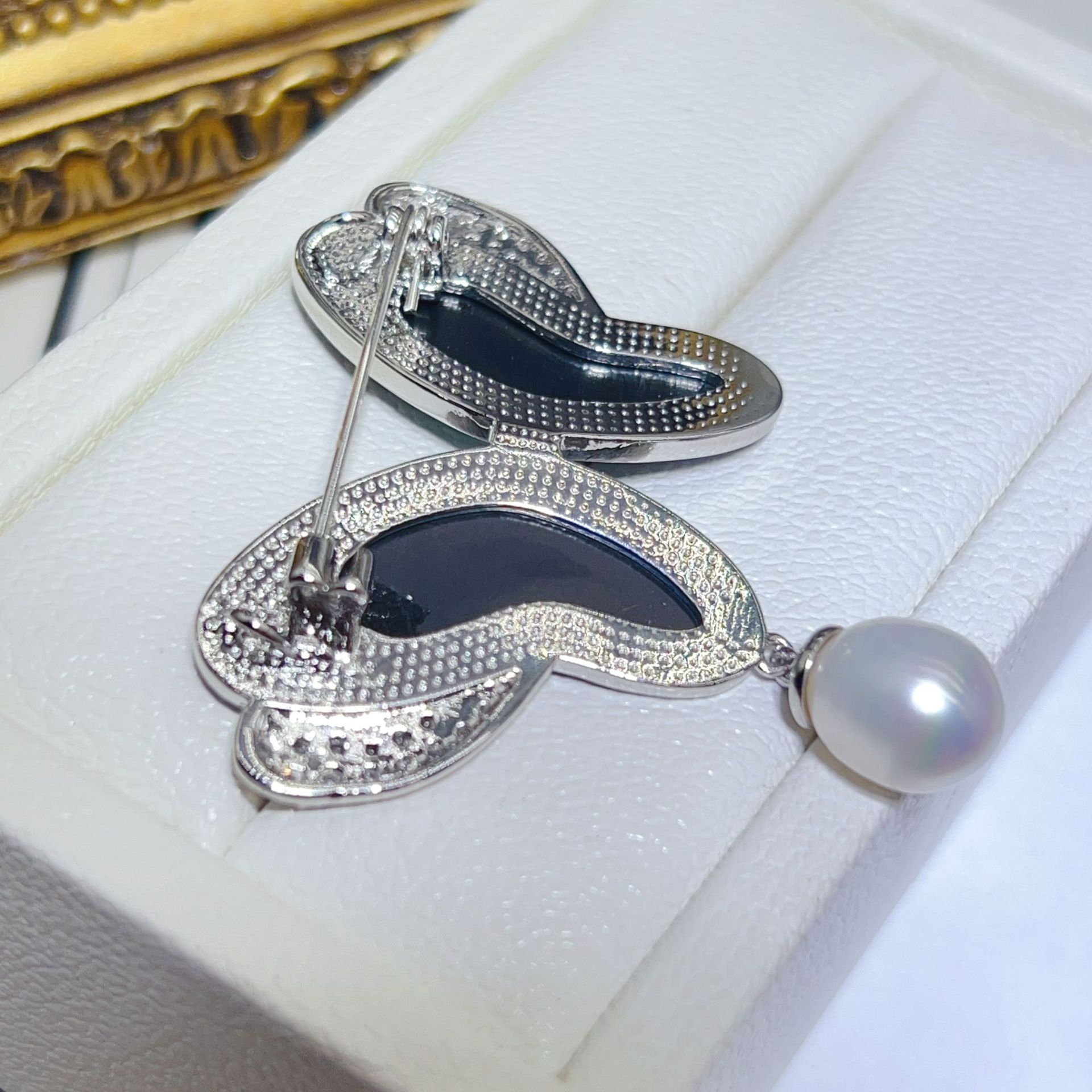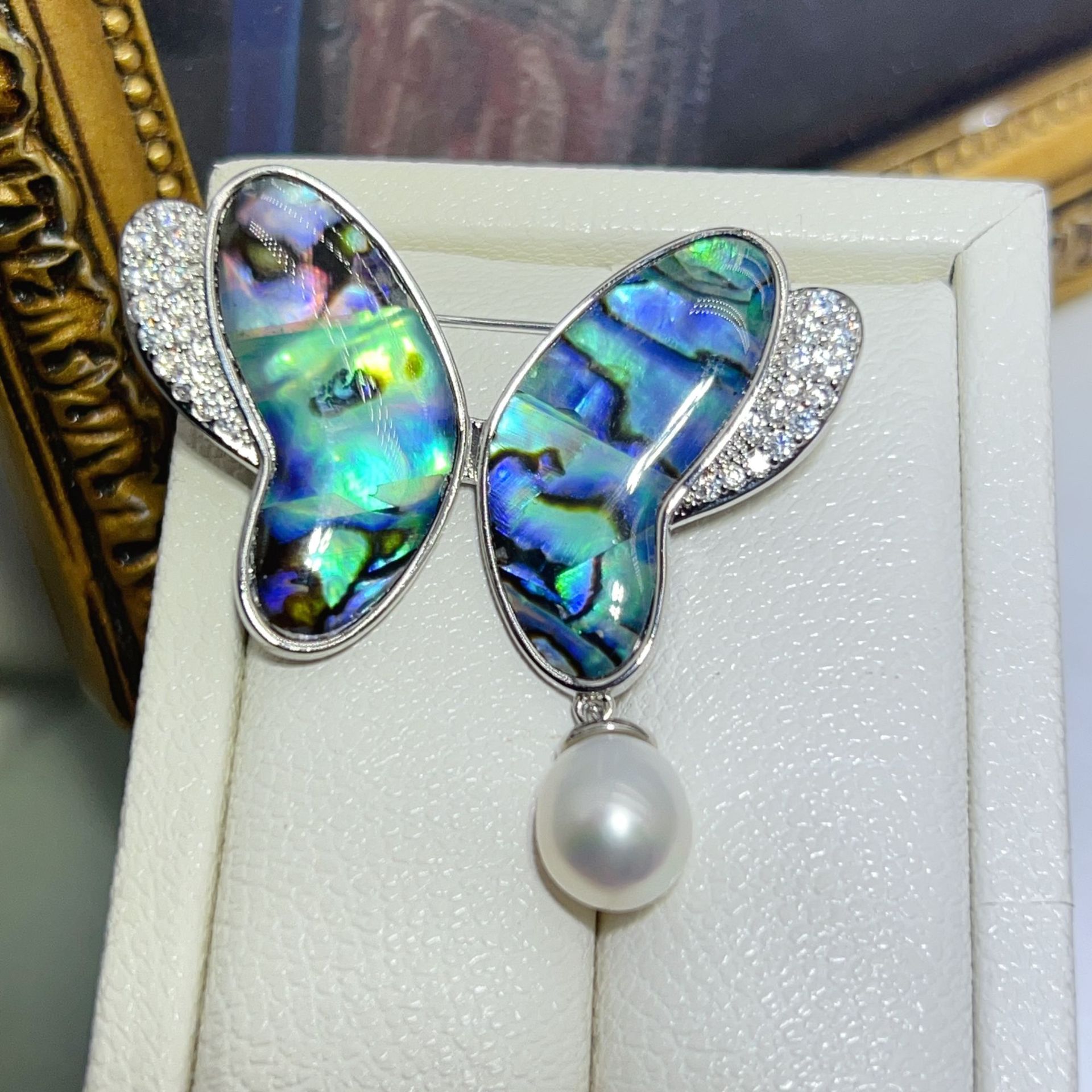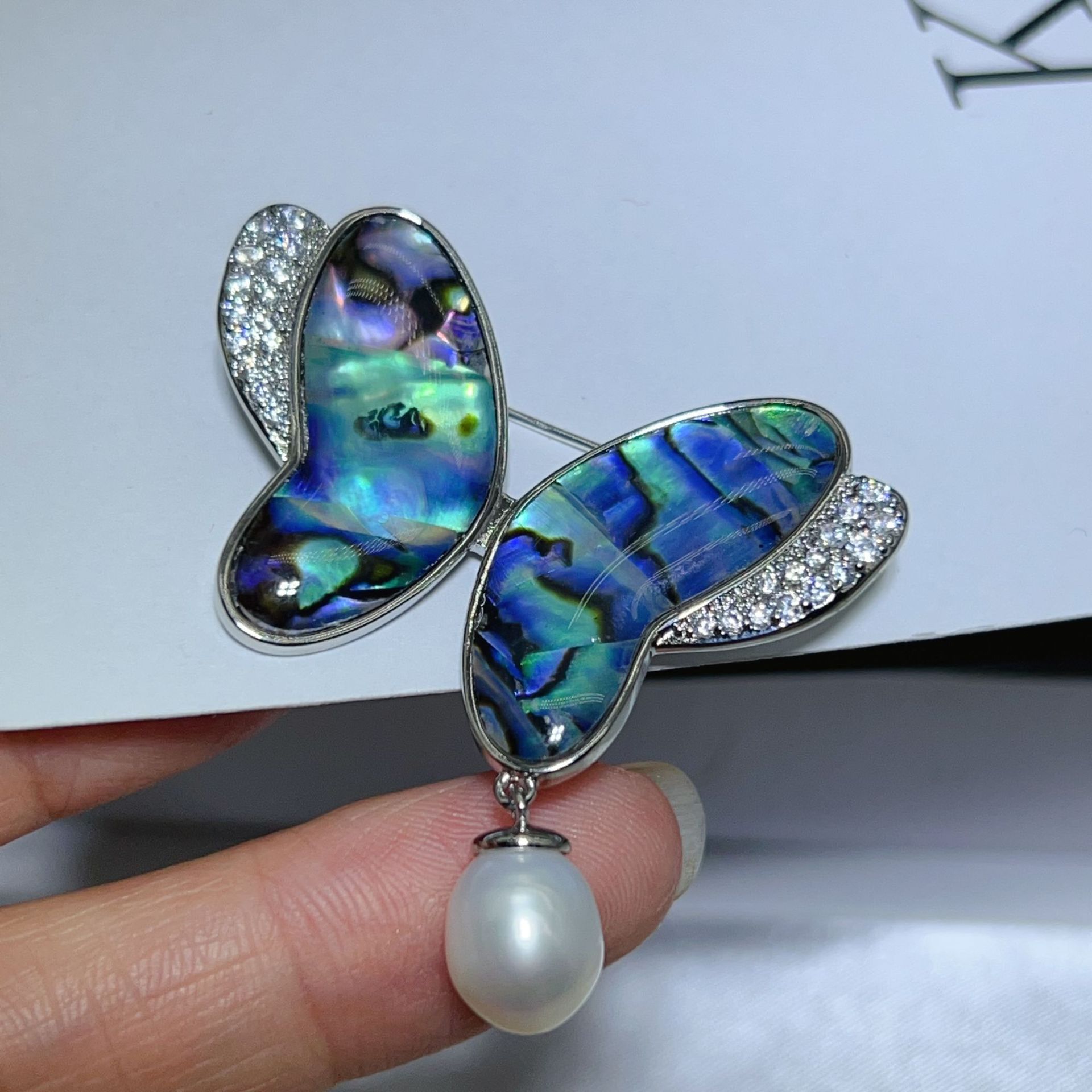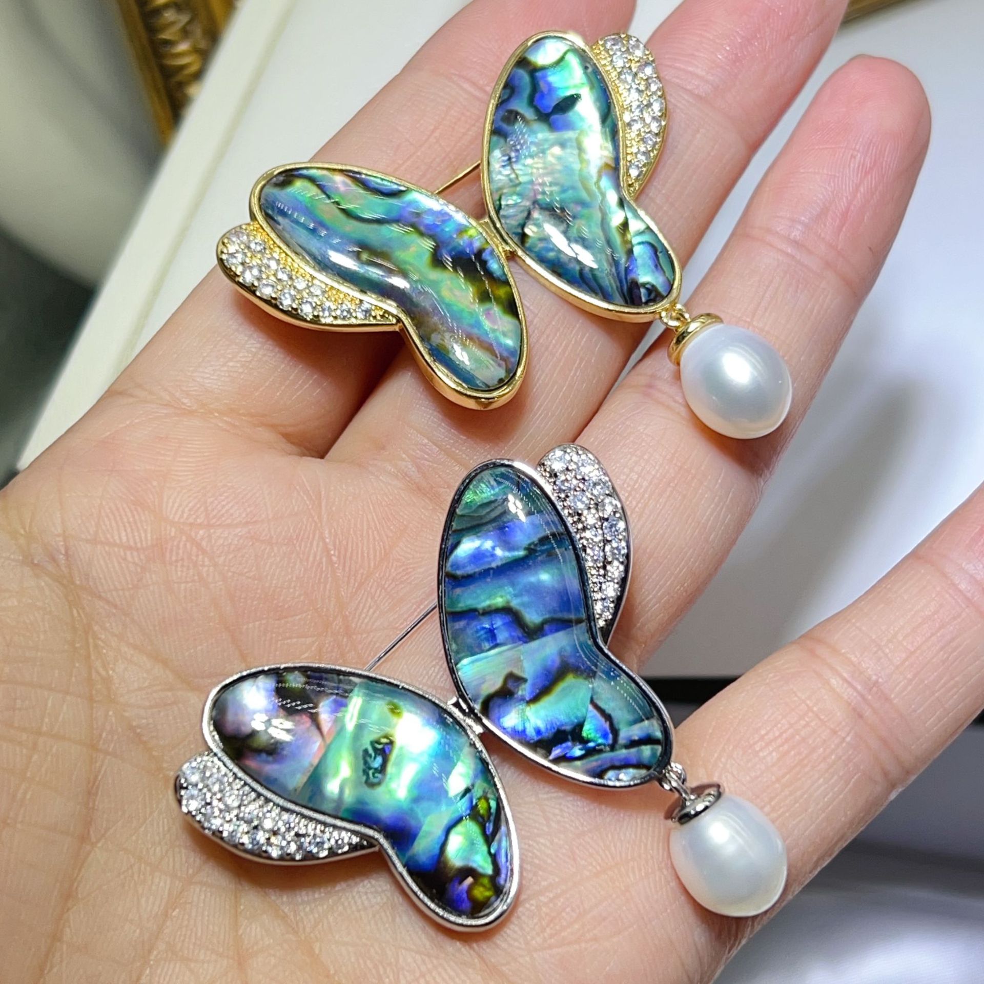 Zhuji пресноводные жемчужные корсамы натуральные рисовые зерна жемчужные броши 18-каратного золота инкрустированные натуральные раковины бабочки булавки
