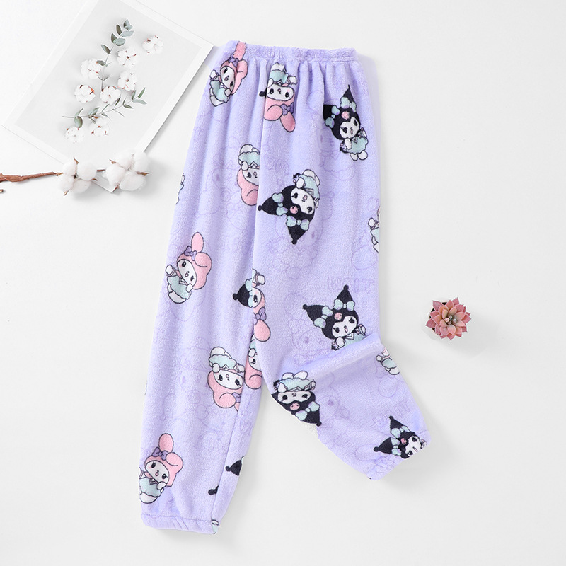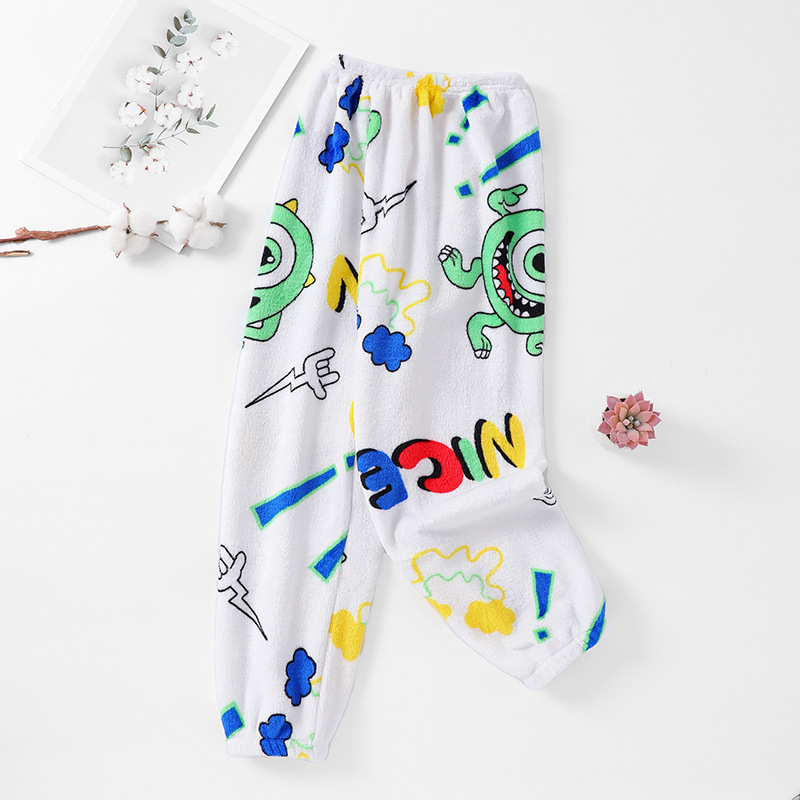 Детские пижамы Коралловый бархат плюс бархат осенние зимние девочки домашние пижамы брюки большие дети фланелевые брюки для мальчиков
