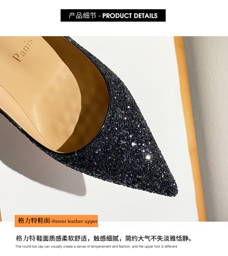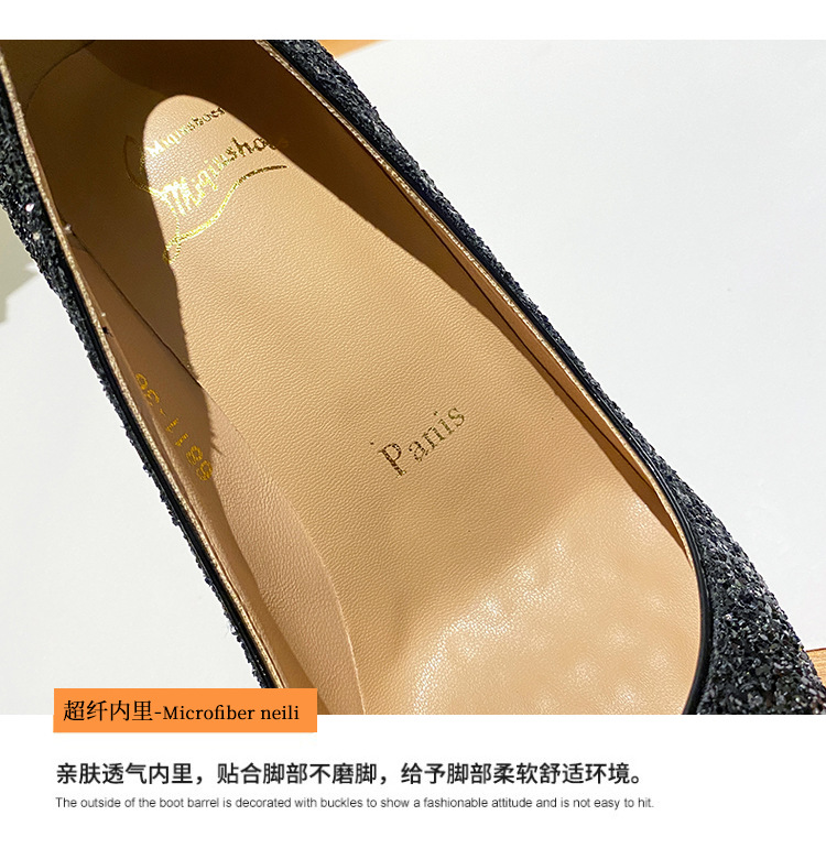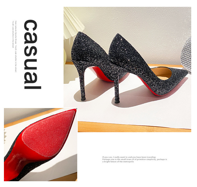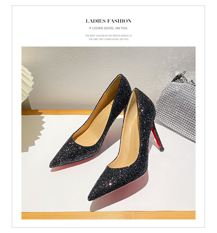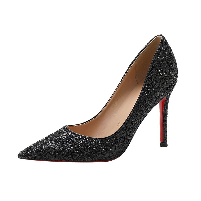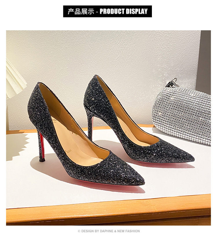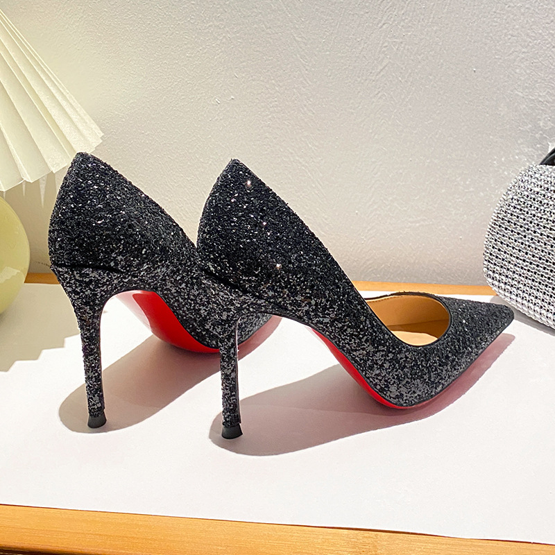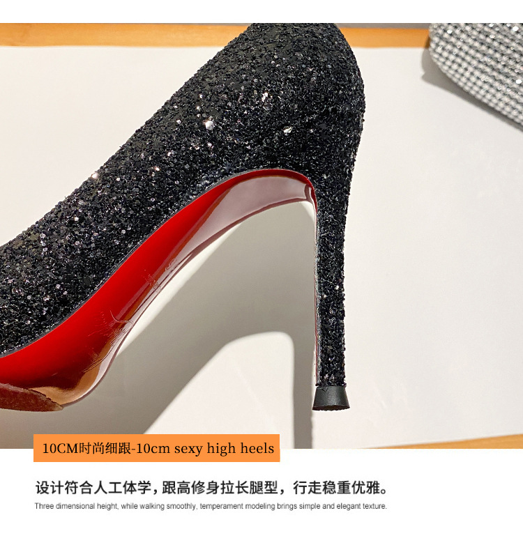 Черные женские туфли на высоком каблуке с красной подошвой, на тонком каблуке, новинка весеннего сезона 2026 года, свадебные туфли с пайетками и кристаллами, с острым носком, профессиональные элегантные туфли.