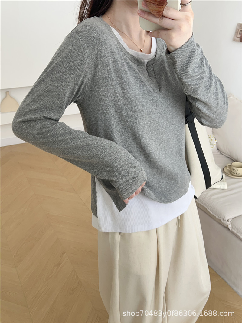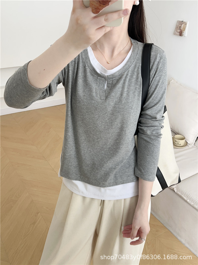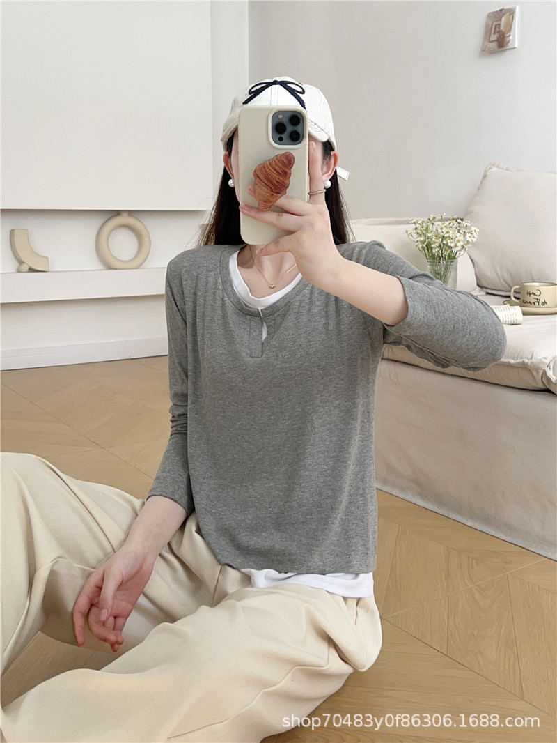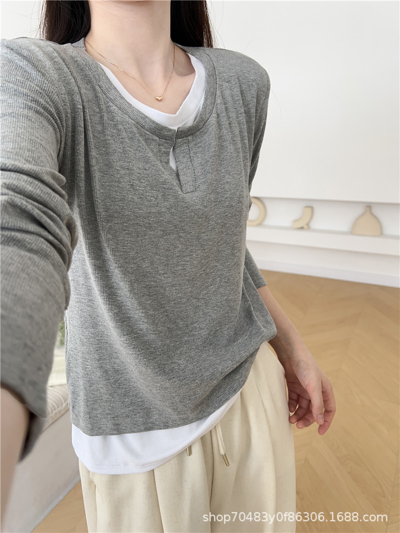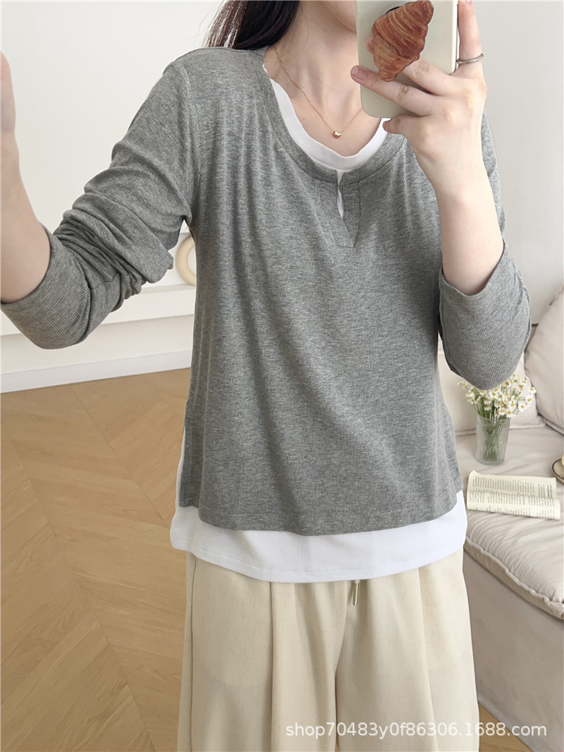 Новый поддельный 2 шт. с длинными рукавами для кормления грудью Весенняя и осенняя одежда для кормления грудью 9269