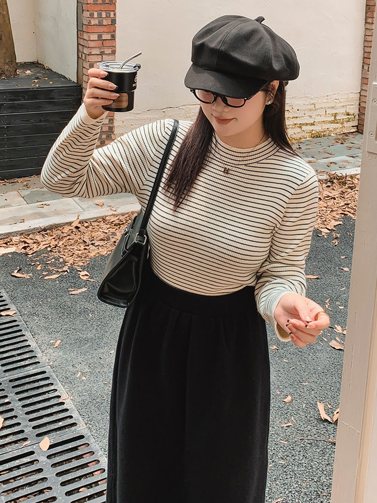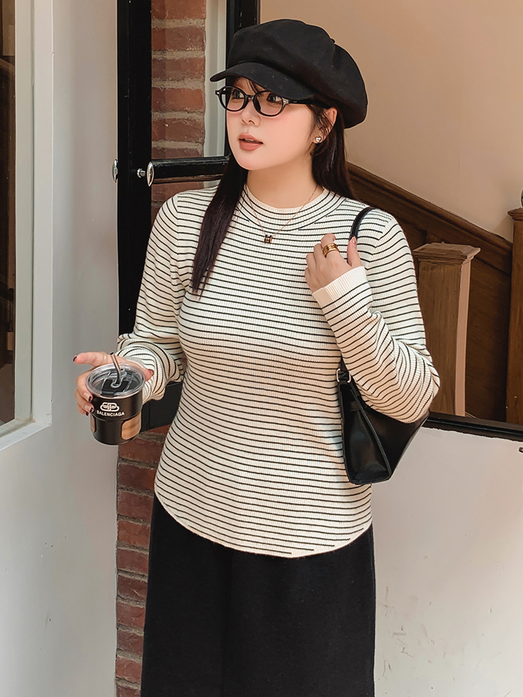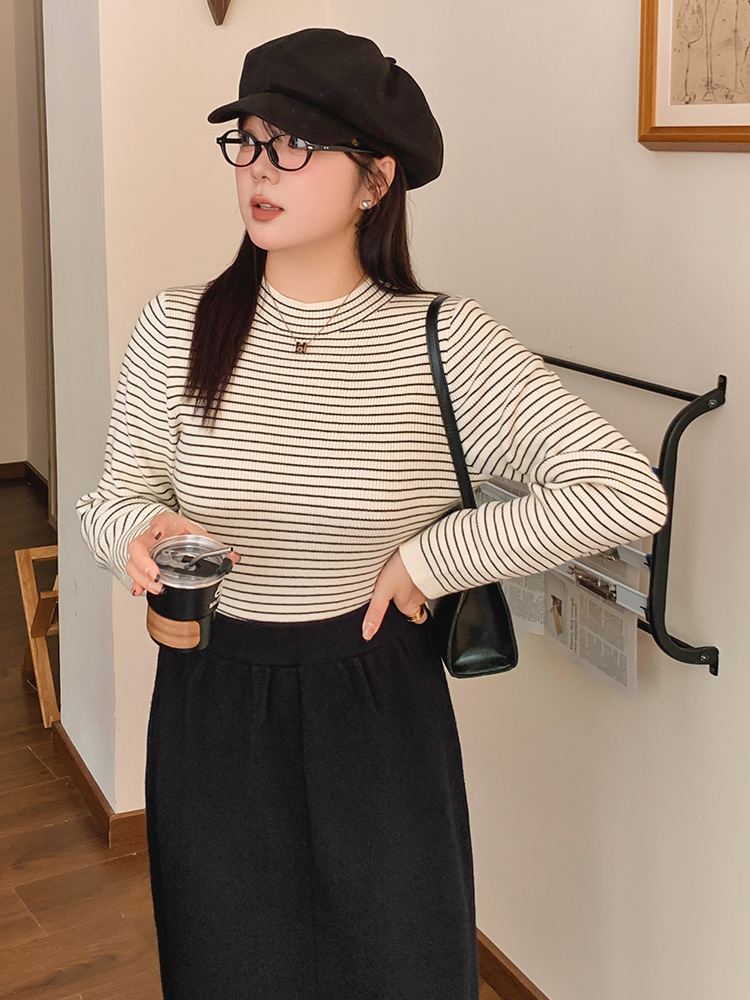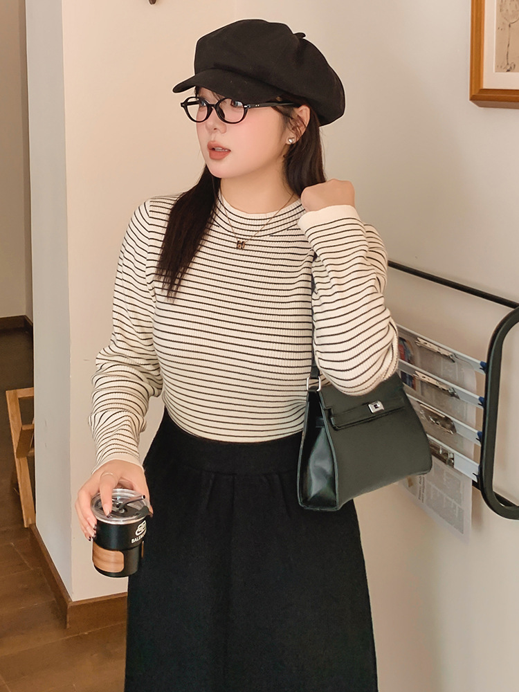 Женская полуводолазка больших размеров, топ в полоску, зима 2022, толстый внутренний трикотаж, женский трикотаж 22500
