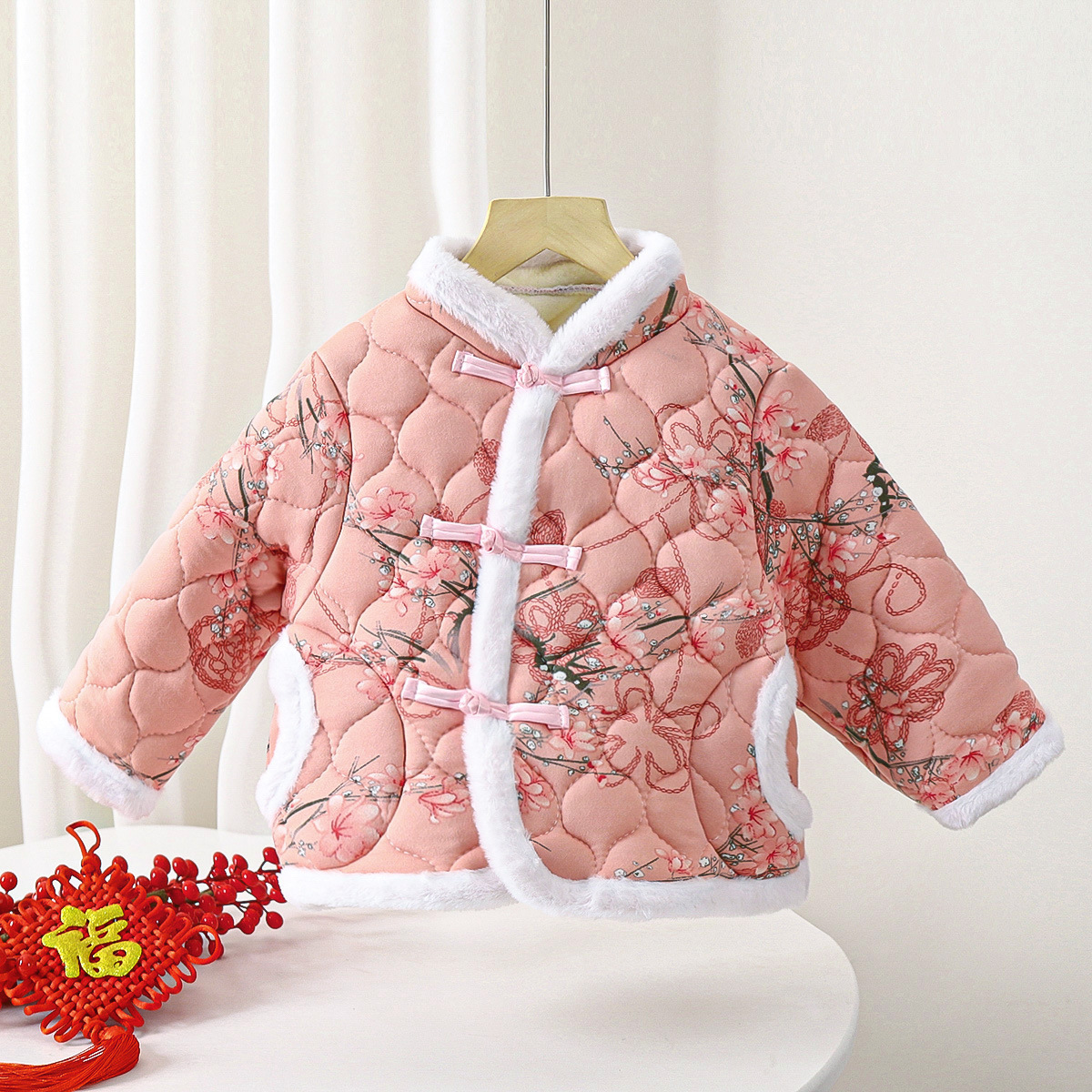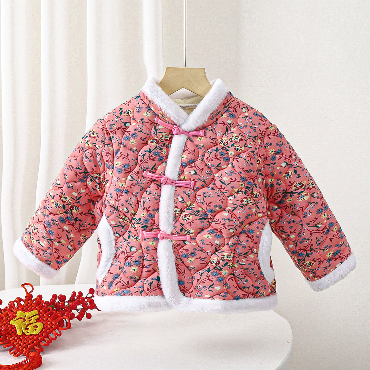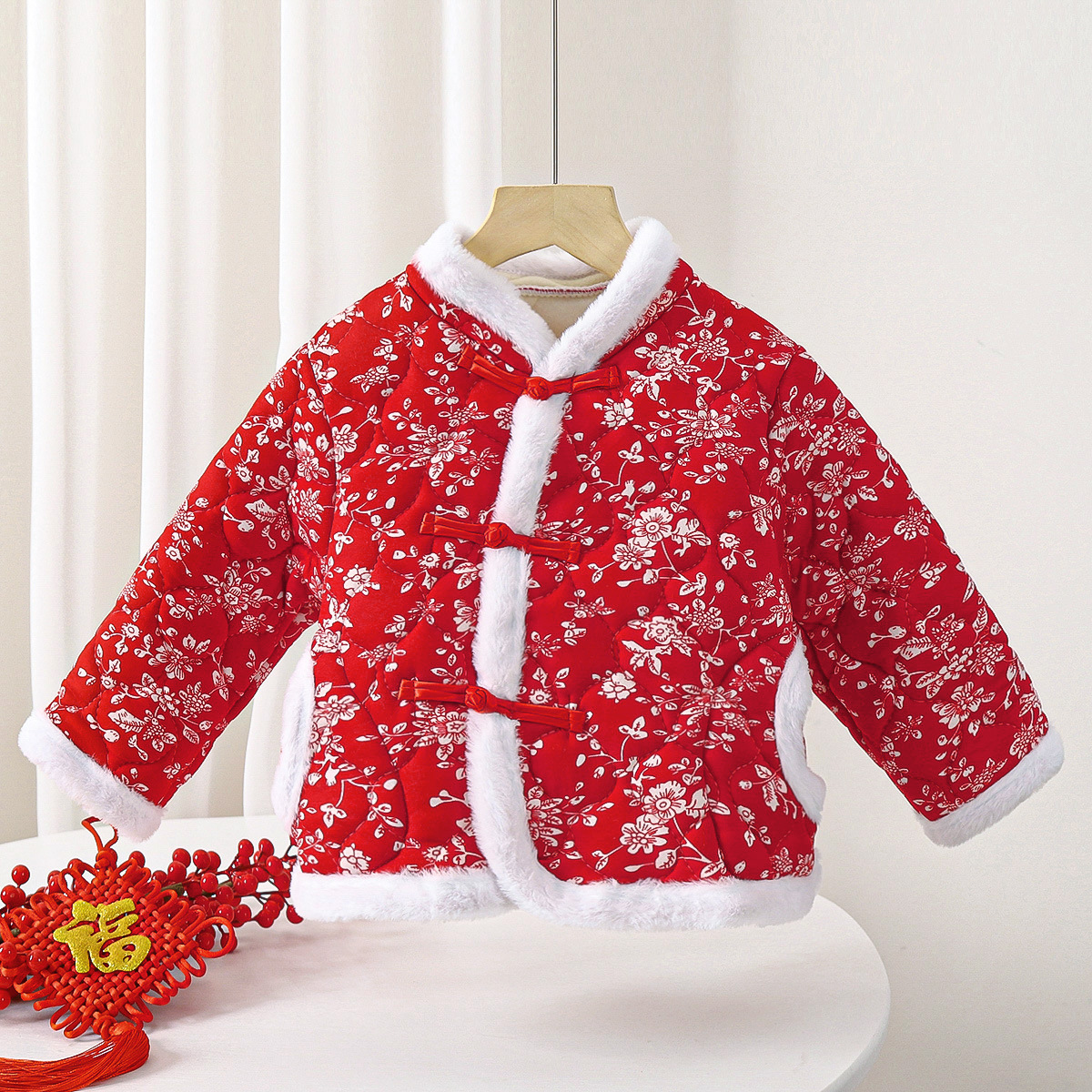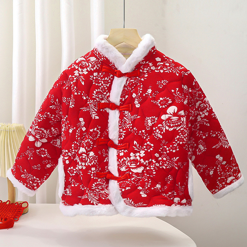 Красная хлопчатобумажная куртка Северо-восточный цветок хлопчатобумажная куртка