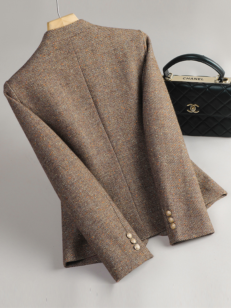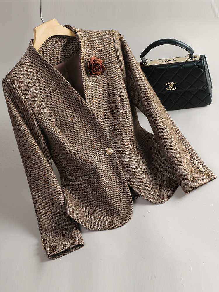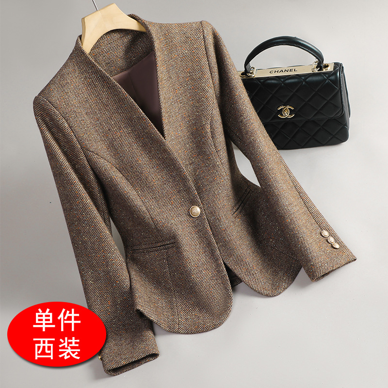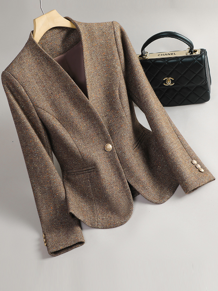 Элегантный коричневый шерстяной блейзер для женщин, весна-осень 2026, приталенный крой, для миниатюрных фигур, однобортный женский костюм.