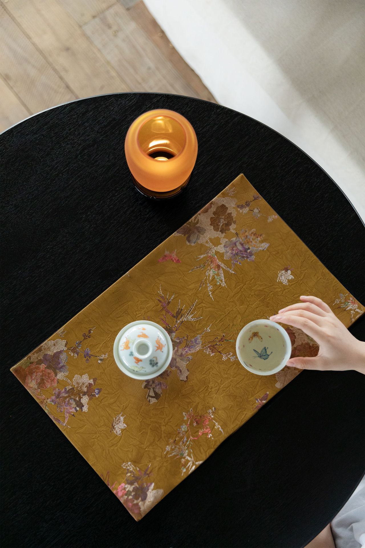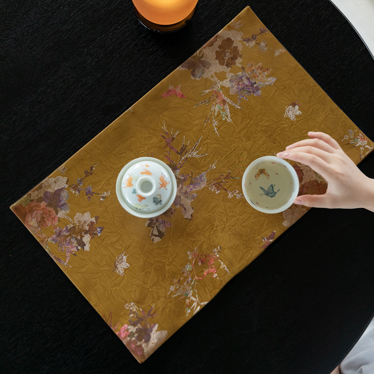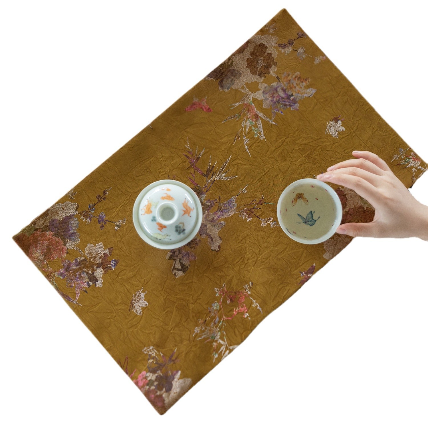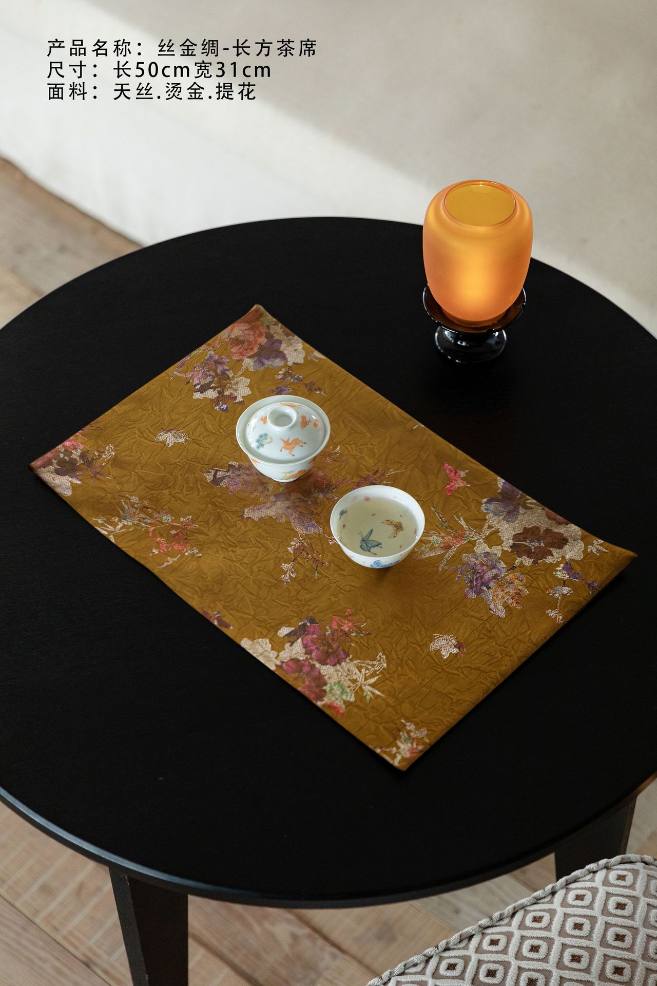 Шелковый золотой шелково-прямоугольный чайный коврик