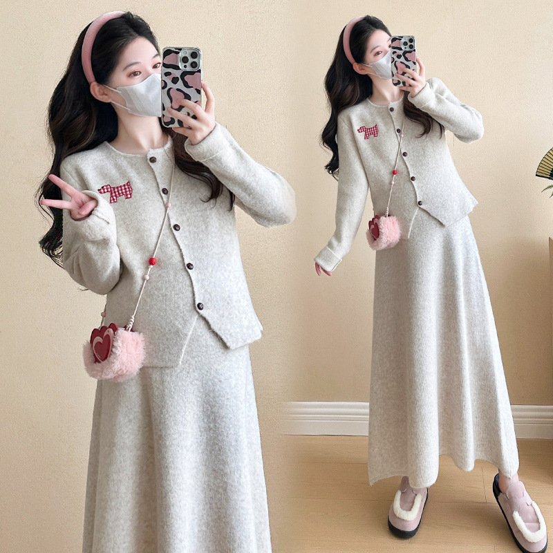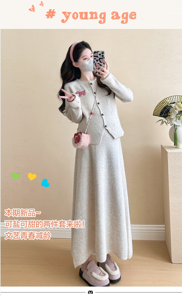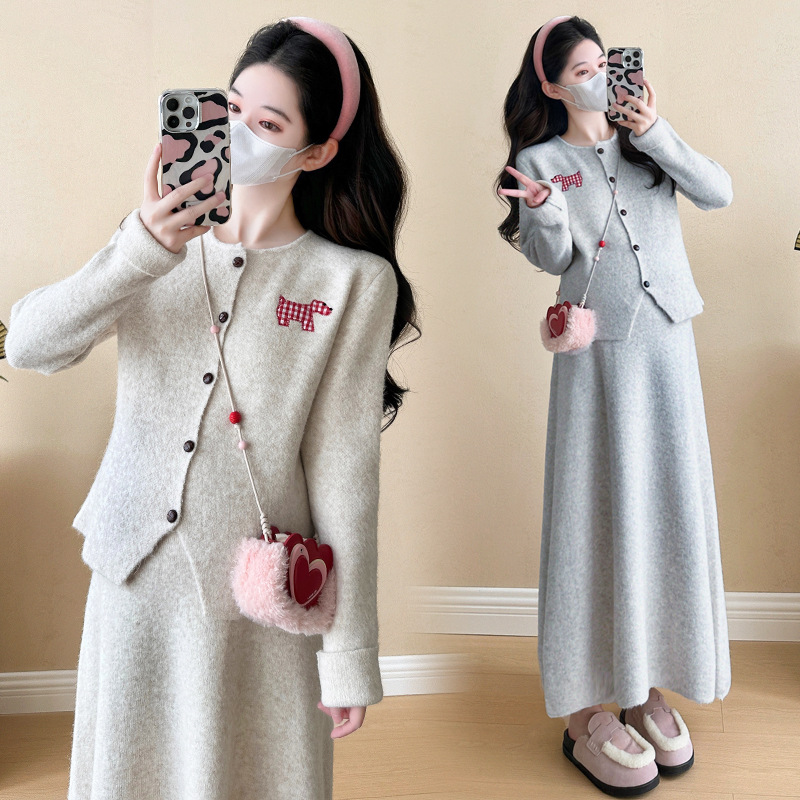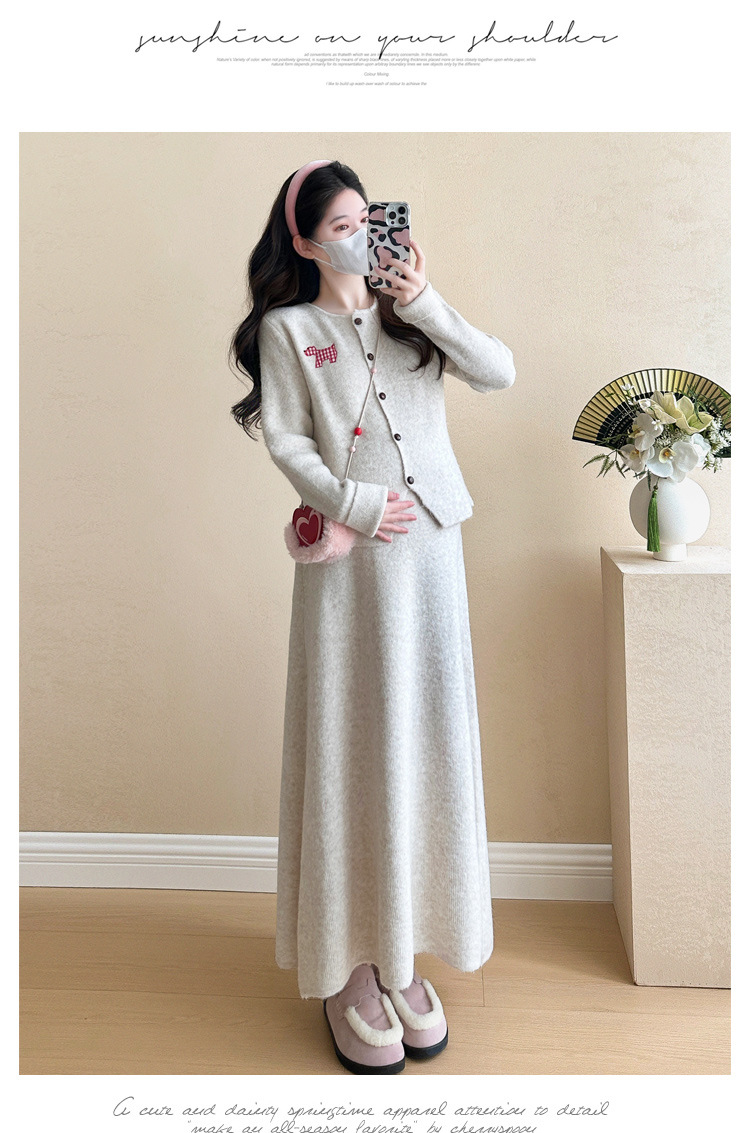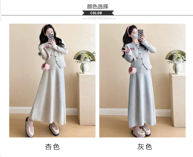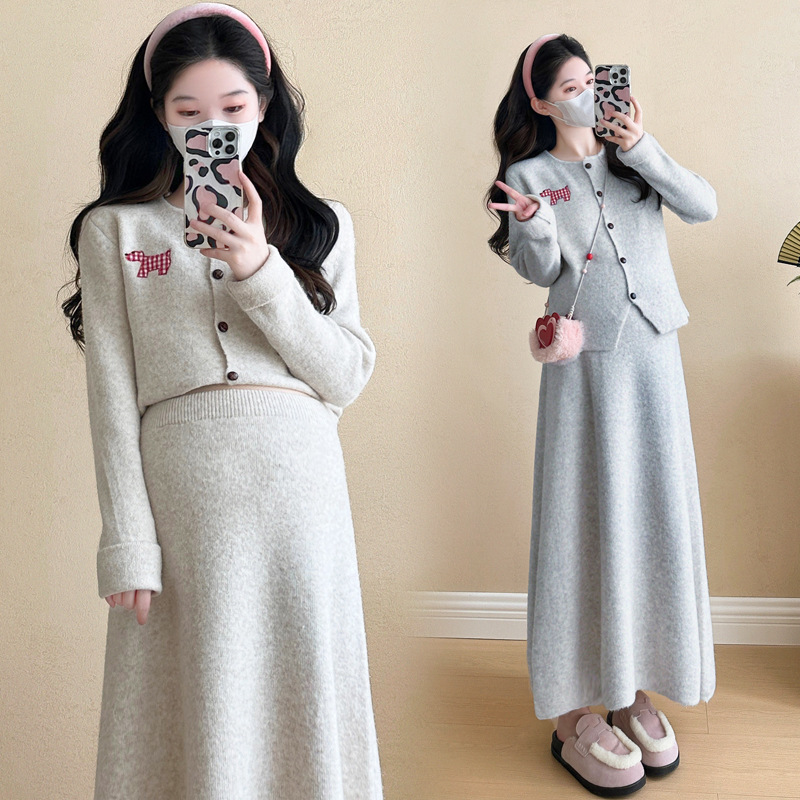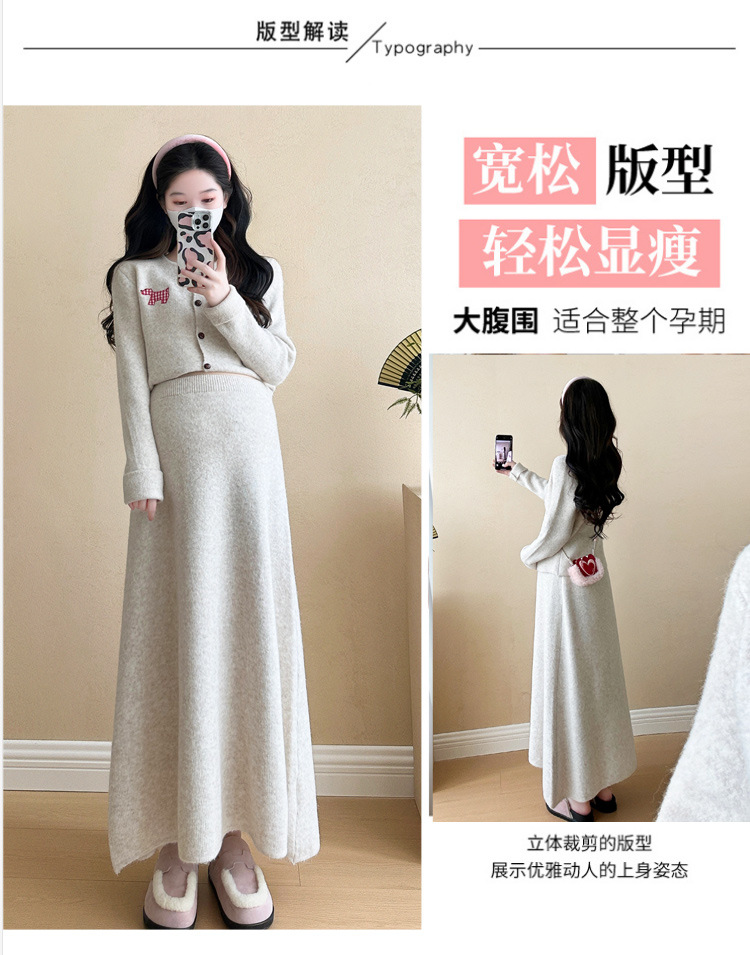 Осень и зима для беременных 2024 новый модный свитер куртка топ маленькая юбка бюст набор из двух частей весна и осень