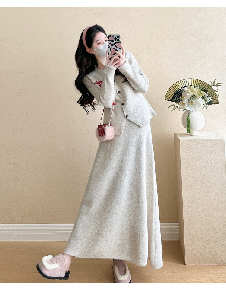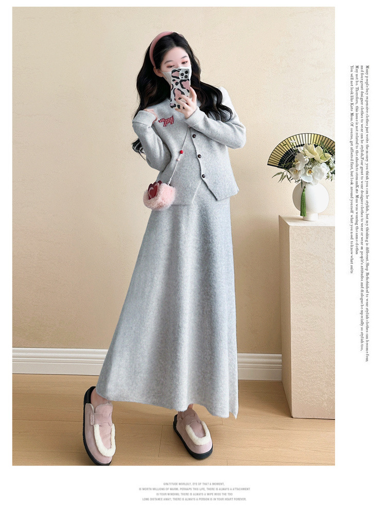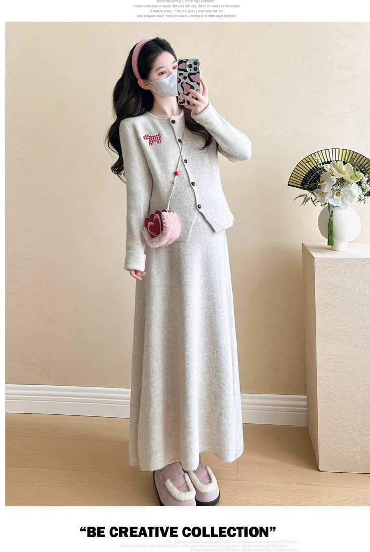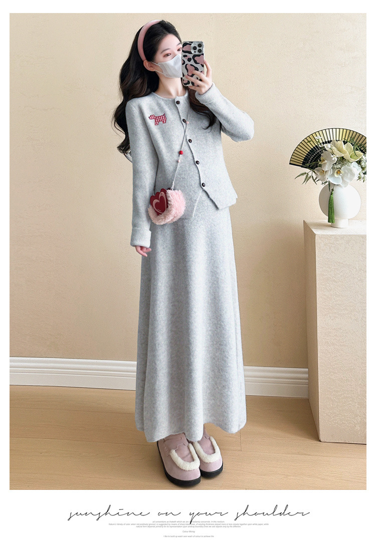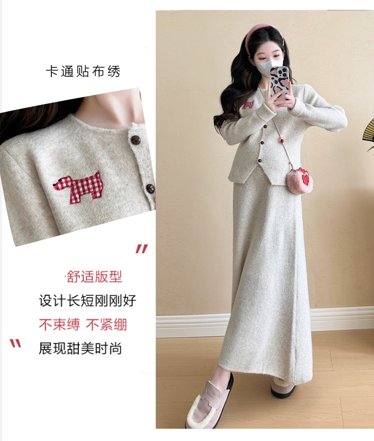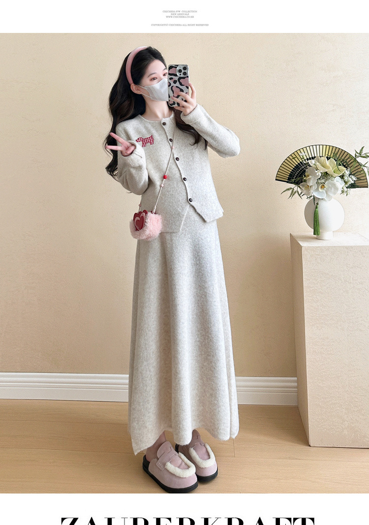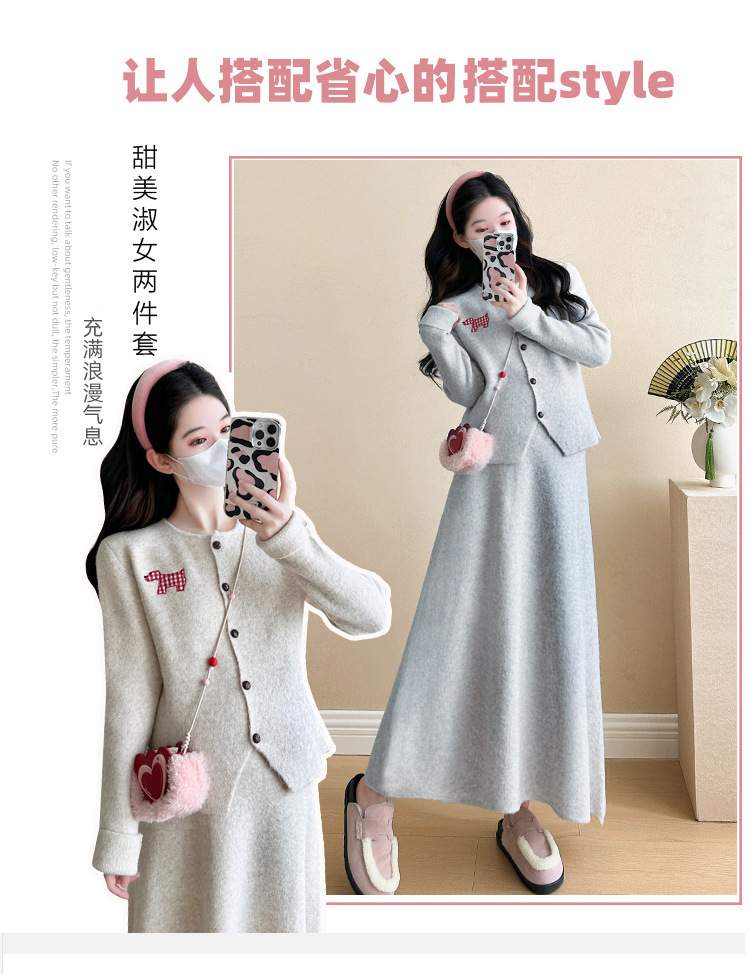Осень и зима для беременных 2024 новый модный свитер куртка топ маленькая юбка бюст набор из двух частей весна и осень