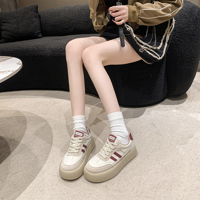 Маленькие белые туфли женский 2024 весна новая круглая голова шнуровка толстая подошва спортивная мода дикая повседневная обувь на мягкой подошве спорт