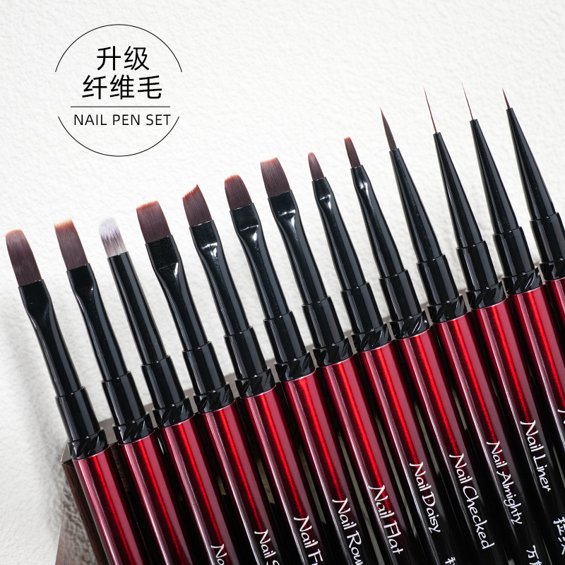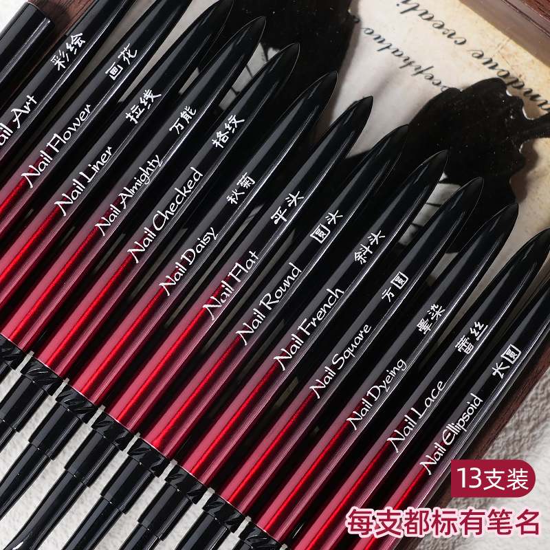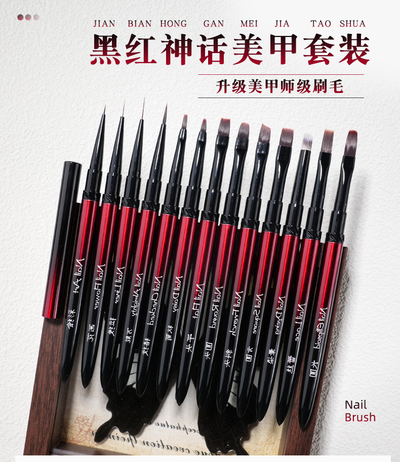 JZC211#Черно-красные медные детали с мифической гравировкой, набор ручек для дизайна ногтей из 13 предметов