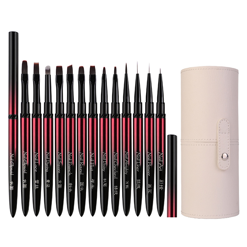 Набор кистей для дизайна ногтей, полный комплект: кисти для линейного рисования, ручки для рисования, функциональные ручки, ручки для градиентного дизайна, ручки для фототерапии с рисунками цветов и кругов.