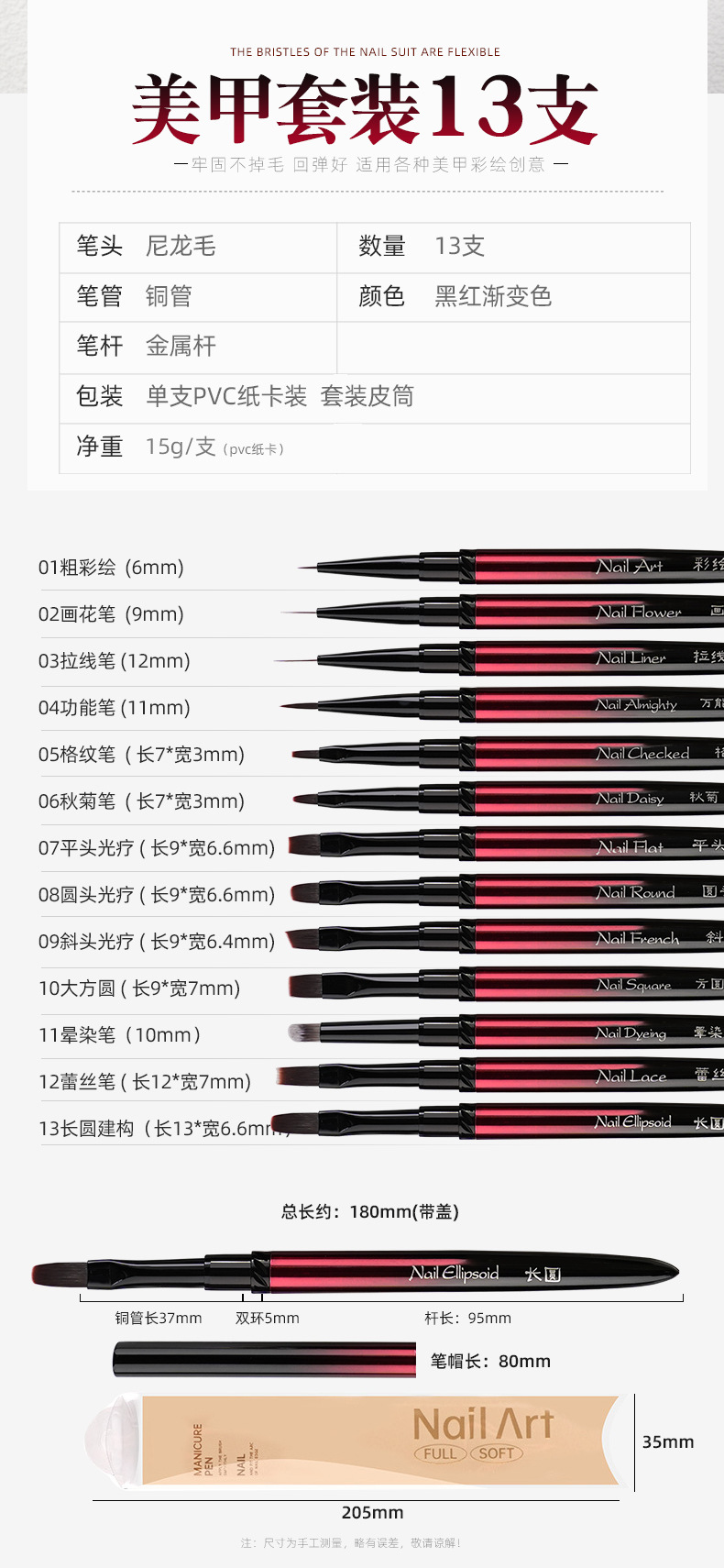 01 Окрашенная ручка; 02 ручка для цветочной живописи; 03 ручка для рисования; 04 функциональная ручка; 05 плед ручка; 06 Осенняя ручка из хризантемы; 07 фототерапия с плоской головкой; 08 фототерапия с круглой головкой; 09 Ручка для фототерапии с наклонной головкой; 10-большая квадратная круглая ручка для фототерапии; 11 ручка для размазывания; 12 кружевных ручек; 13 Удлиненная круглая строительная ручка для фототерапии; Комплект из 13 предметов с белой кожаной трубкой.