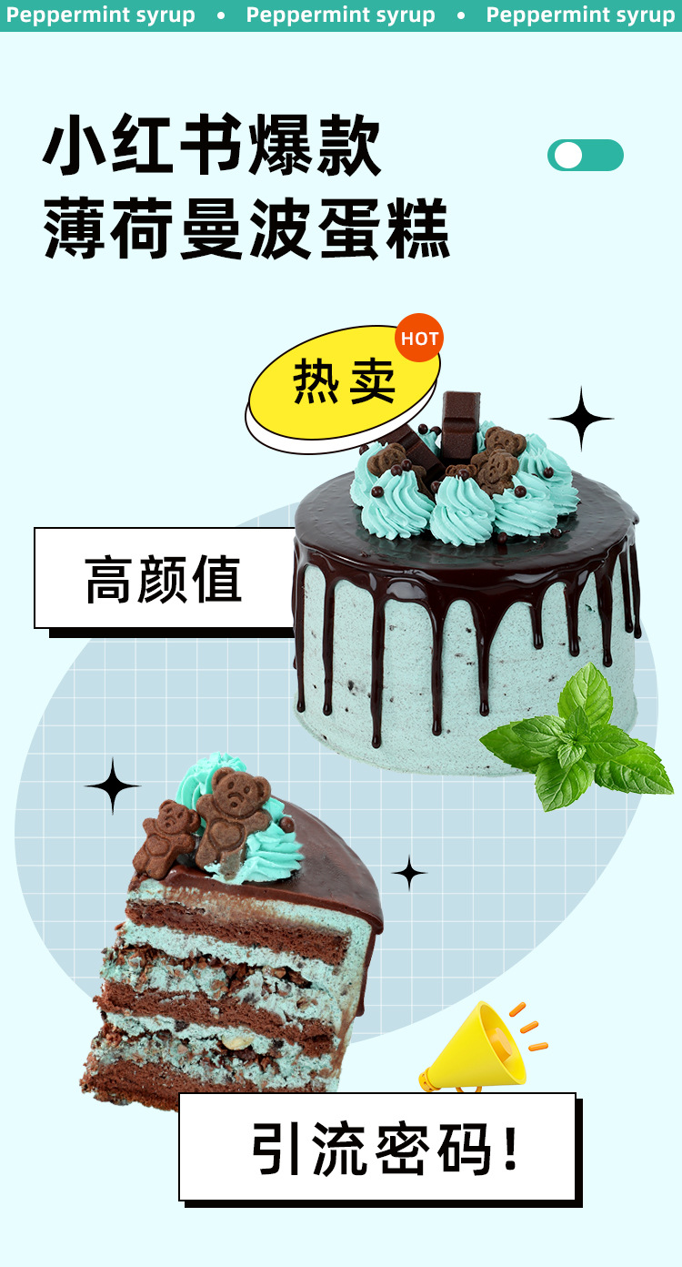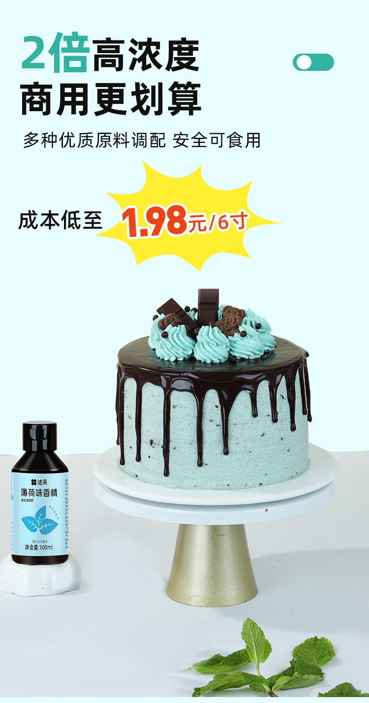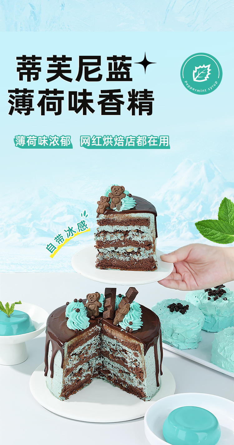 Концентрированный пищевой ароматизатор мятный, коммерческий, в маленькой бутылочке, для выпечки, синий.