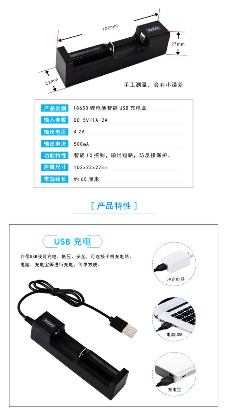 Литиевая батарея зарядное устройство USB зарядное устройство 4.2V универсальное зарядное устройство 26650 14500 18650