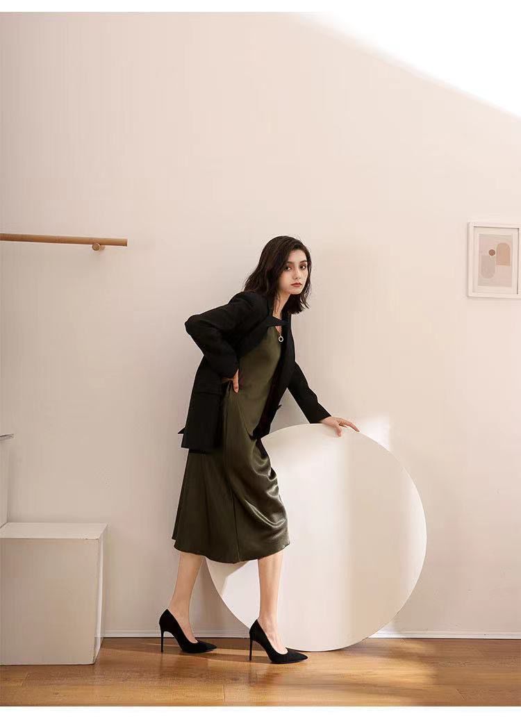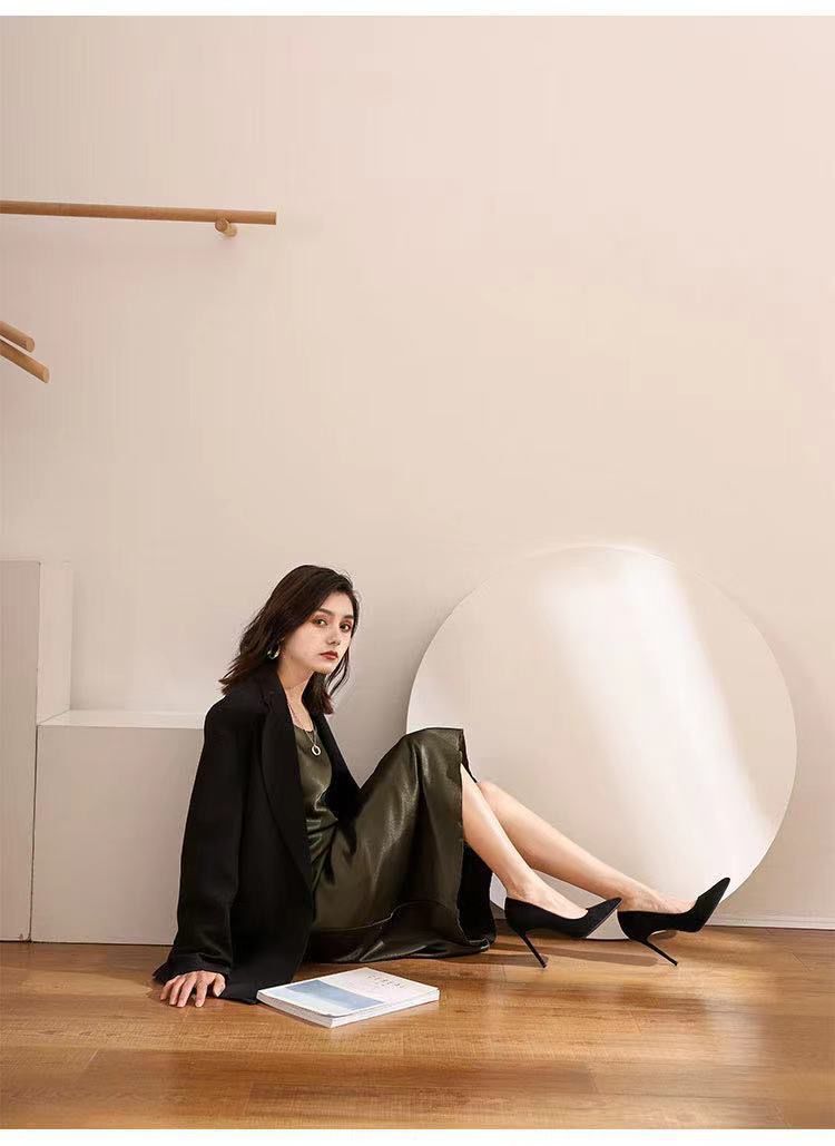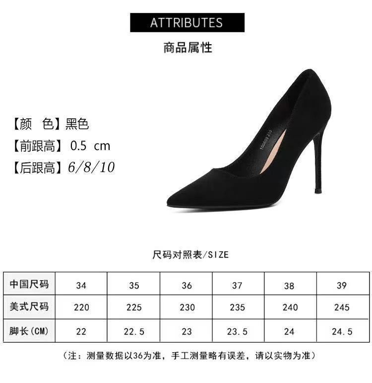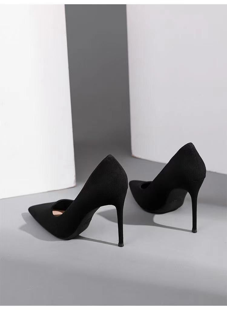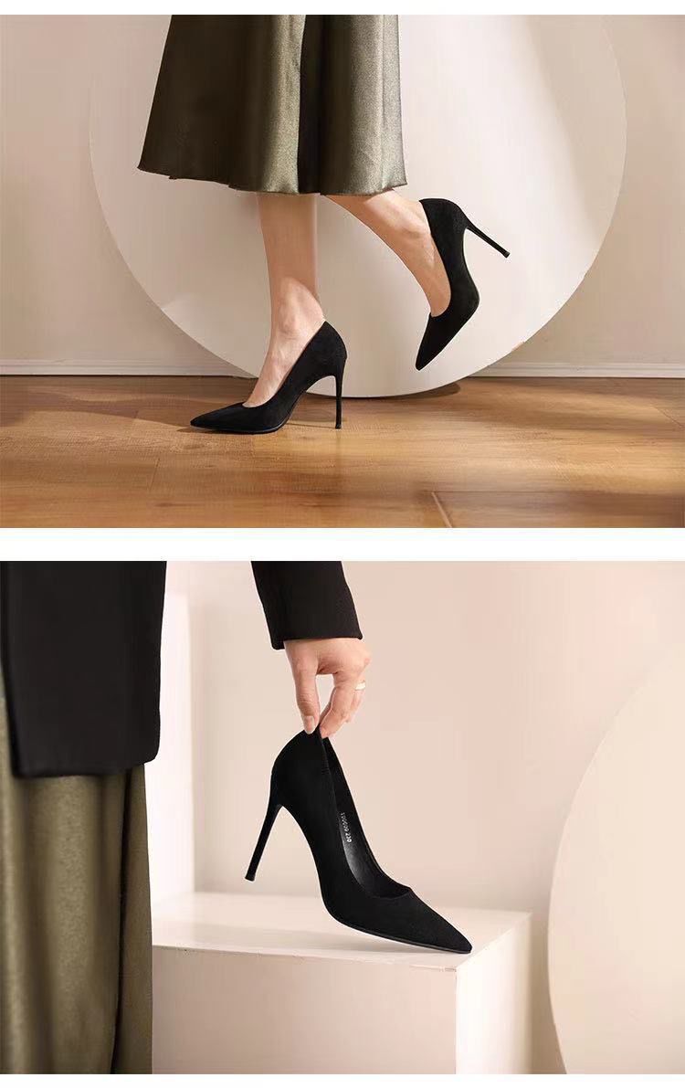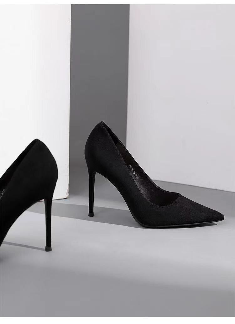 Туфли на высоком каблуке женщины 2024 весна и осень новый черный каблук с острыми наконечными светлыми замшевая профессиональная обувь для внешней торговли обувь этикета большого размера