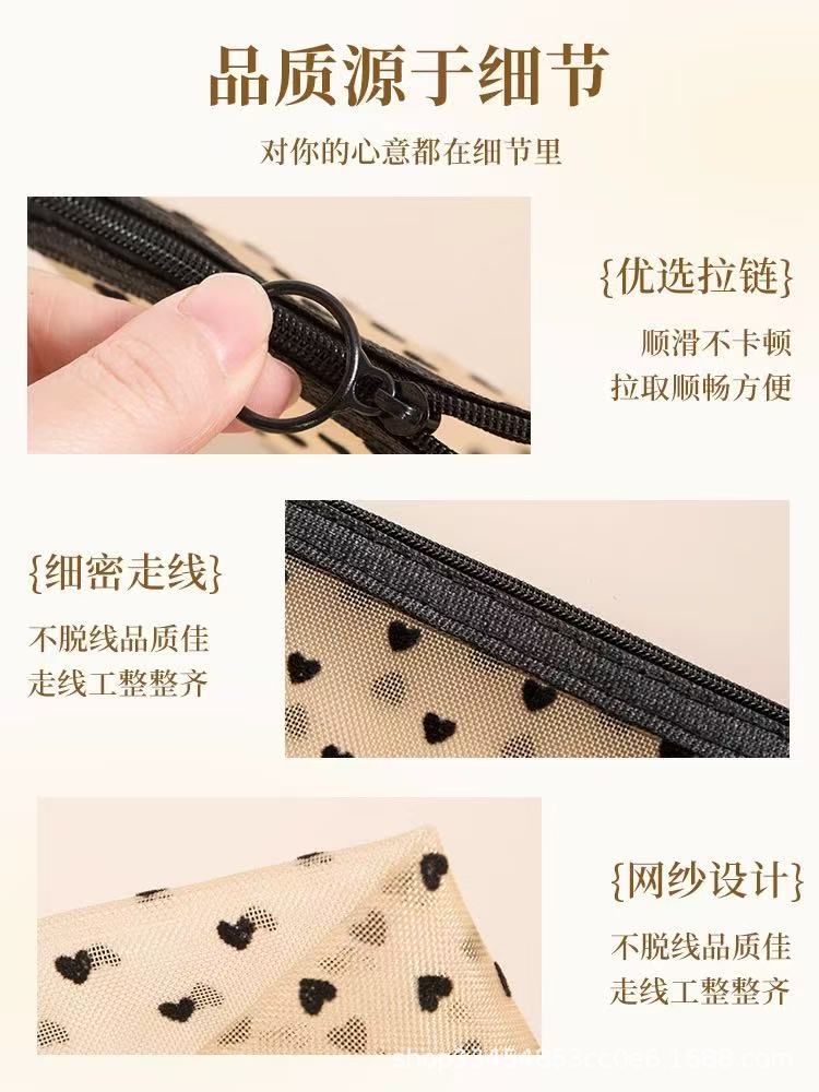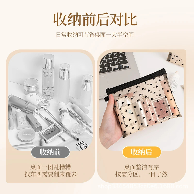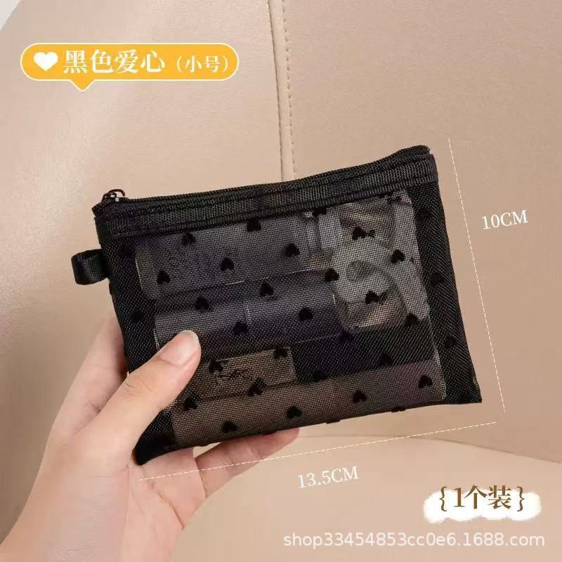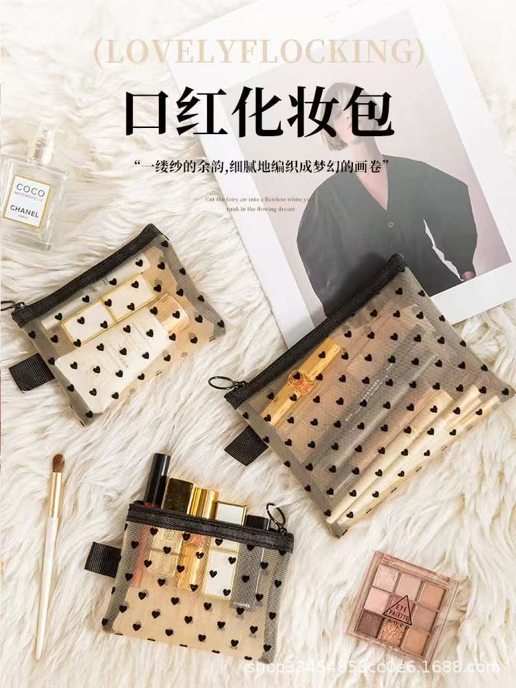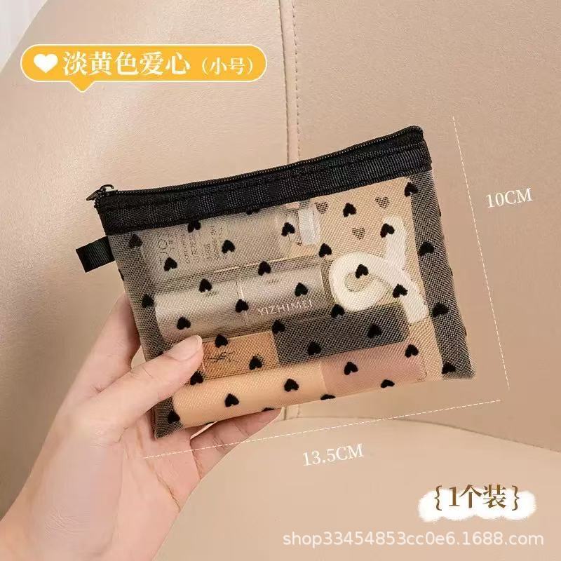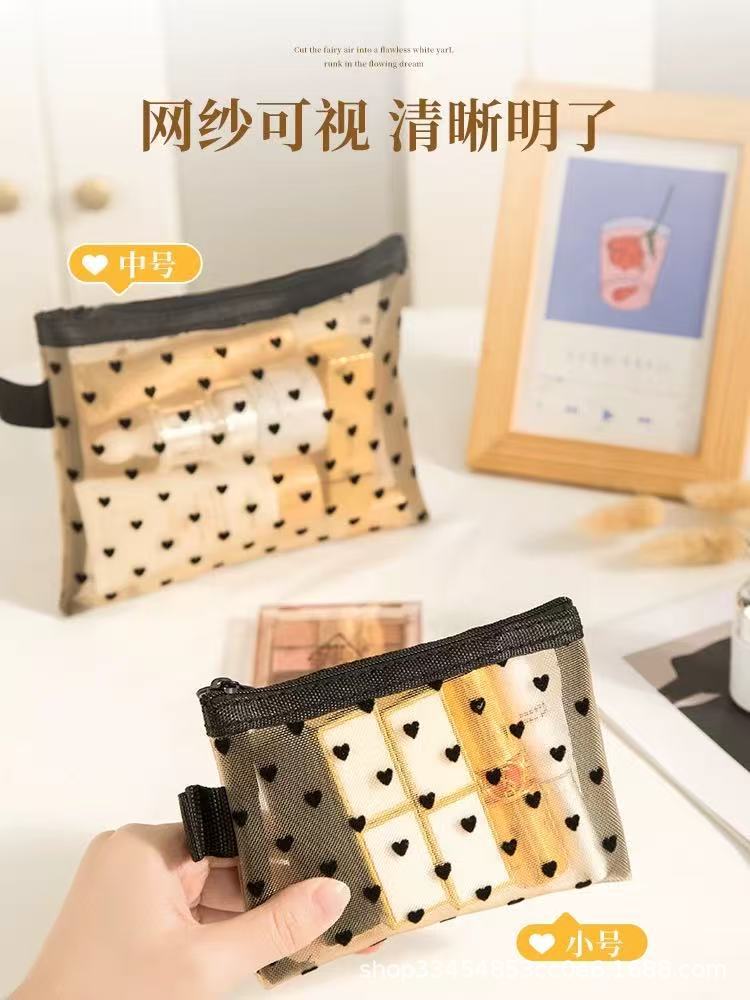 Сетчатая косметическая сумка в форме сердца 2024 новая портативная помада макияж для путешествий большая емкость мини-сумка