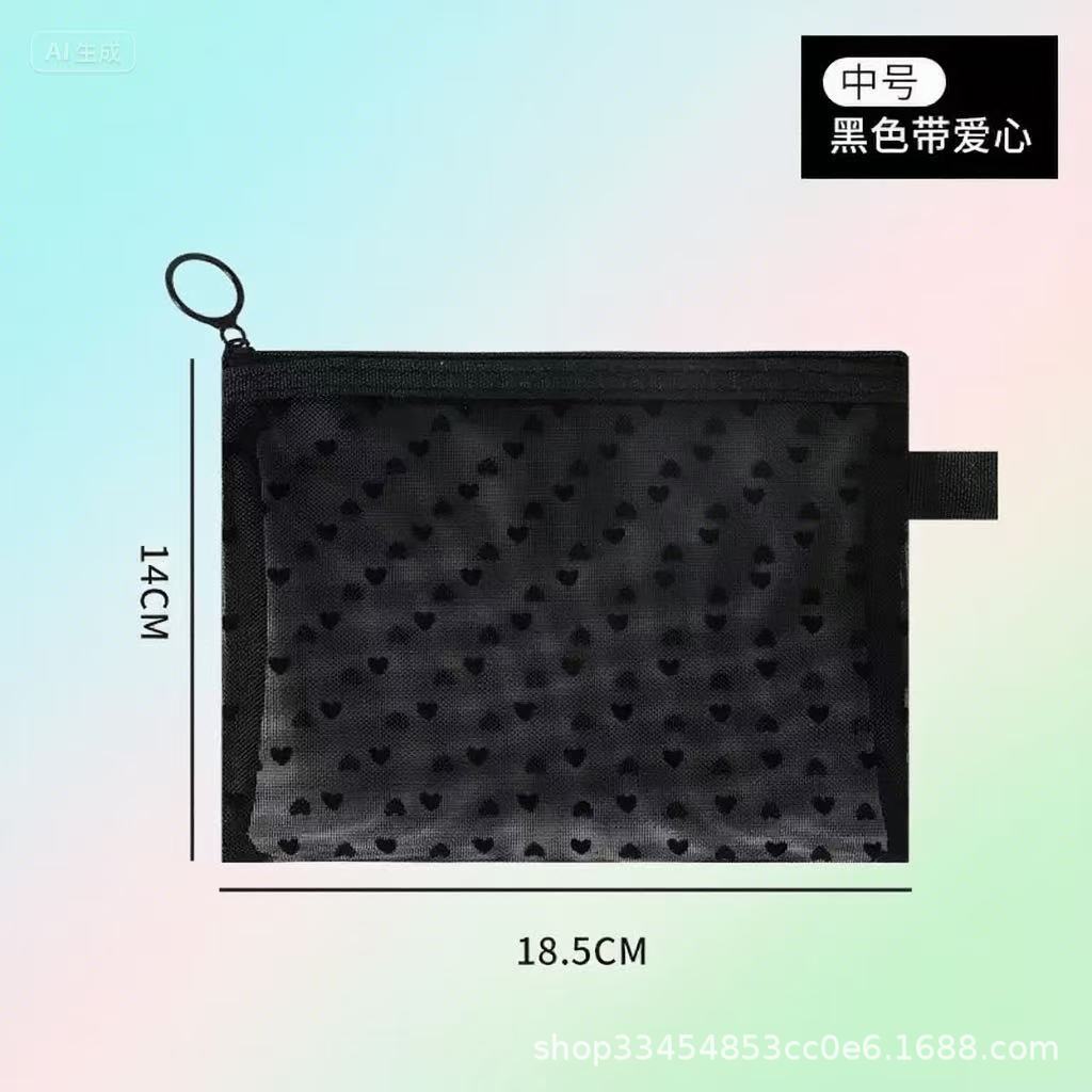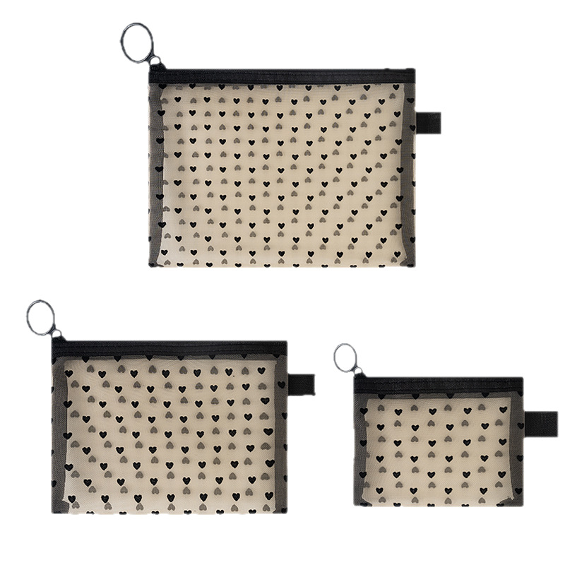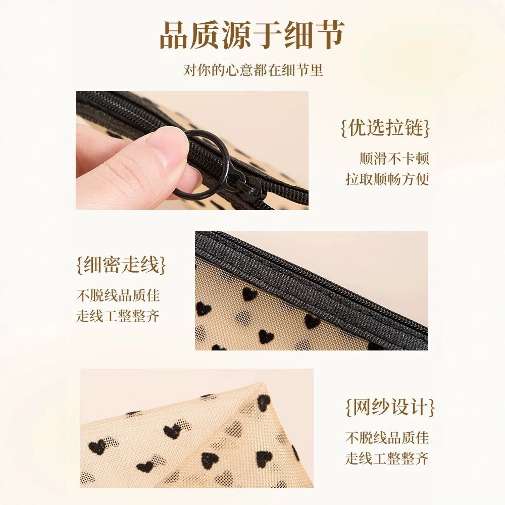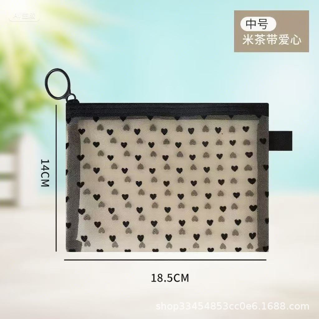Сетчатая косметическая сумка в форме сердца 2024 новая портативная помада макияж для путешествий большая емкость мини-сумка