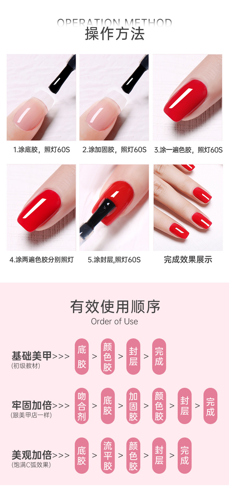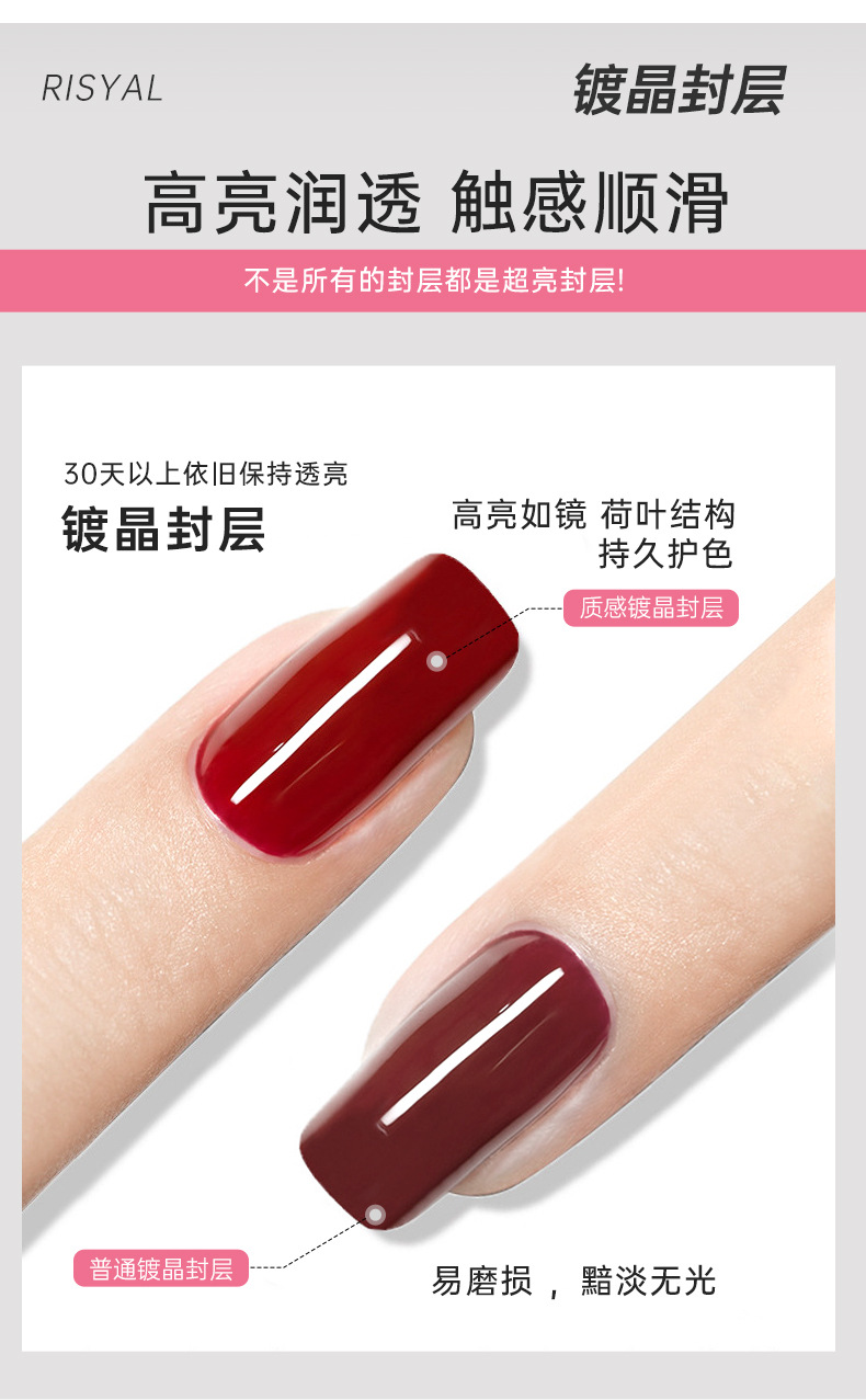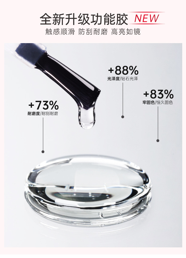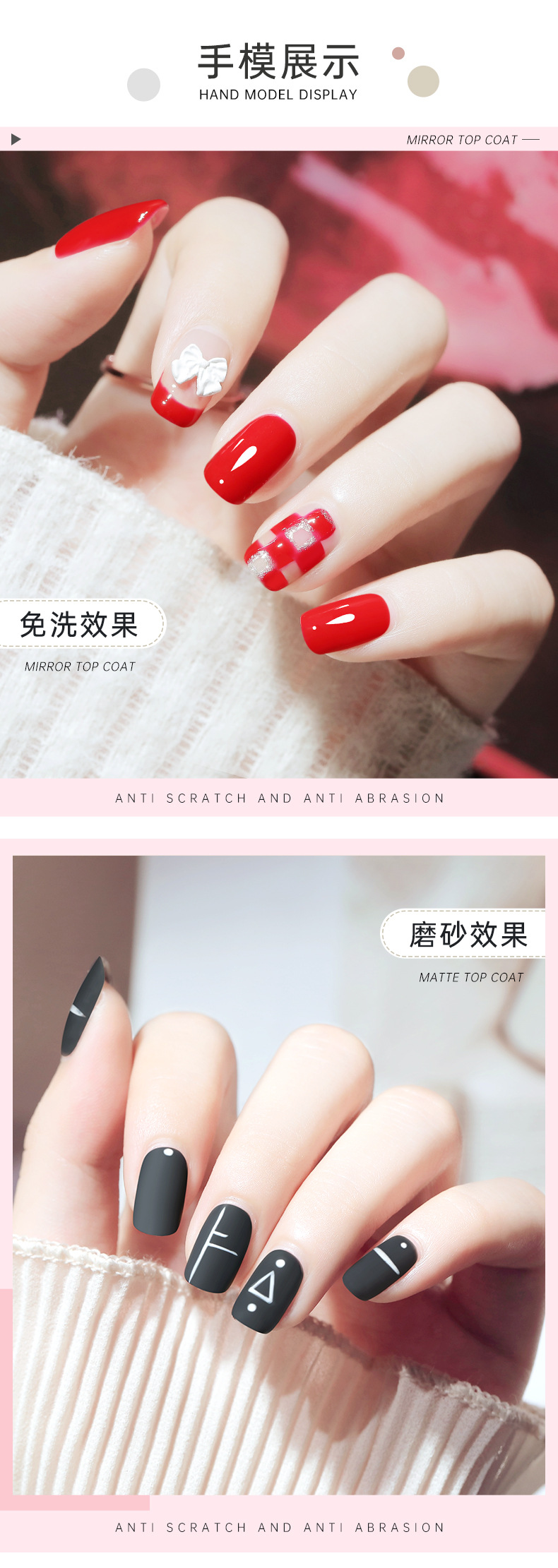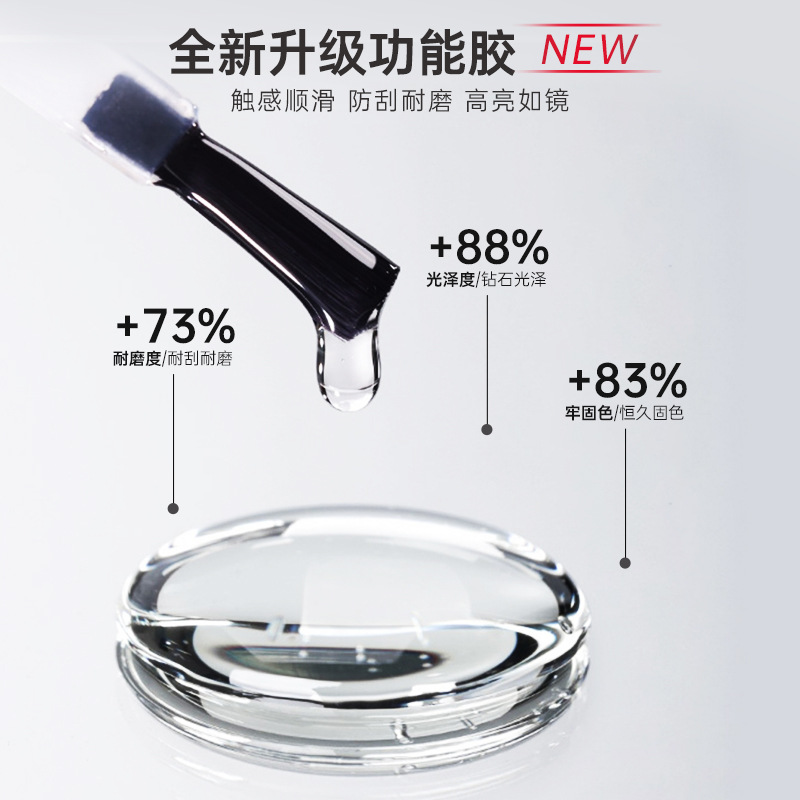 Съемный нижний клей; Хрустальное покрытие; Клей против проливания; Закаленный герметик; Порошкостойкий матовый герметик; Усиленный клей; Клей для ногтей; Герметизирующий слой, не требующий смывания; Матовая печать; балансировочная жидкость; Бархатный матовый герметик; размазывающий клей; жидкость для восстановления ногтей