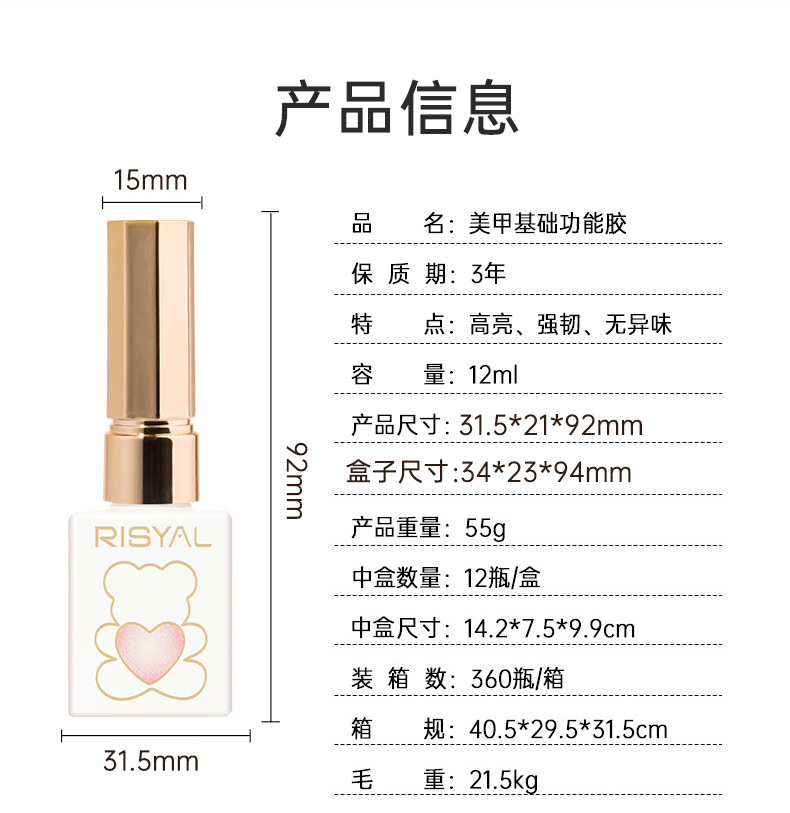 Функциональный клей для ногтей RISYAL Клей из закаленного слоя уплотнения, выравнивающий усиливающий клей, матовый слой уплотнения