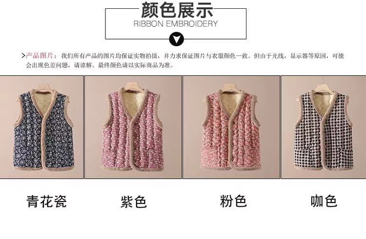 Женский жилет с защитой от кроликов поставляется случайным образом.; Сине-белый фарфоровый цвет (женский жилет с защитой от кроличьего меха P); Фиолетовый цветок (женский жилет из меха с защитой от кролика П); Розовый цветок (женский жилет с защитой от кроличьего меха П); Кофейный плед (женский жилет с анти-кроличьим мехом П); Шафлор (женский жилет с защитой от кроличьего меха П); Оранжевый цветочный (женский жилет с защитой от кроличьего меха П); Синий цветочный (женский жилет с защитой от кроличьего меха П)