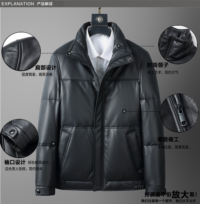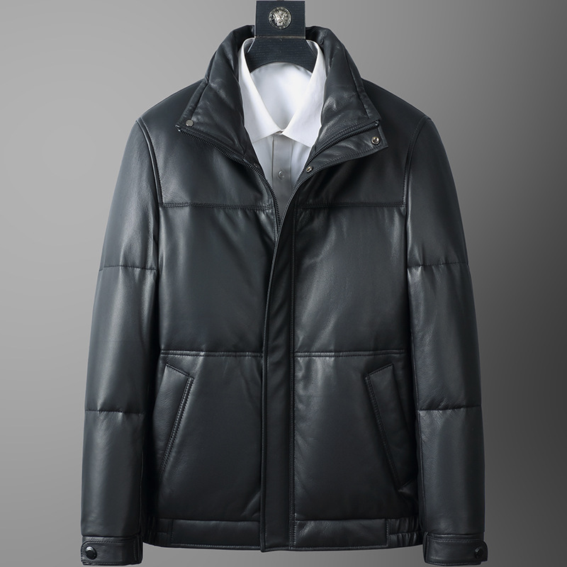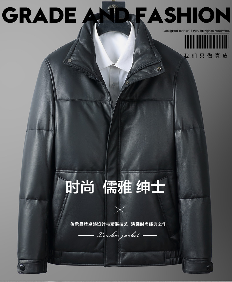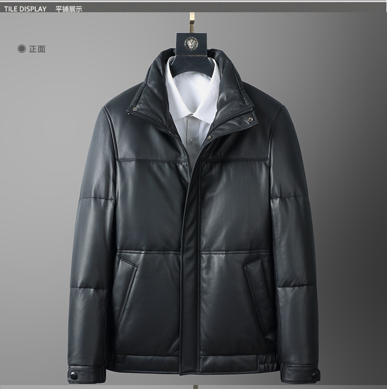 Зимний новый кожаный пуховик Haining мужской белый гусиный бархат модное кожаное пальто среднего возраста овчинное пальто бизнес-куртка