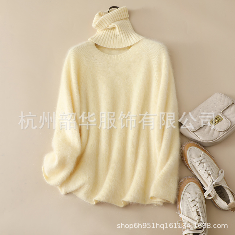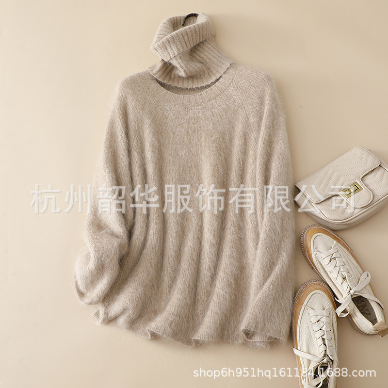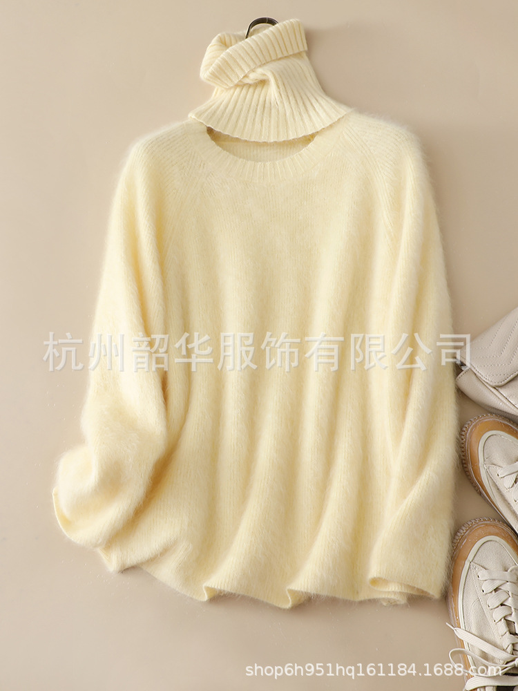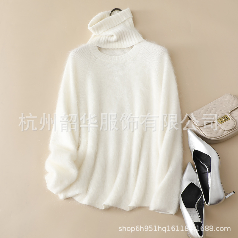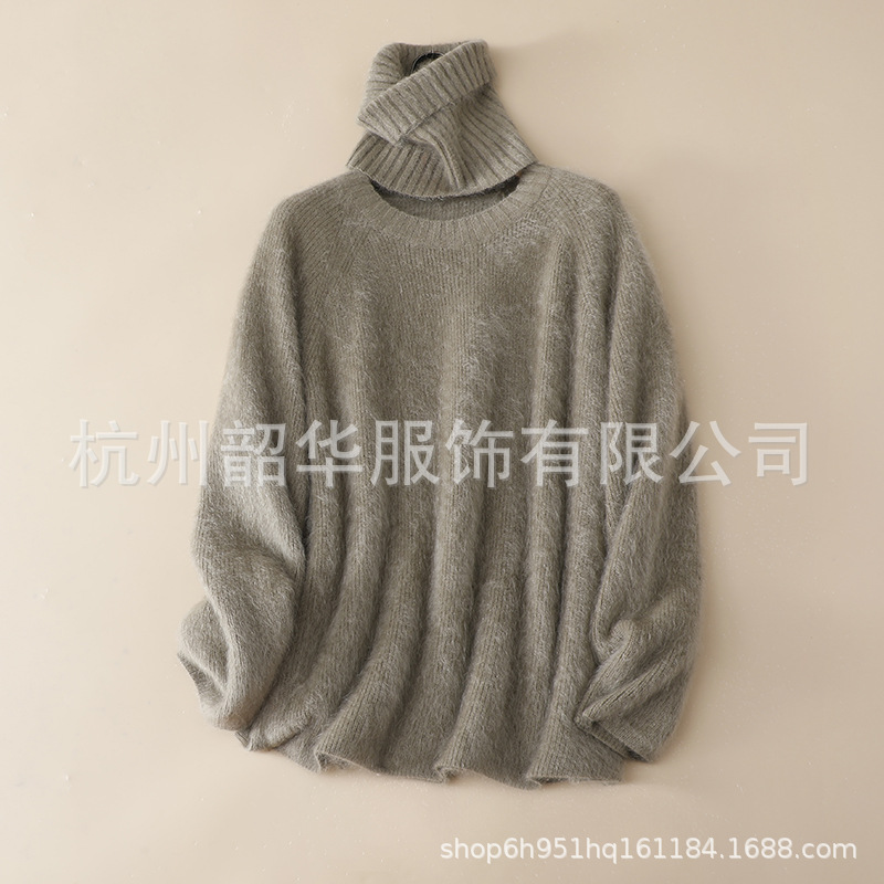 Съемный свитер из кашемира с начесом, новый стиль 2025 года, 26 нитей, двухслойный, с круглым вырезом, свободного кроя, вязаный свитер с высоким воротом, прямой крой.