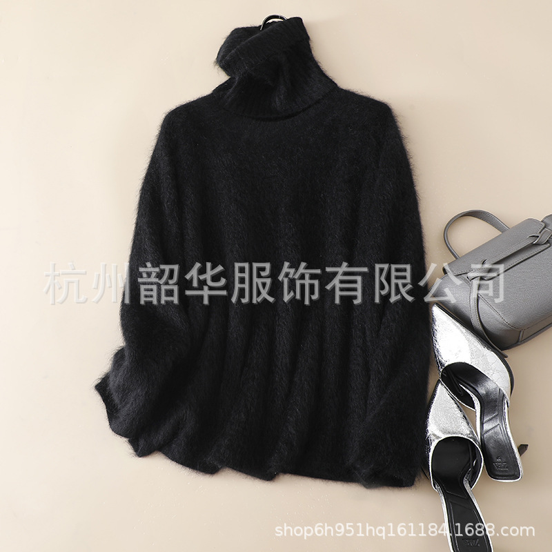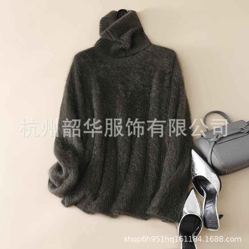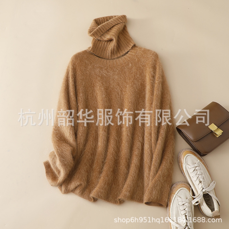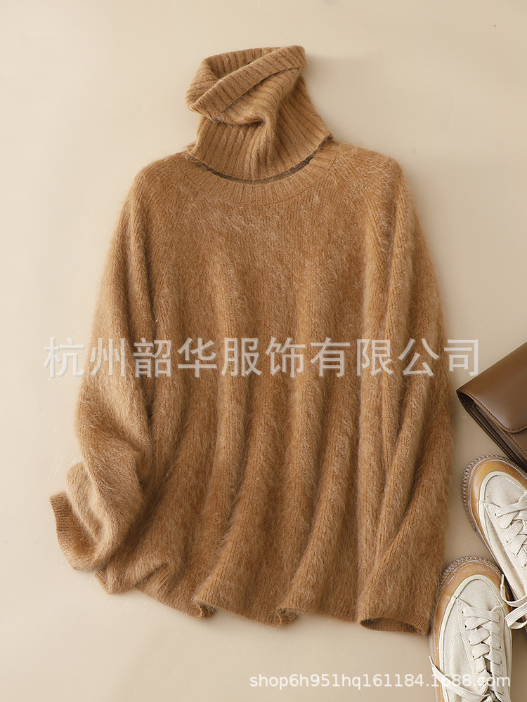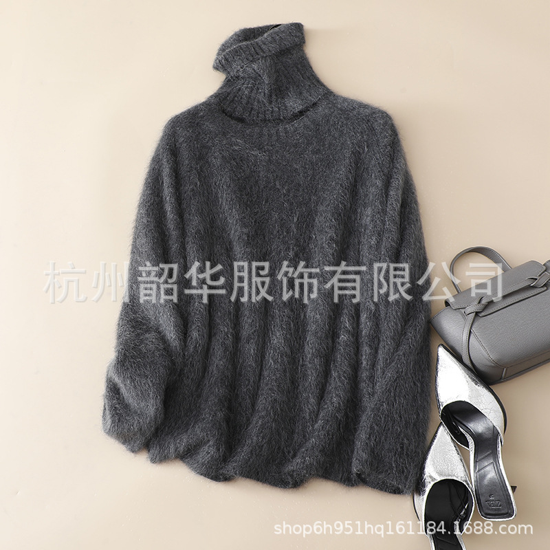 Съемный свитер из кашемира с начесом, новый стиль 2025 года, 26 нитей, двухслойный, с круглым вырезом, свободного кроя, вязаный свитер с высоким воротом, прямой крой.