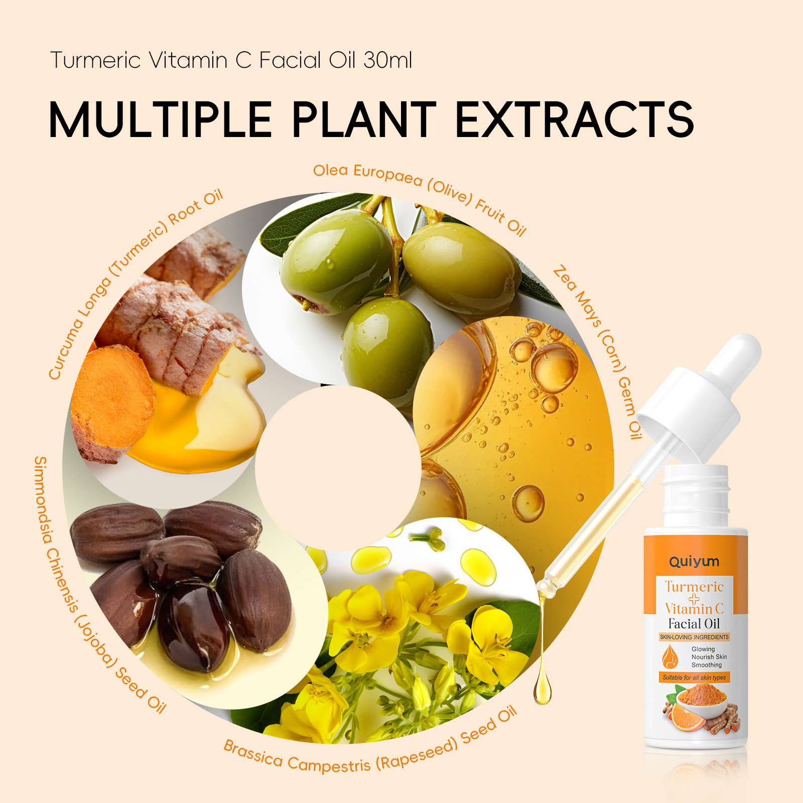 Новинка от Quiyum: трансграничное средство для лица с куркумой и витамином С, эссенция-масло 30 мл, увлажняющее, с сертификатом FDA, для внешней торговли